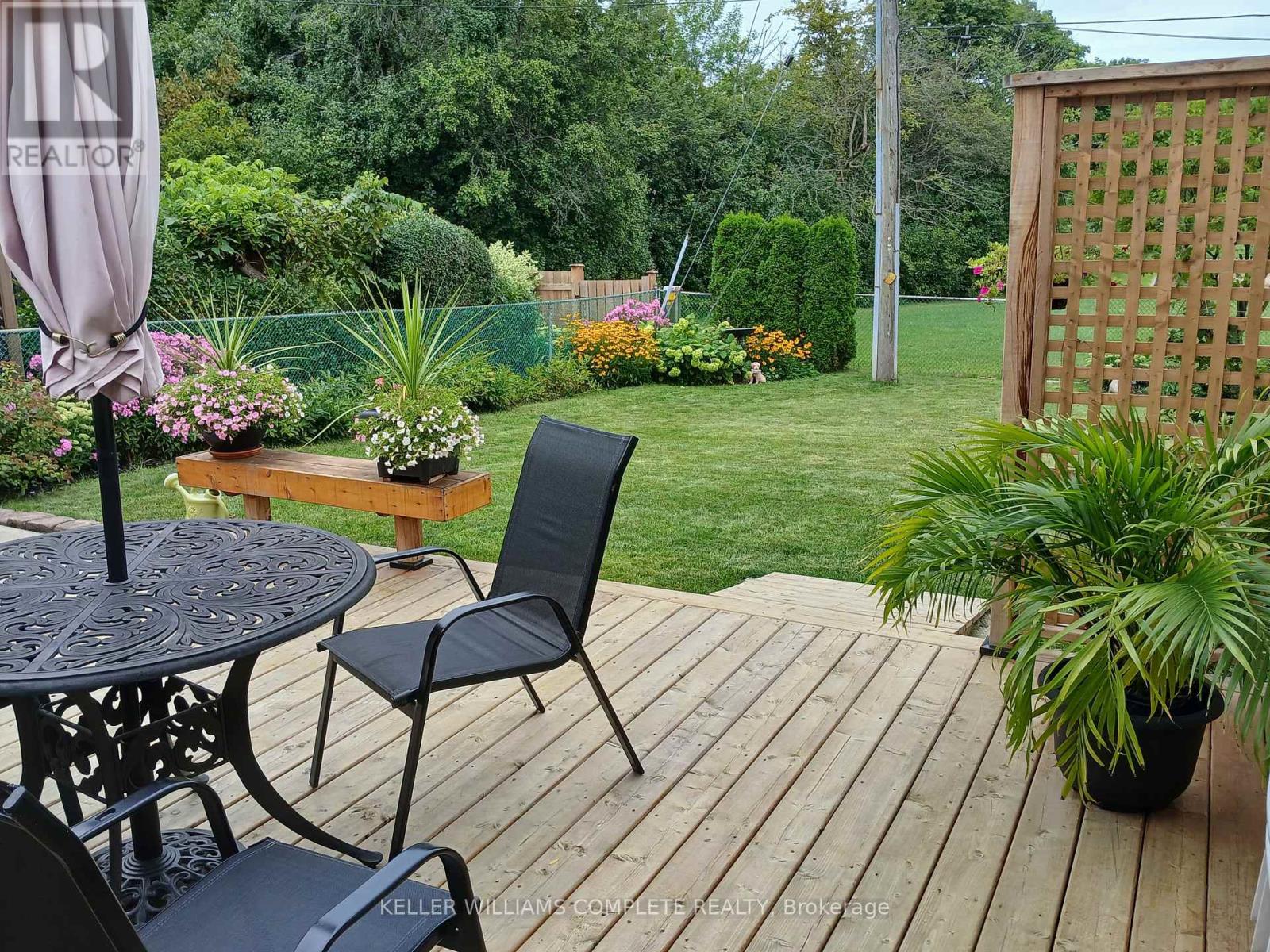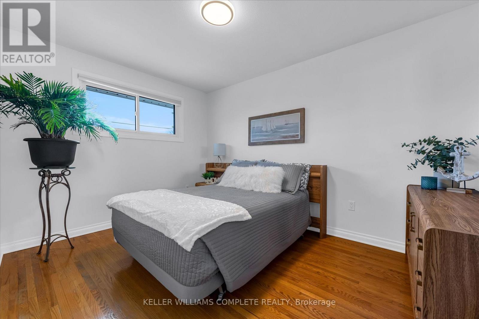 Welcome to 411 Bryant Crescent in the highly desirable Elizabeth Gardens neighbourhood, south of New Street just off Appleby Line. This meticulously maintained raised bungalow showcases exceptional pride of ownership & attention to detail throughout. Backing directly onto Pineland Park, with Pineland Public School just steps behind the home, this location is ideal for families & also wonderful for downsizers looking for one floor living. The property is also within the boundaries for Nelson High School & Assumption Catholic Secondary School, both ranked among the top schools in the area. The main level features a large, sun-filled living room & spacious dining room, perfect for entertaining, along with 3 generously sized bedrooms with gleaming hardwood floors. The beautifully renovated kitchen (approx 2019) is complete with granite countertops, ceramic tile flooring, stainless steel appliances, & a skylight that fills the space with natural light. An updated 4-piece bathroom (approx 2019) completes the upper level. The fully finished lower level offers above-grade windows & includes a large additional bedroom or office, a bright rec room with a cozy gas fireplace, a 3-piece bathroom, dedicated laundry area, & separate storage space - ideal for extended family living, guests, or additional entertaining. Step outside to enjoy the fully fenced backyard featuring an updated deck (approx 2023), storage shed, & direct access to the park - providing both privacy & convenience. Additional highlights include a 1-car garage with durable resin flooring, parking for up to 4 small vehicles in the driveway, shingles replaced in approx 2016, & furnace & A/C updated in approx 2021. Close to Lake Ontario, walking trails, grocery shopping, restaurants, transit & the QEW. A truly move-in-ready home in one of Burlington's most sought-after, family-friendly communities! (id:64974)