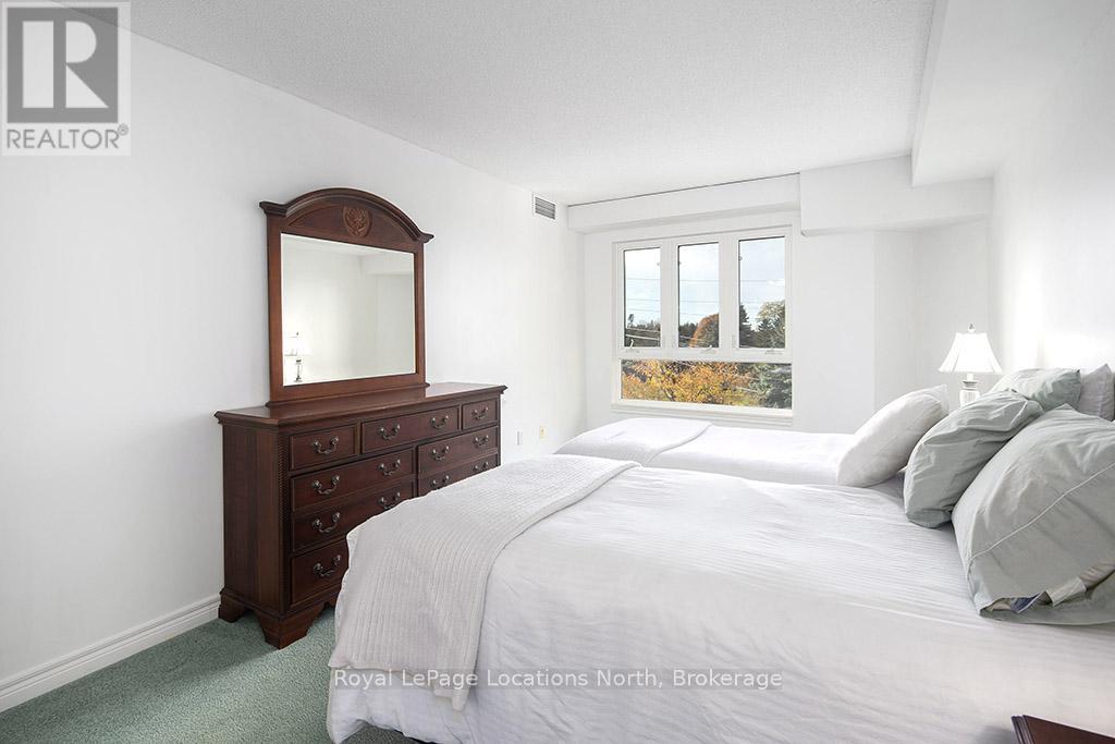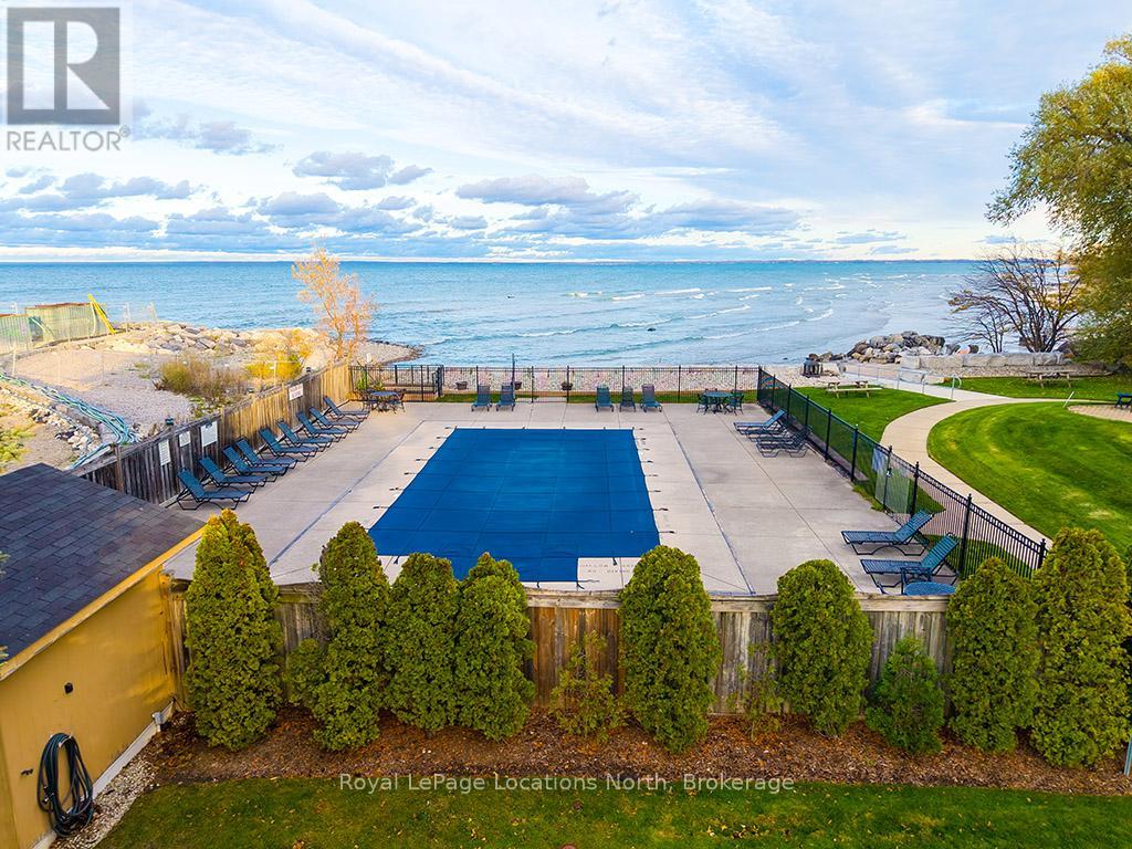 Welcome to Unit 412 at Sunset Cove-a beautifully maintained 2-bedroom, 2-bathroom condominium in one of Collingwood's most sought-after waterfront communities. Perfectly located on Georgian Bay, this upscale residence combines resort-style amenities with low-maintenance, year-round living just minutes from downtown Collingwood. Step inside to find a bright, open-concept layout designed for comfort and ease. Large windows flood the space with natural light and capture views of the Bay and surrounding landscape. The kitchen offers quartz countertops, ample cabinetry, and an extended counter with storage for added functionality and style. The spacious living and dining area flows seamlessly for entertaining or quiet evenings at home relaxing by the fireplace. The primary suite features double closets and a renovated 3-piece ensuite, while the second bedroom and bathroom are perfect for guests, a home office, or hobby space. Additional features include in-suite laundry and neutral décor that's ready for your personal touch. Residents at Sunset Cove enjoy an impressive list of amenities; Concierge, underground parking, recreation lounge with pool table, library, kitchen prep area, and social space. Outdoor pool & private sandy beach access. Bike storage, community BBQ area, and beautifully maintained grounds. Ideally located just steps from Sunset Point Park, the Georgian Trail, and a short stroll to Collingwood's vibrant downtown shops, restaurants, and waterfront parks, Sunset Cove offers the perfect balance of luxury, lifestyle, and location. Whether you're seeking a full-time home, weekend retreat, or investment property, Unit 412 delivers the best of Collingwood waterfront living. Discover the effortless elegance of life at Sunset Cove-where Georgian Bay meets everyday comfort. (id:64974)