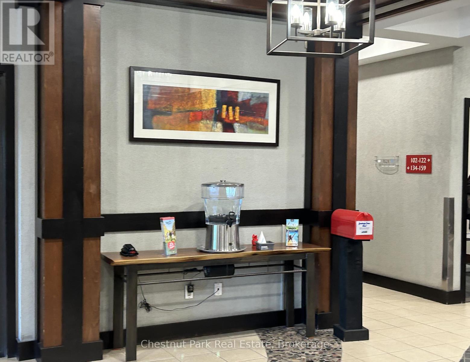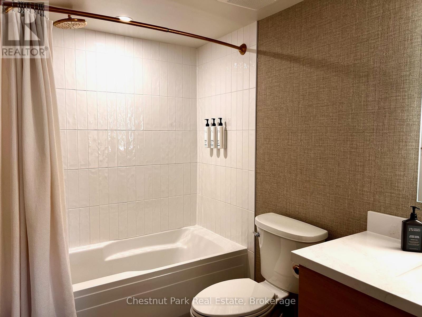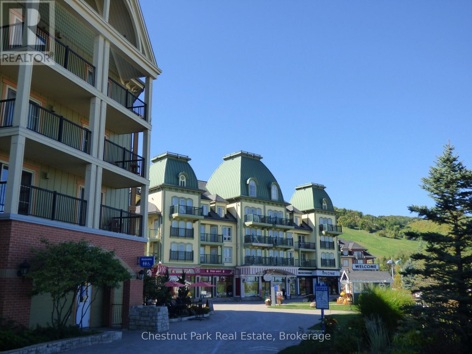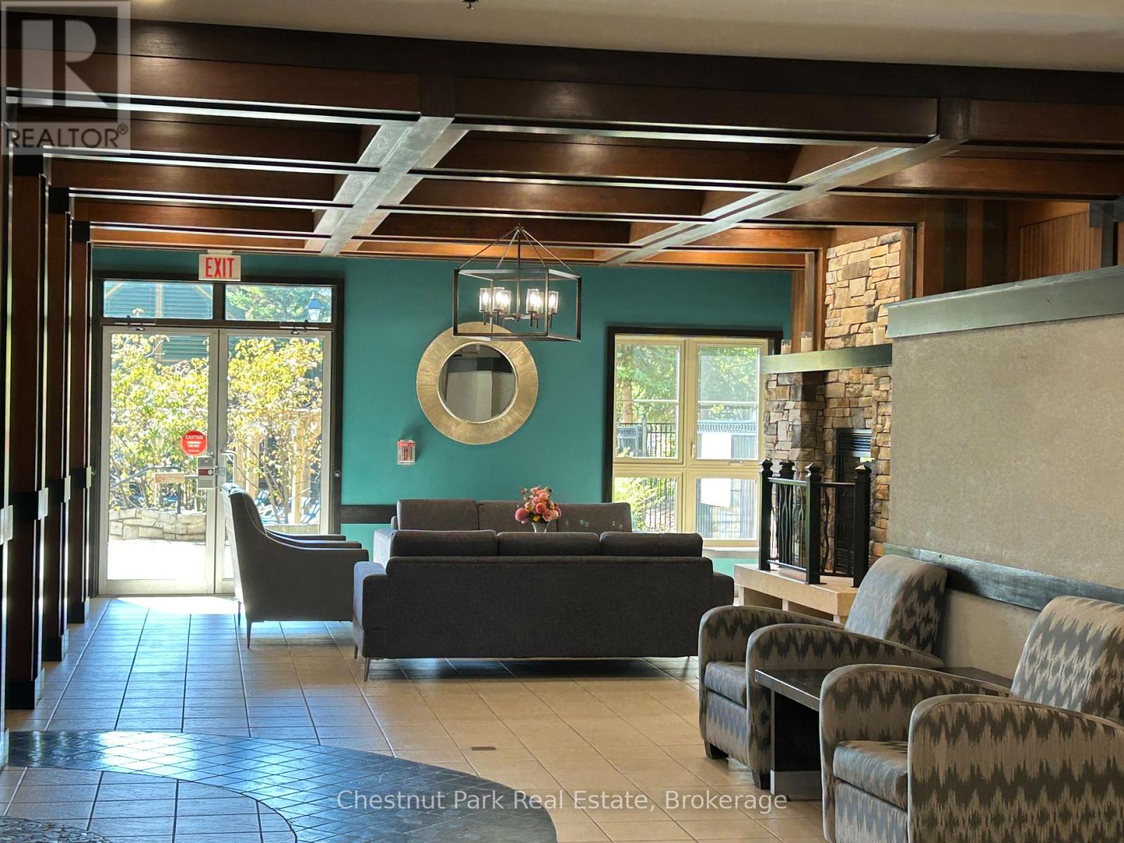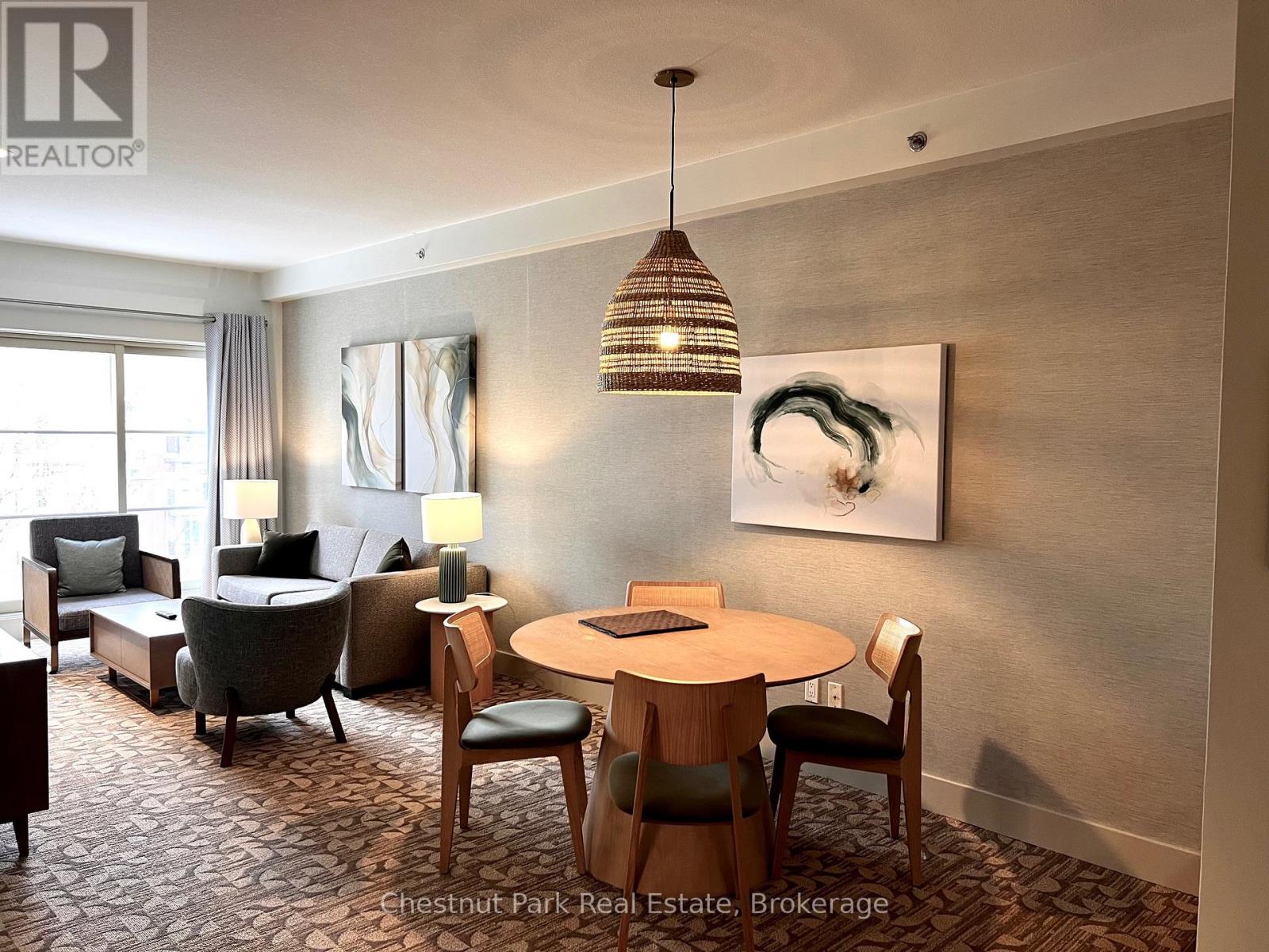 Top floor, desirable one bedroom, fully refurbished this past Fall, located in the popular boutique inspired Mosaic at Blue. Unit 412 is a rare find being one of only three of this specific type that has a full width balcony with two sets of sliding doors, one off the living room and the second from the bedroom. Step out to the fabulous private space that overlooks the courtyard. Pleasing views of the colourful year-round heated outdoor swimming pool, with adjoining lap pool plus a free style hot tub awaits you. As well, beautiful trees provide some privacy, and you have views across the Millpond and to the ski hills to the south. Pull on your Mosaic robe first thing in the morning and step outside your bedroom to check out the day or perhaps a nightcap while you admire the lit-up amenities. Additional amenities include an Owners Lounge off the Lobby, a well-equipped exercise room, and a sauna. Your turn-key resort home is complete with a beautifully remodeled bathroom, a kitchenette with 2 stove top burners, bar fridge and dishwasher, dining area, and gas fireplace in the cozy living room. This unit is currently in the fully managed Rental Program with Blue Mountain. Owners can personally use their getaway homes for up to 10 days per month if they wish or take advantage of revenue potential when not occupying it themselves. Mosaic's location next to the Conference Centre makes it a desirable choice for guests to stay when attending conferences. Extra benefits of Mosaic - Front desk is fully staffed, entrance to Sunset Grill off the elevator lobby, heated separate underground parking, bicycle storage and owner storage locker off the lobby. HST may be applicable. 2% BMVA Entry fee payable on closing. BMVA annual fees are $1.08 per sq. ft. per year. This four- season resort property is surrounded with exciting year round entertainment, fantastic dining and shopping options, and even a beautiful sandy private beach for the summer with a shuttlebus at your service. (id:64974)
