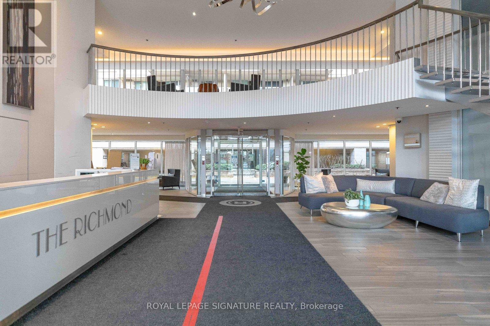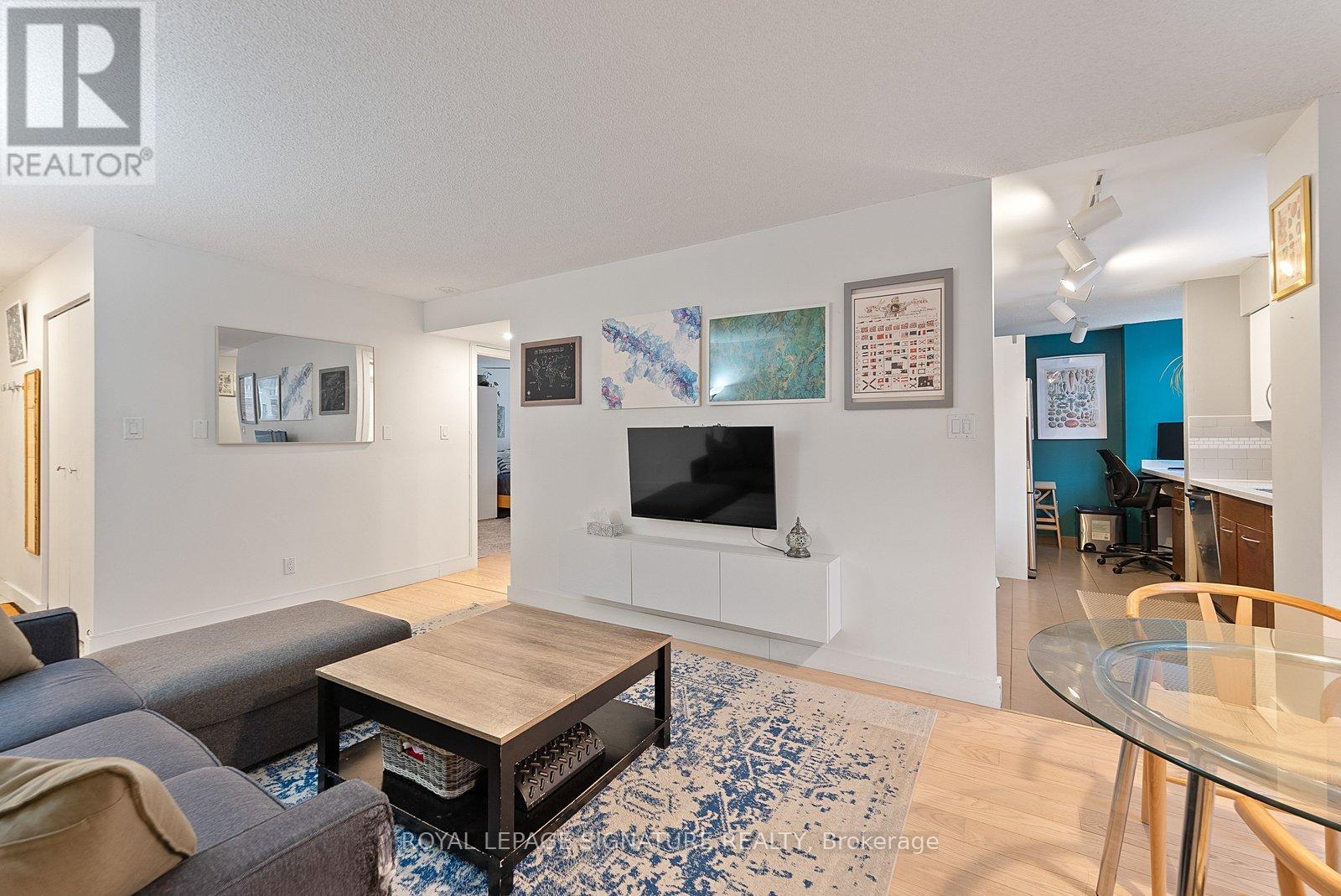 Welcome to The Richmond Condos! Suite 412 offers a bright and thoughtful floor plan including 2 beds and 2 baths, a corner suite offering 855 sq. ft. of living space. The updated kitchen is thoughtfully extended with an additional den area, providing extra prep, storage, or flexible workspace. Open-concept living and dining areas are filled with natural light, while both bedrooms are well proportioned. Modern bathrooms and hardwood flooring complete the interior. Building includes, readily available parking spot rental, gym, basketball court, 24hr concierge, roof top terrace and more! (id:64974)