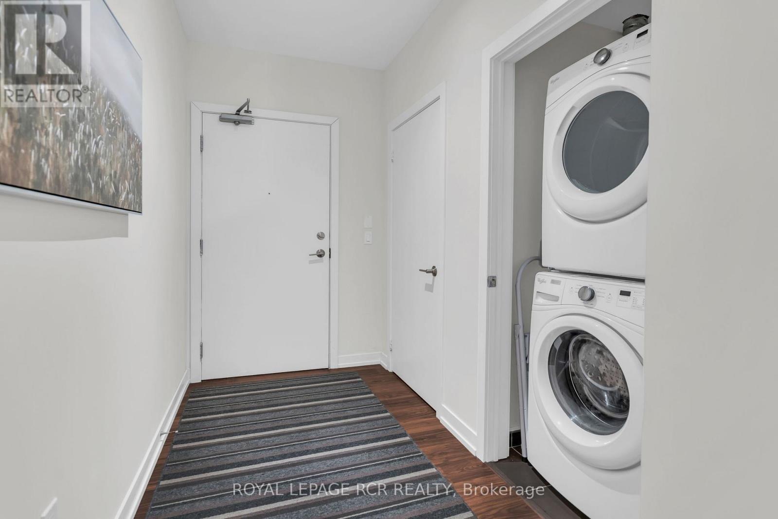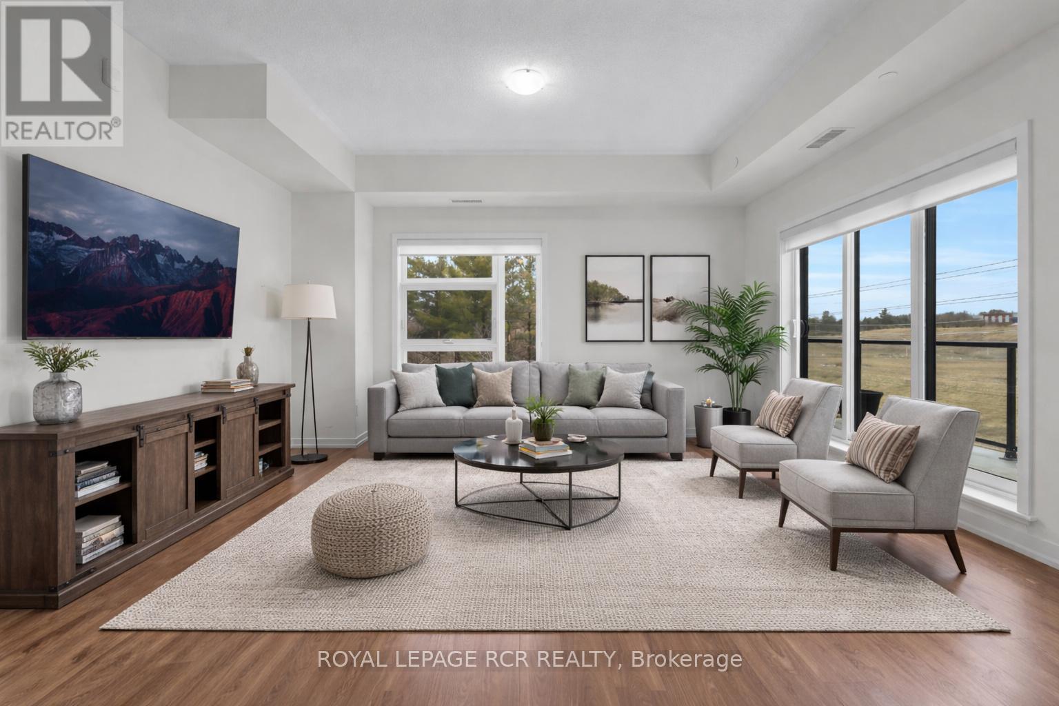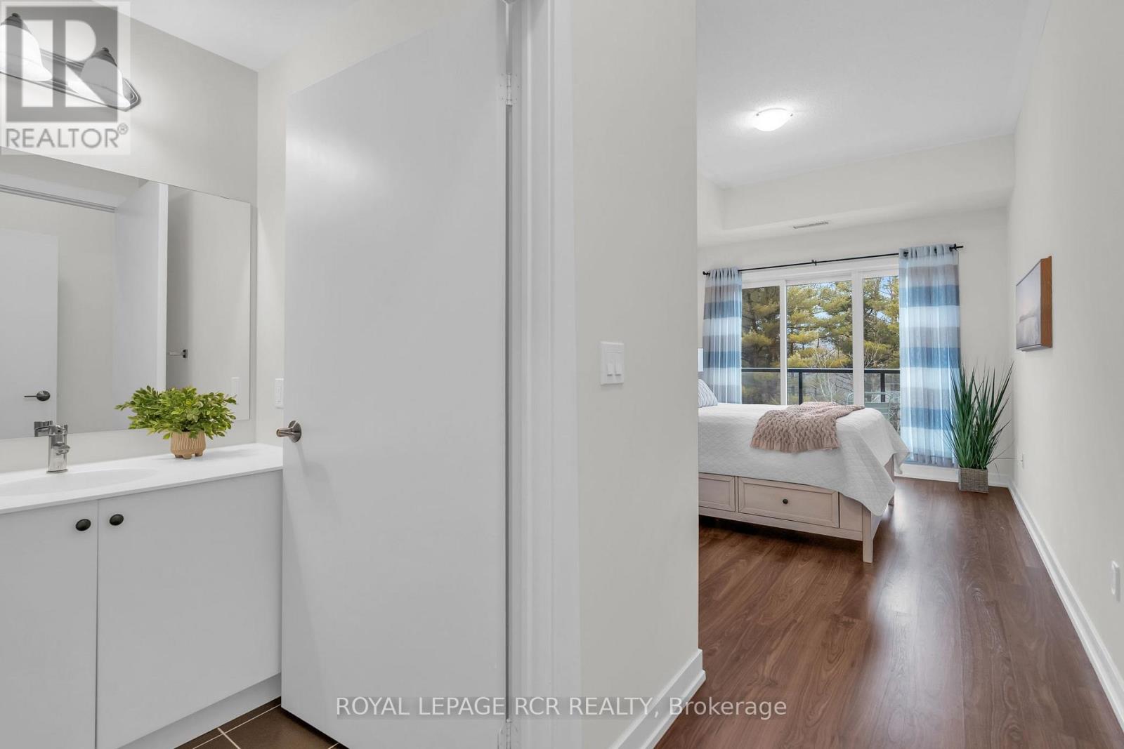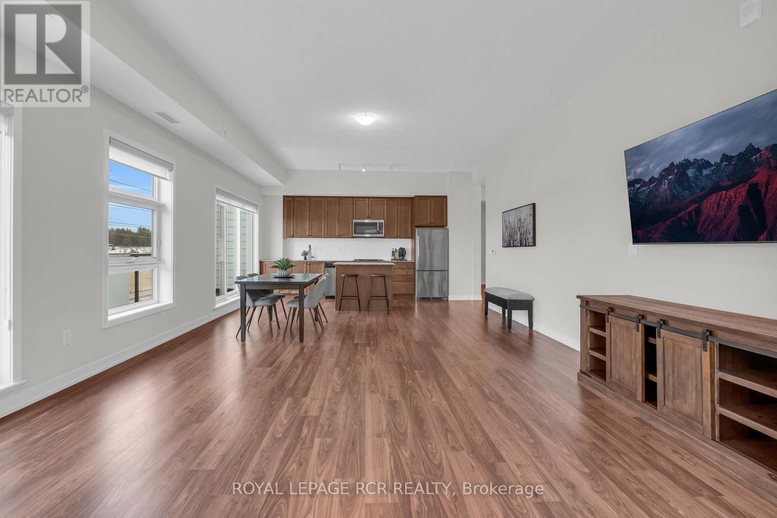 Penthouse living at its finest! This bright and spacious 2-bedroom, 2 bath corner unit condo offers an expansive open-concept layout with a generously combined living, dining, and kitchen area that is perfect for both everyday living and entertaining. Enjoy a completely carpet free space, and a functional breakfast bar for casual dining. Step outside to two private balconies - one expansive 34' space ideal for hosting or relaxing. And, start your mornings on your private ensuite balcony overlooking forested green space. It's the perfect spot for savouring your morning coffee or an an end-of-day beverage. With ensuite laundry, locker for extra storage, and 'TWO' owned parking spots, this home blends comfort, convenience, and lifestyle seamlessly. First class amenities include concierge, a fully equipped gym, pet spa, yoga studio, bike storage room, party room, lounge area, billiard room, and outdoor terrace with BBQs. Easy access to the 404, Go/Bus transit, shopping and dining. Pets with restrictions are allowed, so your furry family members can enjoy the space as well. This is one of the largest, and most spacious units in the building. Enjoy the many windows and open floor plan, or add a wall to create a separate living area if that's what suits your family best. (id:64974)