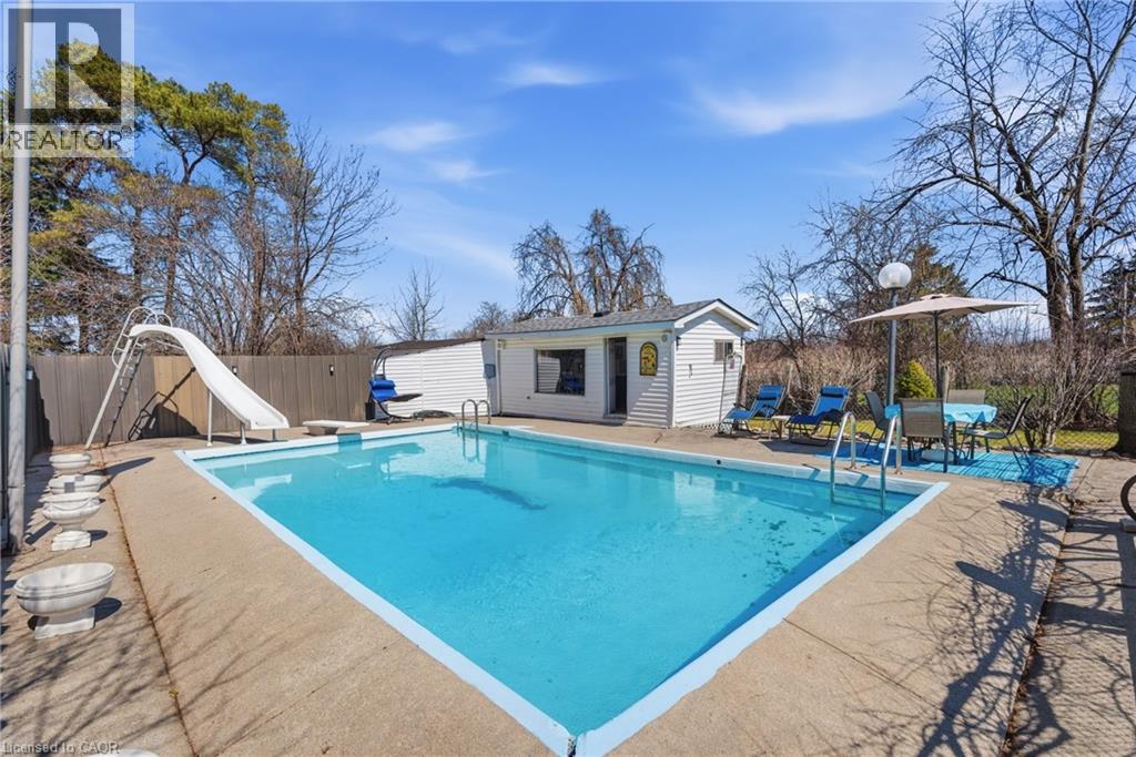 Tucked away in a peaceful rural setting, this well-maintained 3-bedroom, 1-bathroom home with garage sits on an impressive 100 x 300 ft lot, offering space, privacy, and endless potential. Proudly owned for over 30 years, the property has been carefully maintained throughout. Inside features original hardwood floors, a bright and functional layout, central A/C, central vacuum, and a cozy wood-burning fireplace in the basement. Other notable updates include a new roof on both the home and pool house (Sept 2022), a new furnace (Oct 2023), and newer windows throughout. The spacious primary bedroom offers a Juliet balcony overlooking the expansive backyard. Outside, enjoy a paved driveway with basketball net, a large fenced in-ground pool, perennial gardens, children’s play area, dog kennel, and a bonfire area at the rear. Drive-through access to the back of the property provides excellent storage flexibility. Conveniently located close to schools, shopping, and amenities, this is a rare opportunity to enjoy peaceful rural living with room to grow (id:64974)