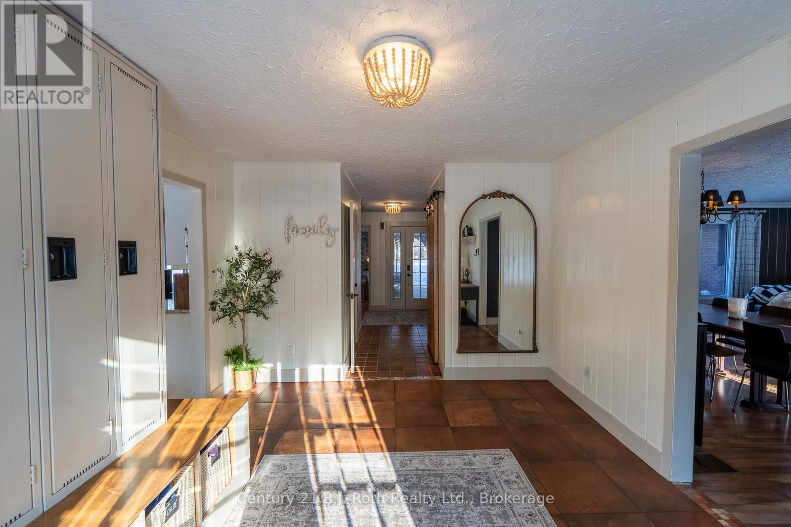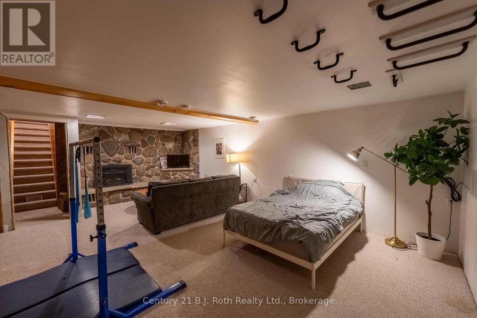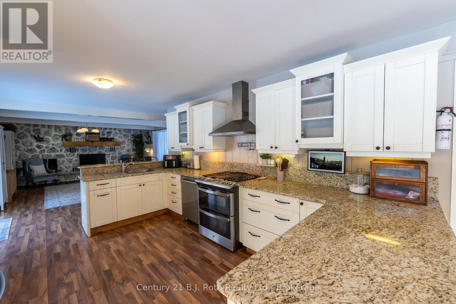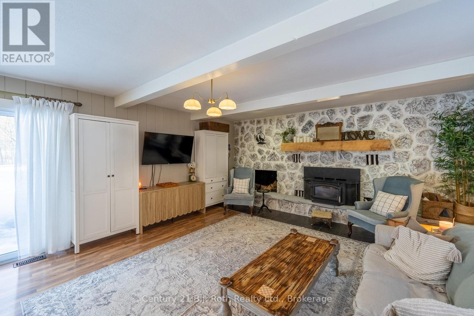 Tucked well back from the road this classic 1970's brick ranch offers nearly 2 acres of privacy in the heart of the highly sought-after Marchmont/Bass Lake community. With over 2,700 sq. ft. of thoughtfully designed main floor living, this home was built for families who value space, connection, & comfort. From the moment you arrive, the covered arched entry & private unistone courtyard set the tone. Step inside to bright, welcoming foyers at both the front & rear of the home - practical for busy family life & ideal for entertaining. A convenient 2-pc powder rm & walk-in pantry/storage closet add everyday functionality. At the centre of the home, the open-concept kitchen, dining, & family rooms create a natural gathering place. The kitchen offers generous cabinetry, granite counters, stainless appliances, & ample prep space, all flowing seamlessly into the dining area & family room. The woodstove anchors the space, adding warmth & charm, while large windows draw in natural light. When it's time to unwind, the separate living room offers a quieter retreat, complete with oversized windows front & back & a cozy gas fireplace. The layout thoughtfully separates the living spaces from the private bedroom wing featuring 4 spacious bedrooms, incl. a Primary suite tucked at the rear of the home w/a walk-through closet, private 4-pc ensuite & walkout to unistone patio. A fully renovated 5-pc bathrm w/dble vanity, & main floor laundry add convenience where families need it most. Full basement under 1/2 the home w/Rec.rm. w/Gas FP, Storage/Utility rm. w/direct walk up access to the side yard. Backing onto township-owned open space, the yard feels endless; perfect for kids & pets! Detached 35'5" x 27' oversized double garage (with newly built roof) provides exceptional storage and workspace flexibility. 2 Gas Furnaces & central air units recently replaced. Minutes to amenities, in an excellent school district, & within one of Severn's most desirable areas. (id:64974)