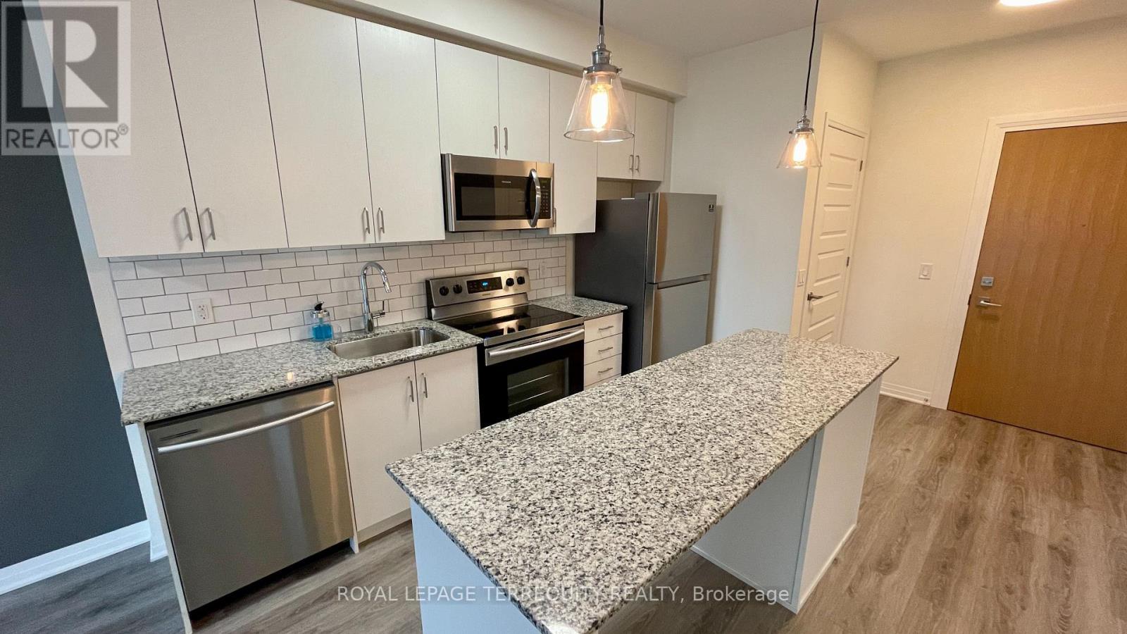 Available April 1st. 1 Bedroom + Large Den Suite, flooded With Natural Light & Upgrades, 677 sq ft (largest in building per builder) at Bower Condos. Laminate Flooring Throughout. Open Concept Living Area W/Granite Kitchen Counter & Stainless steel Appliances. Living Room Walkout To Balcony With Open Sothh Facing View. Generous Den Perfect Space For totally separated Home Office or Baby Room. Walking Distance To All Commercial Areas, Restaurants & Park, Close To Hwys & 14 Mins to Oakville GO Station. (id:64974)
