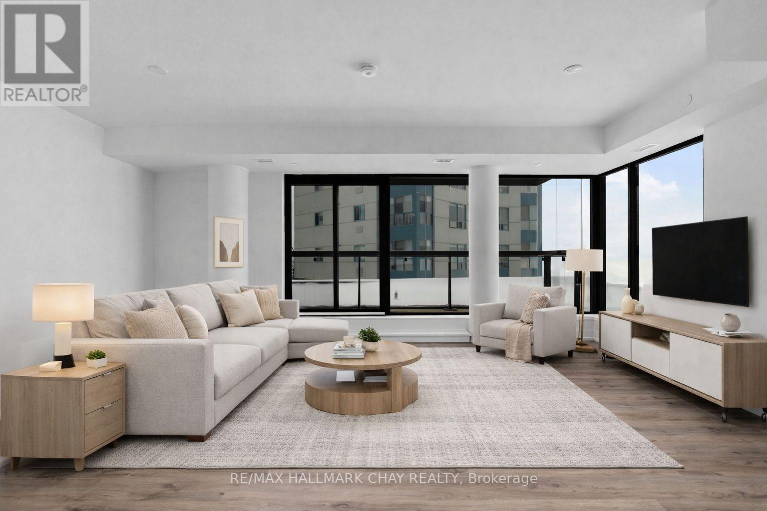 This is a premiere leasing opportunity at the Lakhouse condo community! Luxury lakefront living awaits at 185 Dunlop Street East, one of Barrie's premier waterfront addresses. This exceptional 3-bed, 2-bath residence offers 1,595 sq. ft. of Nordic-inspired interior living space, complemented by a 329 sq. ft. terrace and 121 sq. ft. enclosed balcony with Lumon window system - showcasing breathtaking views of Kempenfelt Bay. Designed for modern living, this suite features an open-concept layout, floor-to-ceiling windows, high-end finishes, and seamless indoor-outdoor flow. Primary with wall-to-wall closets, privacy of 4pc ensuite. Two good sized bedrooms for guests, home office, etc and a 3pc guest bath. The expansive terrace and enclosed balcony provide rare, versatile outdoor space in a luxury condo setting. Residents of Lakhouse enjoy resort-style amenities with concierge service. Yours to enjoy - state-of-the-art fitness centre, spa, steam rooms, change rooms - meeting space and social lounge with Chef's kitchen, as well as canoe and kayak storage, pet wash station. Heated indoor parking and exclusive use of locker, included. Tenant pays hydro, cable, wifi. Steps to Barrie's waterfront boardwalk and trails and the vibrant downtown with casual and fine dining, boutique shopping, services, entertainment and recreation. Experience unmatched luxury, convenience, and lakeside tranquility at the Lakhouse in Barrie (and ... no snow shovelling!) (id:64974)