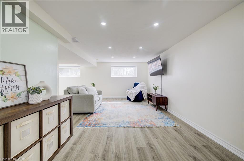 Welcome home to 414 Woods Lane, an elegant and spacious raised bungalow located in a family-friendly neighbourhood, just a short walk to Parkway Public School. With nearly 1900 sqft of finished living space, including a FULLY FINISHED BASEMENT with a SEPARATE ENTRANCE from the garage, this move-in ready home offers excellent flexibility for families or multi-generational living. The main floor includes a bright living room and a beautifully updated eat-in kitchen with quartz countertops, RO system and ceramic backsplash, plus walkout to the back deck (2019) with a gas BBQ line. This level also features 3 bedrooms and a modern 4 piece bath. Neutral decor, large windows and carpet-free living create a bright, welcoming feel throughout the home. The finished basement adds additional living space, including a comfortable family room with a gas fireplace, a 2 piece bath, a potential 4th bedroom or office, and plenty of storage. This home sits on a private lot with NO REAR NEIGHBOURS. Outside you’ll also find a single-car garage with an updated garage door (2018) and driveway, plus a rough-in and slab ready for a hot tub. Notable updates include roof (2018), furnace, air conditioner and water softener (2017), main flooring (2021), basement flooring (2019), windows (2019/2021), pot lighting, two sun tunnels/skylights, along with neutral decor and paint throughout. Located close to parks, walking trails, restaurants, shopping, schools, and public transit. Commuters will appreciate the convenient access to Highway 401, just a 5 min drive away! (id:64974)