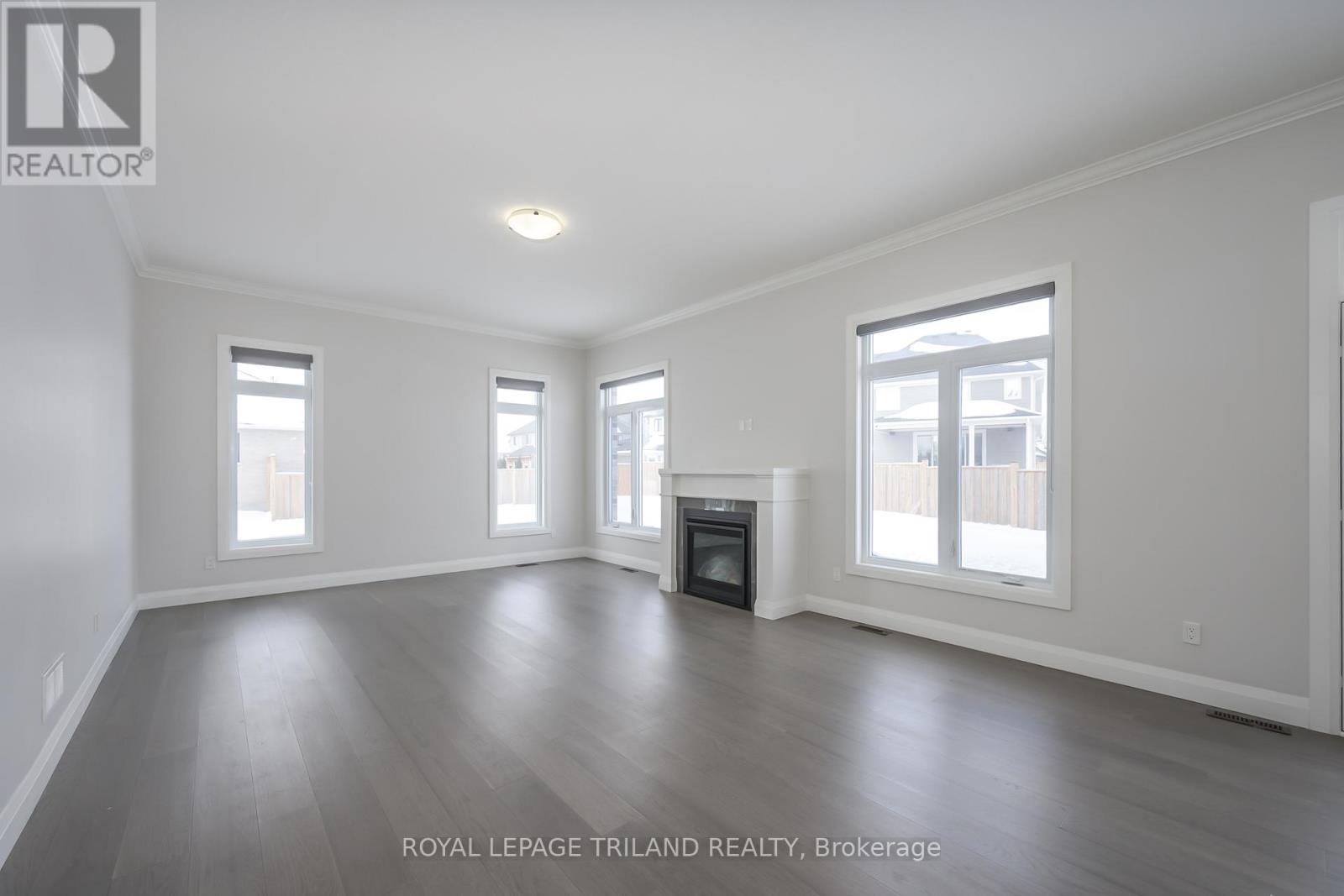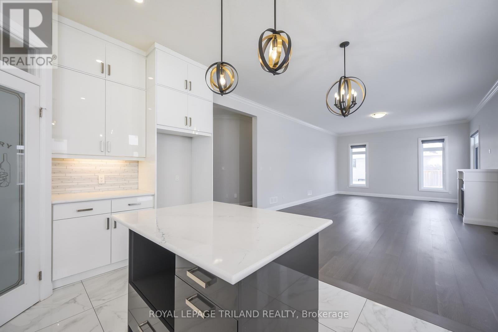 FABULOUS 2 STRY -4 Bedroom, 3.5 Baths, with 3 CAR GARAGE on a premium Lot beside Parkland Located in DESIRABLE LAMBETH! Upgraded Ceiling Heights- Eat -In Kitchen Features a Corner Pantry with centre Island Overlooking Spacious Family Room with Cozy Fireplace- Main floor Laundry - Upper Level Features 3 FULL BATHS ( 2 ENSUITES)- 4 Spacious Bedrooms-Primary Bedroom includes a 5 PC Ensuite and walk-in Closet. Bedroom # 4 Features a 4PC Ensuite and Walk-in Closet. Close to Walking Trail- Easy access to the 401 & 402! Located close to Several Popular Amenities! Coveted South Location- IMMEDIATE POSSESSION Available! (id:64974)