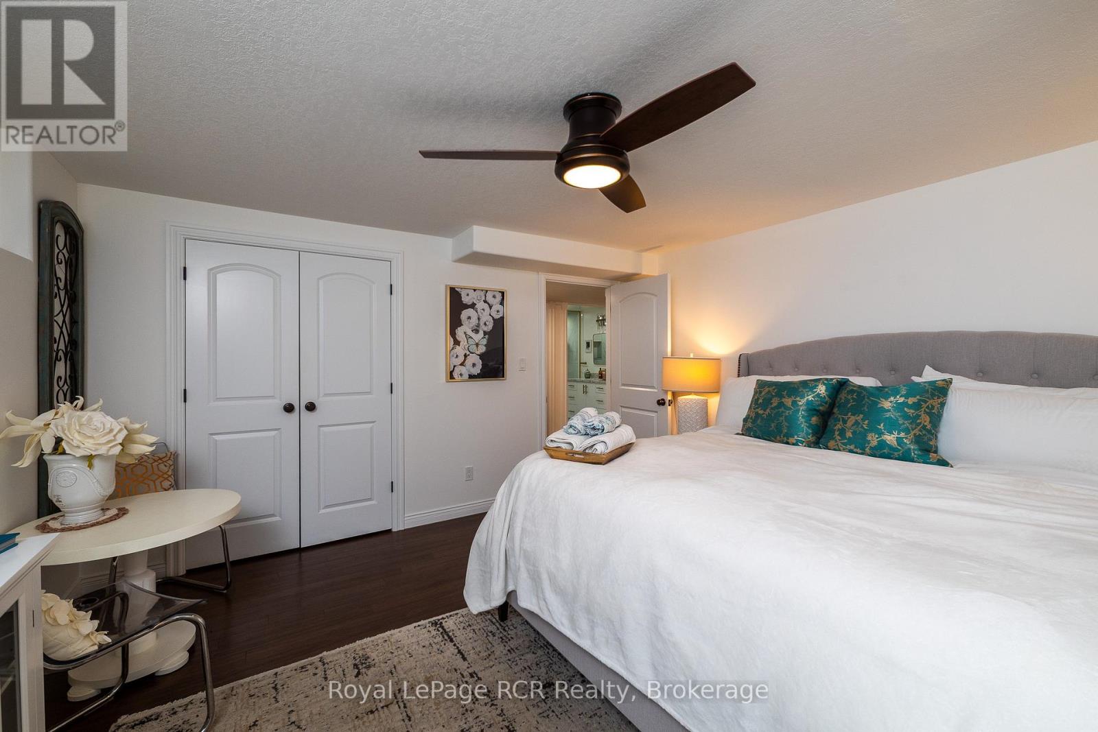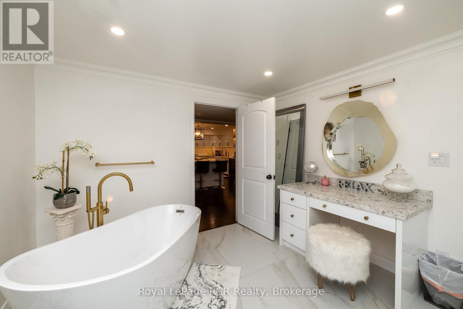 Luxury meets country in this one of a kind brick bungalow situated on just under 2 acres. With over 4000 sq ft of living space, this home has a lot to offer! The open concept main floor includes the living room with a propane fireplace, built in shelving and a double door walk out to the covered porch. There is an ample sized kitchen and dining area with nice finishes, plenty of cupboard space and a walk out to the covered deck. The master bedroom has nice views from the windows, an electric fireplace for those cozy nights, a walk out to the covered porch. Spacious 5pc ensuite and large walk in closet to finish it off. One more bedroom, a den, 4pc bathroom, powder room and mudroom with laundry complete the main floor. The lower level has potential to be converted into an in-law suite and features a recently upgraded chef's kitchen with top of the line built-in Thermador appliances, custom cabinetry and a spacious island. There are two full bathrooms, one 3pc including a soaker tub and matching vanity and make up station, and the other 3pc with a large custom made walk in shower and vanity. The two bedrooms feature custom closet organizers and cabinetry. Along with a pantry and an office, the lower level also features a living room with a propane fireplace and walk out to the covered patio complete with a hot tub! The home has a 2 car attached garage on the main level and a bonus underground garage space utilized as a gym. The lot is nicely landscaped and with an efficient geothermal heating and cooling system, there's nothing left to do but move in! (id:64974)