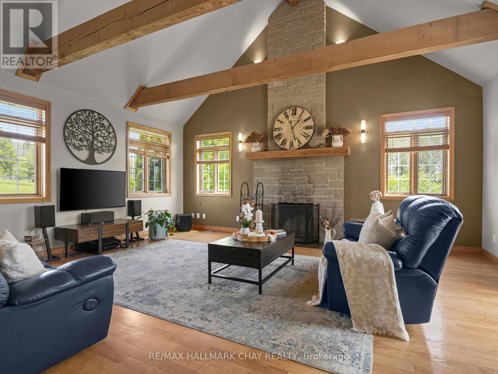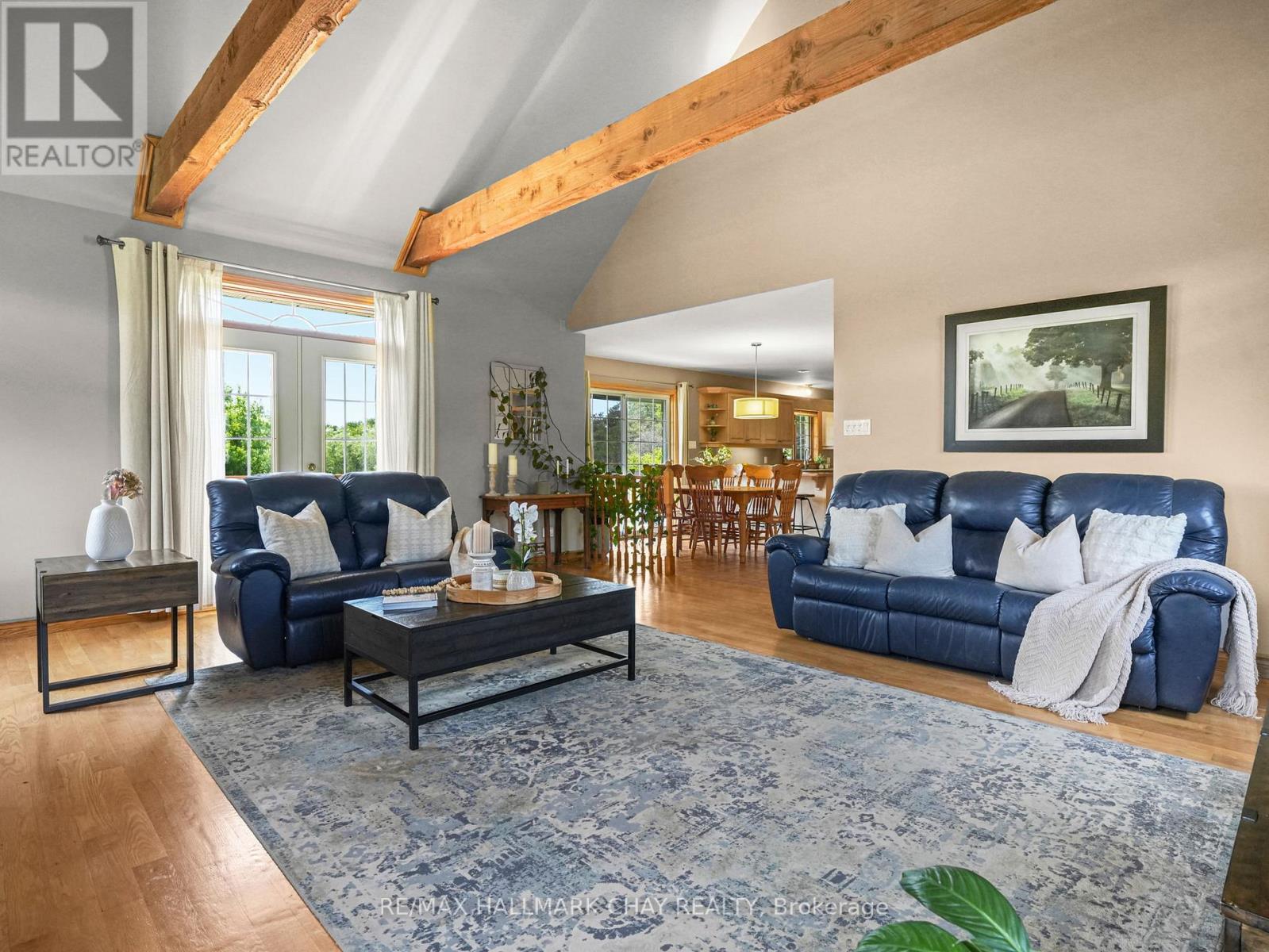 Welcome to this beautiful family home, sitting on 40.5 picturesque acres with the Nottawasaga River flowing through the property. A true outdoor paradise, enjoy year-round entertainment - from long walks on your own private trails, cozy fires, swimming, kayaking or tubing down the river, to winter skating and snowmobiling. Start your mornings with coffee on the covered front porch and end your day watching sunsets from the peaceful back deck. Thoughtfully designed for multigenerational living, the home offers a spacious layout with tasteful finishes throughout. The main floor features a large kitchen with ample counter space, an island with cooktop stove, and a bright eat-in area that flows seamlessly to the back deck and the grand living room. Soaring cathedral ceilings with exposed wood beams and a stunning stone fireplace create an inviting gathering space. The dining room is a great flex space, whether it be dining, a playroom, or sitting area. Enjoy the convenience of a main floor office and laundry room. Upstairs, you'll find four generously sized bedrooms and a large shared bathroom. The primary suite includes a walk-in closet and a spacious 4-piece ensuite with a jacuzzi tub and walk-in shower. The partially finished basement features a complete in-law suite with its own private walkout entrance, an open-concept kitchen and living area, a large bedroom with access to another flexible space - perfect as an oversized walk-in closet, office, or second bedroom. The unfinished area in the basement offers a blank canvas to make it your own. Whether you're seeking space to grow, entertain, or simply soak in nature's beauty, this property offers the perfect blend of comfort, functionality, and outdoor adventure. (id:64974)