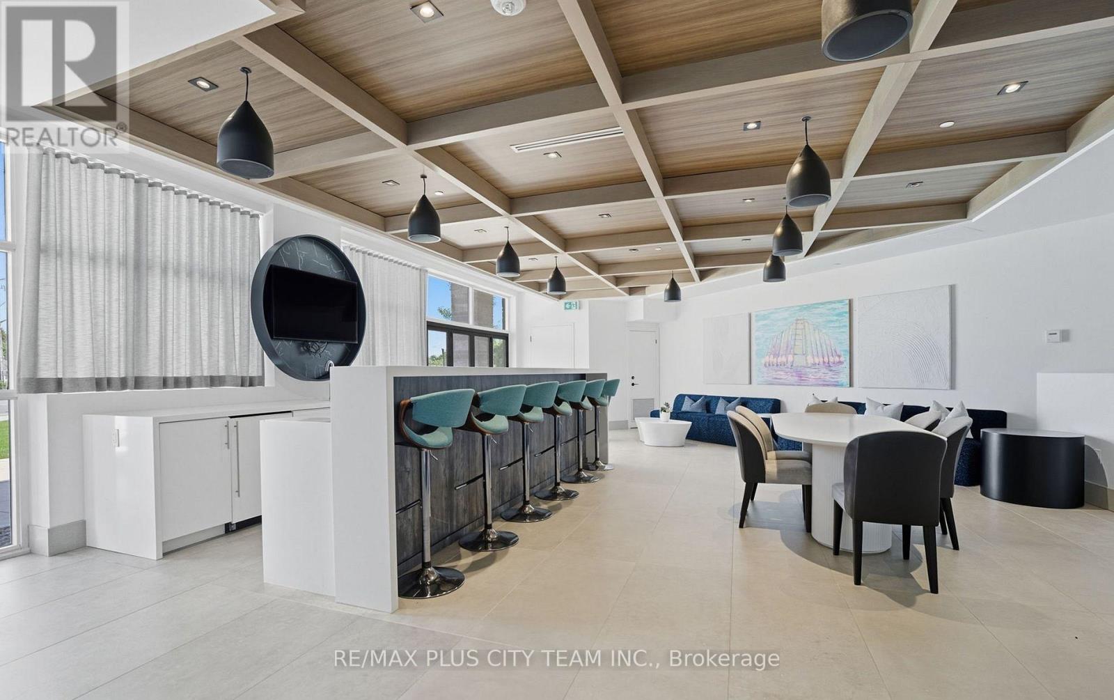 Experience Modern Lakeside Living At COMO Condos In Stoney Creek. This Stylish 1 Bedroom + Den Suite Offers A Thoughtfully Designed Layout With Open-Concept Living And Dining, Enhanced By Luxury Vinyl Plank Flooring And Floor-To-Ceiling Windows That Fill The Space With Natural Light And Showcase Beautiful Lake Views. The Contemporary Kitchen Features Quartz Countertops, Extended Cabinetry, Built-In Appliances, And A Functional Breakfast Bar-Perfect For Both Everyday Living And Entertaining. The Spacious Bedroom Includes A Walk-In Closet, While The Versatile Den Provides An Ideal Space For A Home Office Or Additional Living Area. Step Out Onto Your Private Balcony And Enjoy Unobstructed Views Of Lake Ontario And The Toronto Skyline-A True Extension Of Your Living Space. Complete With One Underground Parking Space And A Storage Locker, This Unit Offers Both Comfort And Convenience. Residents Enjoy Access To Exceptional Amenities Including A Rooftop Terrace, Community Garden, Party Room, Media Lounge, Parcel Lockers, Bike Storage, And More. Ideally Located Near The Waterfront, QEW, Upcoming GO Station, And Everyday Amenities-This Is A Fantastic Opportunity To Own In A Growing Lakeside Community. (id:64974)