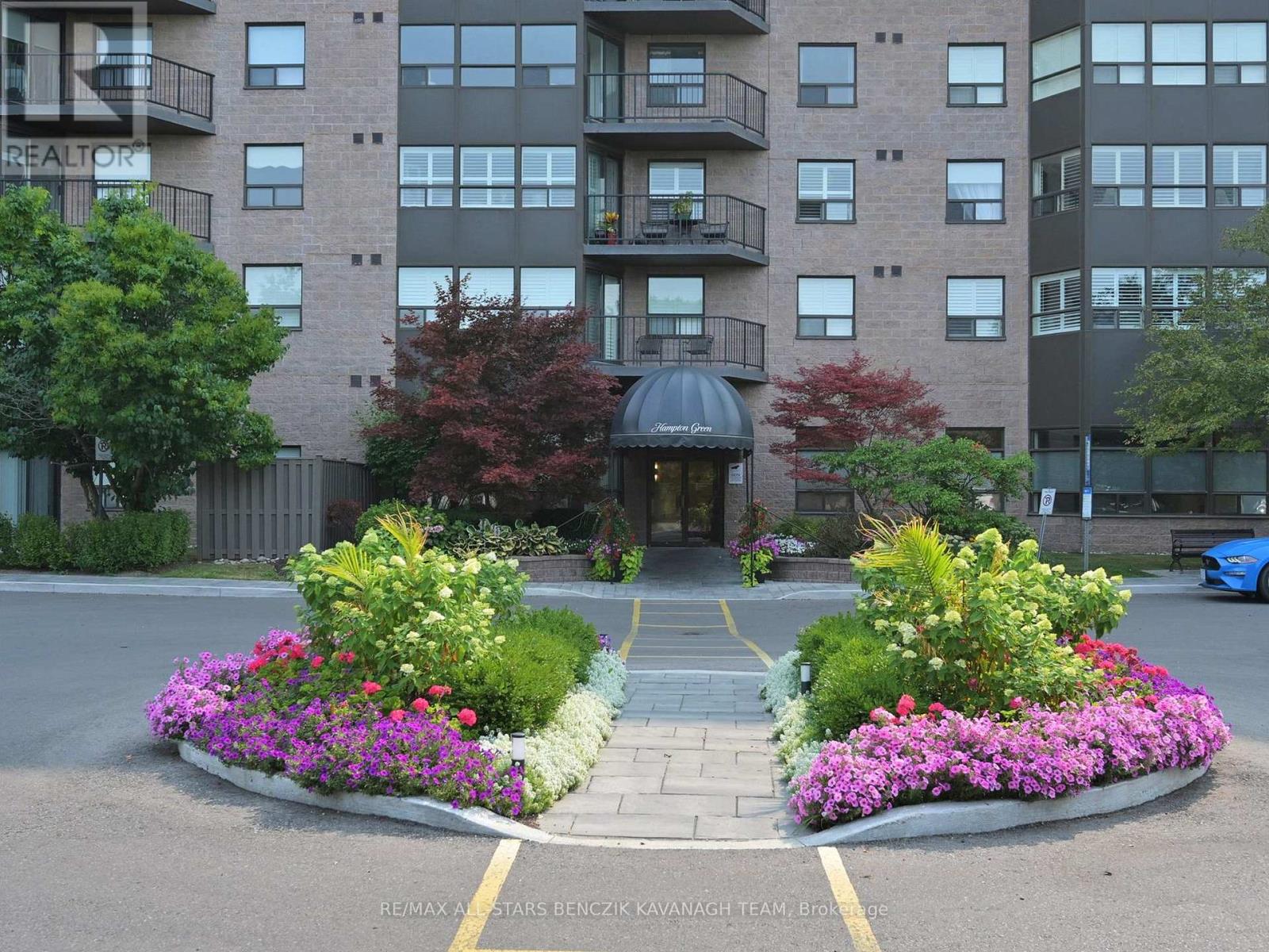 Located in the highly sought-after Hampton Green building. This spacious 1,131sqft, 2-bedroom condo offers breathtaking western views, a bright, open-concept living and dining area with laminate flooring and wall-to-wall windows fitted with California shutters. Maintenance Fee is All Inclusive! The kitchen, thoughtfully designed for the culinary enthusiast, overlooks the main living space and includes all the essentials to prepare home-cooked meals while entertaining family and guests. The primary bedroom features his-and-her closets, California shutters and a 4-piece ensuite. The generously sized second bedroom offers laminate flooring, a large closet and is situated next to the 4-piece main bathroom. Enhancing daily living, the suite also includes ensuite laundry, extra storage space, one locker, and a dedicated parking space. Ideally located, it offers easy access to GO Transit and Highways 407 and 404, while local shops, restaurants, Markville Mall, Markville Secondary School, and Markham Stouffville Hospital are all just a short walk or drive away. *Non Smoking Building (id:64974)