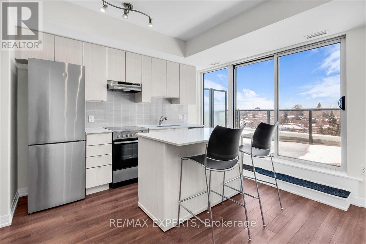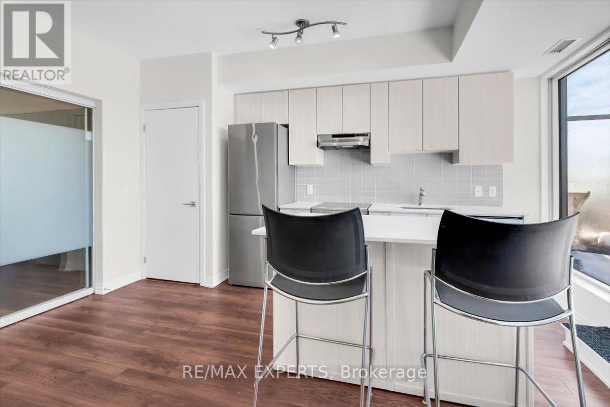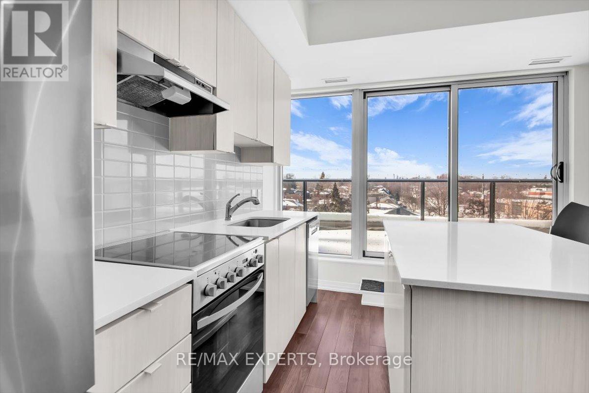 Welcome to this beautifully designed 1-bedroom + den, 1-bathroom condo located in one of Toronto's most desirable neighbourhoods. This bright and modern unit features an open-concept layout with sleek finishes throughout, including stainless steel appliances, contemporary cabinetry, and stylish flooring.The functional kitchen offers ample storage and workspace, flowing seamlessly into the living and dining area - perfect for entertaining or relaxing at home. The spacious bedroom provides comfort and privacy, while the versatile den is ideal for a home office, nursery, or guest space.Enjoy the convenience of living in a vibrant area close to transit, shopping, restaurants,parks, and everyday amenities, making it perfect for professionals or couples. Don't miss this opportunity to live in a thoughtfully designed space in the heart of Etobicoke! (id:64974)