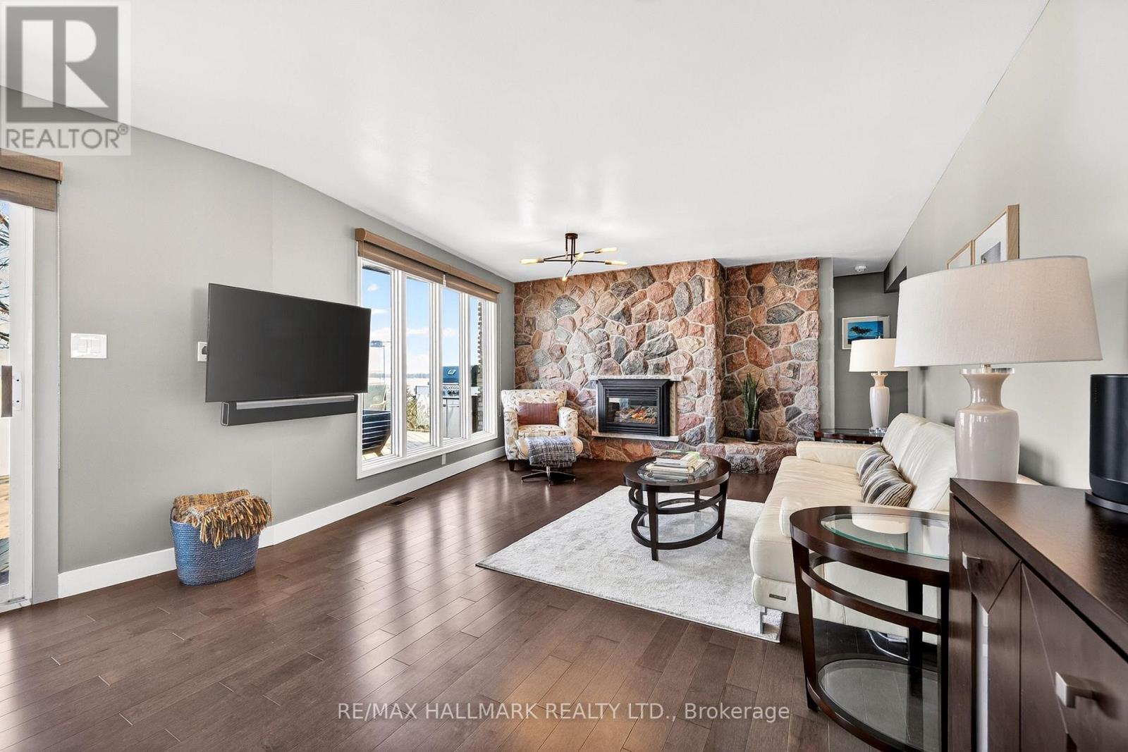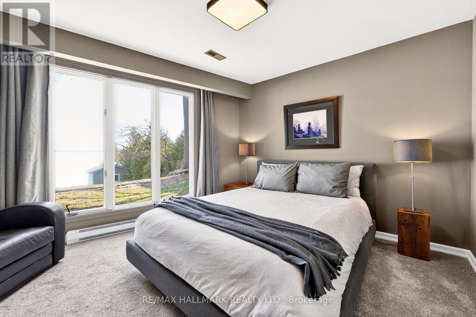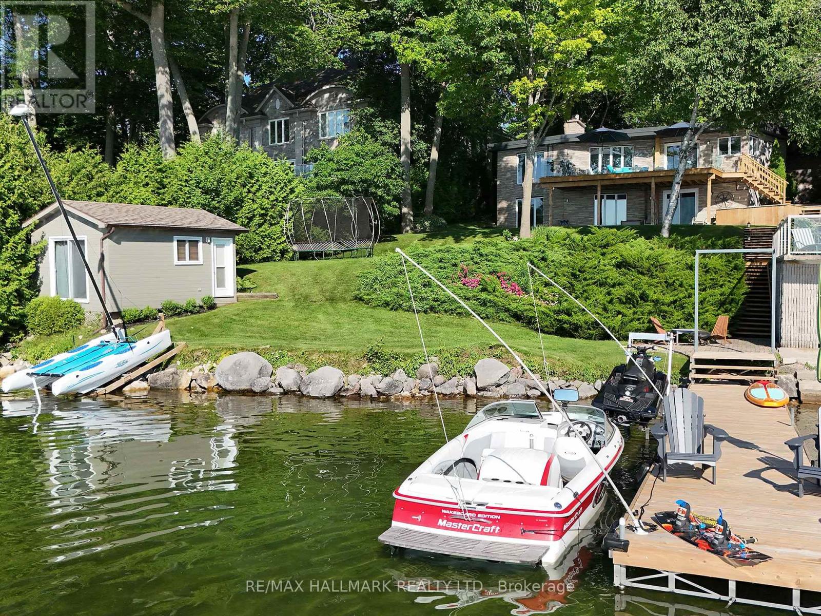 Tucked along the tranquil shoreline of Lake Couchiching, this cherished waterfront stylish residence tells a story nearly three decades in the making. Held by the same family since 1991, this is a rare offering with 100FT of direct lakefront where each sunrise paints the lake in soft gold and every moment feels effortlessly connected to nature. Step inside spanning over 2,900+ sq ft of thoughtfully designed living, where the heart of the home opens into: MAIN, Foyer, Powder room and Laundry/Closet nook leads into culinary-inspired grey kitchen with stone countertops anchors the space, overlooking the dining and living areas framed by wall-to-wall windows where morning light pours in, offering uninterrupted sunrise views across the water, an everyday luxury that never fades. As the day winds down, retreat to the family room where western skies glow with sunset hues, creating the perfect backdrop to relax and recharge. Primary suite is complete with its own ensuite bath and generous his+hers closets. LOWER GROUND LEVEL, extends the home's story, offering 3 principal size bedrooms, each with ample closet space, a beautifully appointed 4-piece spa-inspired bath with slate tile finishes & heated floor. Designed for both comfort and connection, this level becomes the ultimate gathering space, featuring a recreation room with fireplace, full bar with kegerator, and a sauna for moments of indulgent escape. EXTERIOR: Hydropool Spa Hot Tub, Boathouse, Sleeping Bunkie furnished for 5 guests. This is a rare blend of legacy, lifestyle, and lakefront living. "This is more than a home, it's a waterfront story waiting for its next chapter." (id:64974)