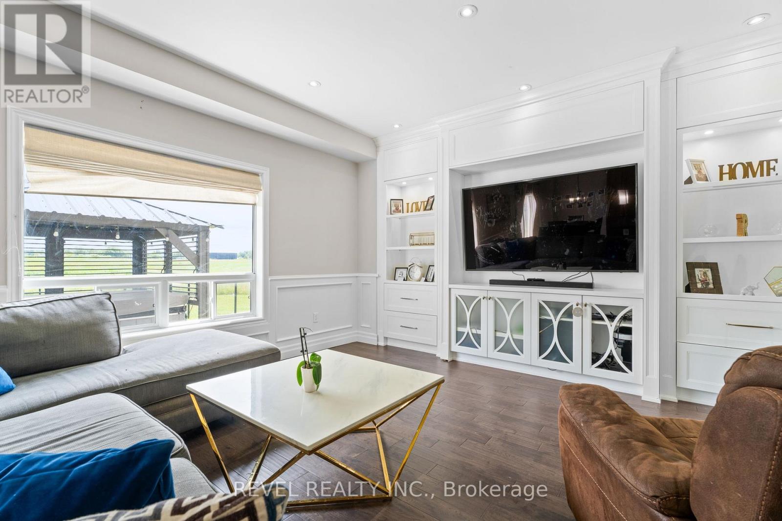 Tucked into one of Shelburne's most family-friendly streets, 416 Tansley Street offers something that almost never comes up in town... a truly oversized, pie-shaped lot with no neighbours to one side or behind. This backyard is the kind of space buyers wait for. Private, expansive, and full of potential. Whether you're dreaming of a pool, summer entertaining, or simply room for the kids to run and play, this property delivers it all while still being right in town.Step outside and you'll find a beautifully designed stone patio complete with a built-in BBQ, bar fridge, and TV setup, creating the ultimate outdoor hangout space. It's ready for summer nights, game days, and effortless hosting. Inside, the home offers over 3200 square feet above grade with a layout that truly works for modern families. The main level features engineered hardwood throughout, a formal dining room, multiple living spaces including a bonus family room or playroom, and a spacious kitchen with abundant storage, an eat-in area, and a walkout to the backyard.Upstairs, you'll find four generously sized bedrooms, each with access to a bathroom, including a well-appointed primary retreat + 1 bonus bedroom in the basement. The thoughtful layout offers both comfort and privacy for growing families.The fully finished lower level offers incredible flexibility with a separate entrance through the garage, two additional bedrooms, a full bathroom, and its own laundry. Ideal for extended family, guests, or creating a private secondary living space.This is more than just a home. It's a rare opportunity to own one of the largest and most private in-town lots in Shelburne, paired with the space and layout today's families are searching for.If you've been waiting for something that stands out from the rest, this might be the one. (id:64974)