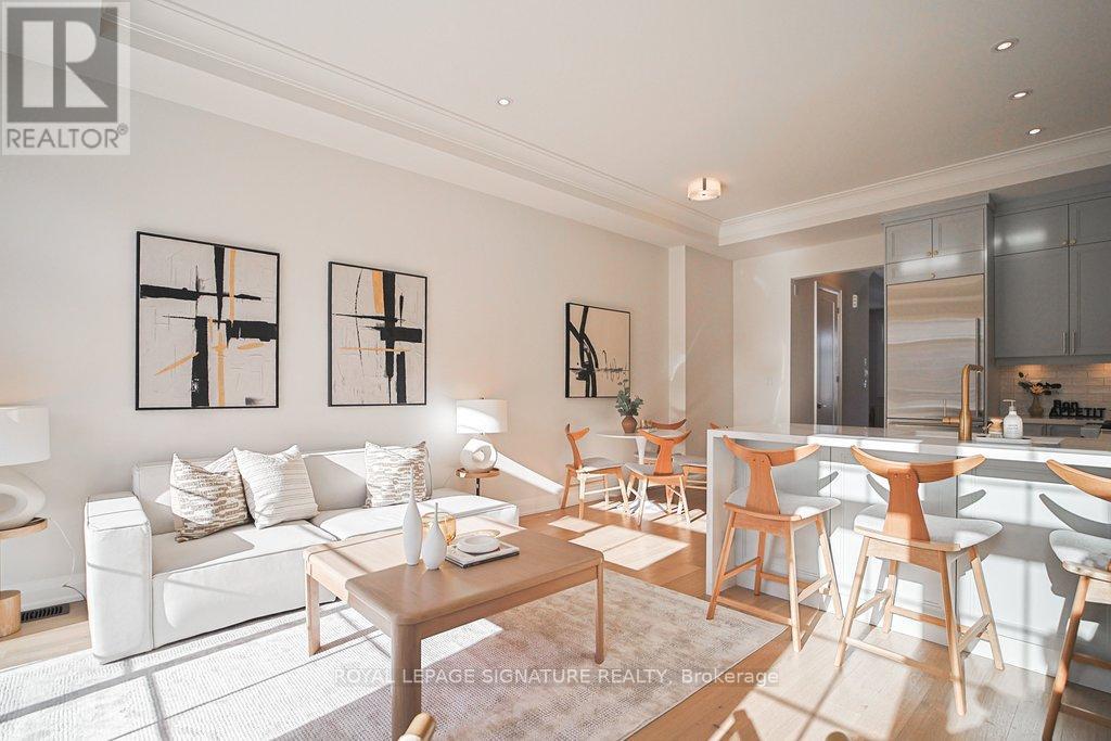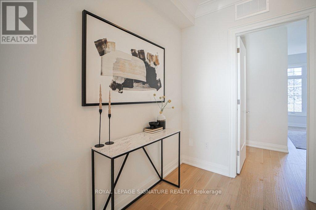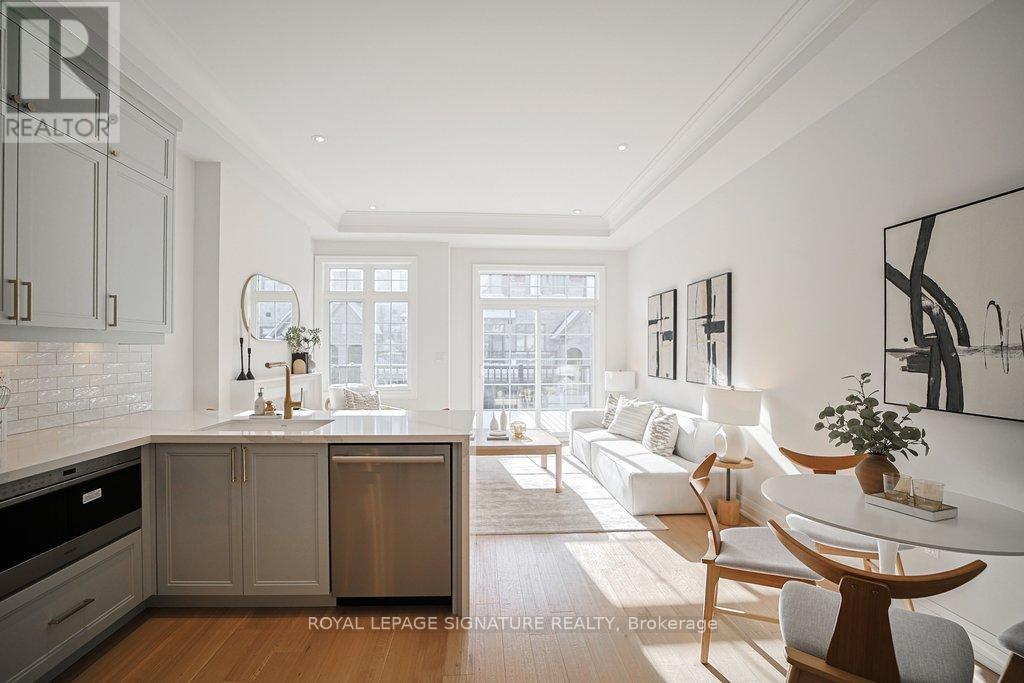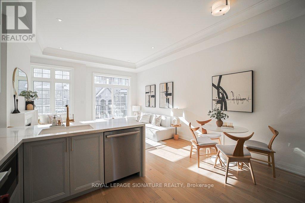 Welcome to this elegantly designed brand new 'Kylemore' town home situated in the beautiful community of 'Brownstones' surrounded by forest & Angus Glen golf course. This end unit features: 5" hardwood floors & hardwood stairs with black iron pickets and pot lights throughout. Gorgeous kitchen has pastel colored cabinets with gold hardware, subway tile backsplash, over sized sink with gold faucet, Sub Zero, Wolf & Bosch built in stainless steel appliances, quartz counters with waterfall feature & breakfast bar. Open concept family room features an upgraded electric fireplace and mantel, has a walk out to the terrace and gas BBQ. line. Large Formal room. Extra family room/office on ground level, 3 Bedrooms, 2.5 bathrooms with upgraded tiles & faucets. Situated close to all amenities. Walking trails, Schools, Transit, Golf, Community Centre, Library, shopping & Hwy 404 (id:64974)