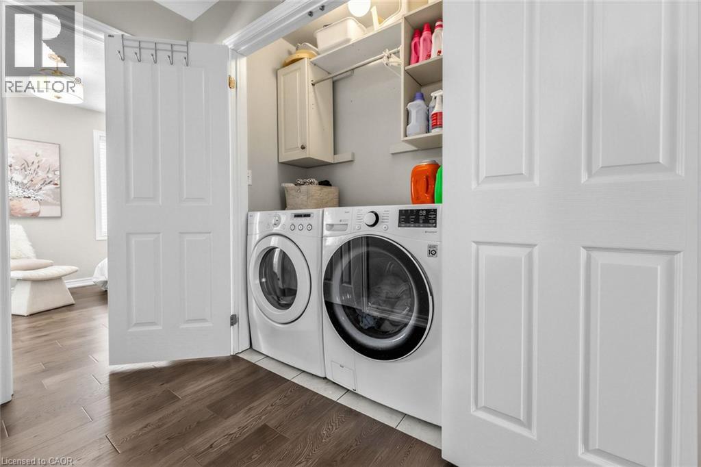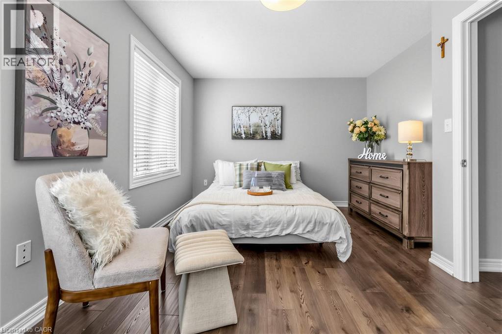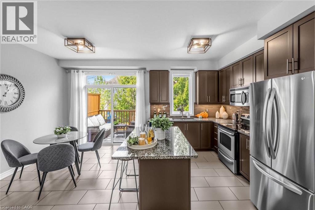Bright and spacious, beautifully upgraded Branthaven luxury townhome located in the desirable Millcroft community. This home offers 3 bedrooms and 2.5 bathrooms with a functional and stylish layout. The main level features a versatile third bedroom with a 4-piece bathroom, convenient inside access to the garage, and a walkout to the private backyard wooden deck. The second level offers 9-ft ceilings and an open-concept living and dining area with hardwood floors and pot lights, creating a bright and welcoming space. The spacious kitchen includes a dinette area, centre island, stainless steel appliances, granite countertops, and extended cabinetry, with a walkout to an elevated private deck-perfect for entertaining or enjoying morning coffee. Convenient third-level laundry includes a front-load washer and dryer. The upper level also features an updated bathroom with a separate tub and shower, upgraded lighting throughout, and generous bedroom space. Wood staircases, engineered hardwood flooring, and the main level deck were updated, along with an upgraded powder room vanity. The home backs onto a private, treed common area, providing added privacy and a peaceful setting. Low condo road maintenance fees. Situated in Burlington's highly sought-after Millcroft neighbourhood, known for its tree-lined streets, executive homes, and the renowned Millcroft Golf Course. Close to top-rated schools, Tansley Woods Community Centre, shopping, restaurants, and with easy access to Highways 403, 407, and the QEW, Appleby GO for convenient commuting to Toronto, Oakville, and Hamilton. (id:64974)