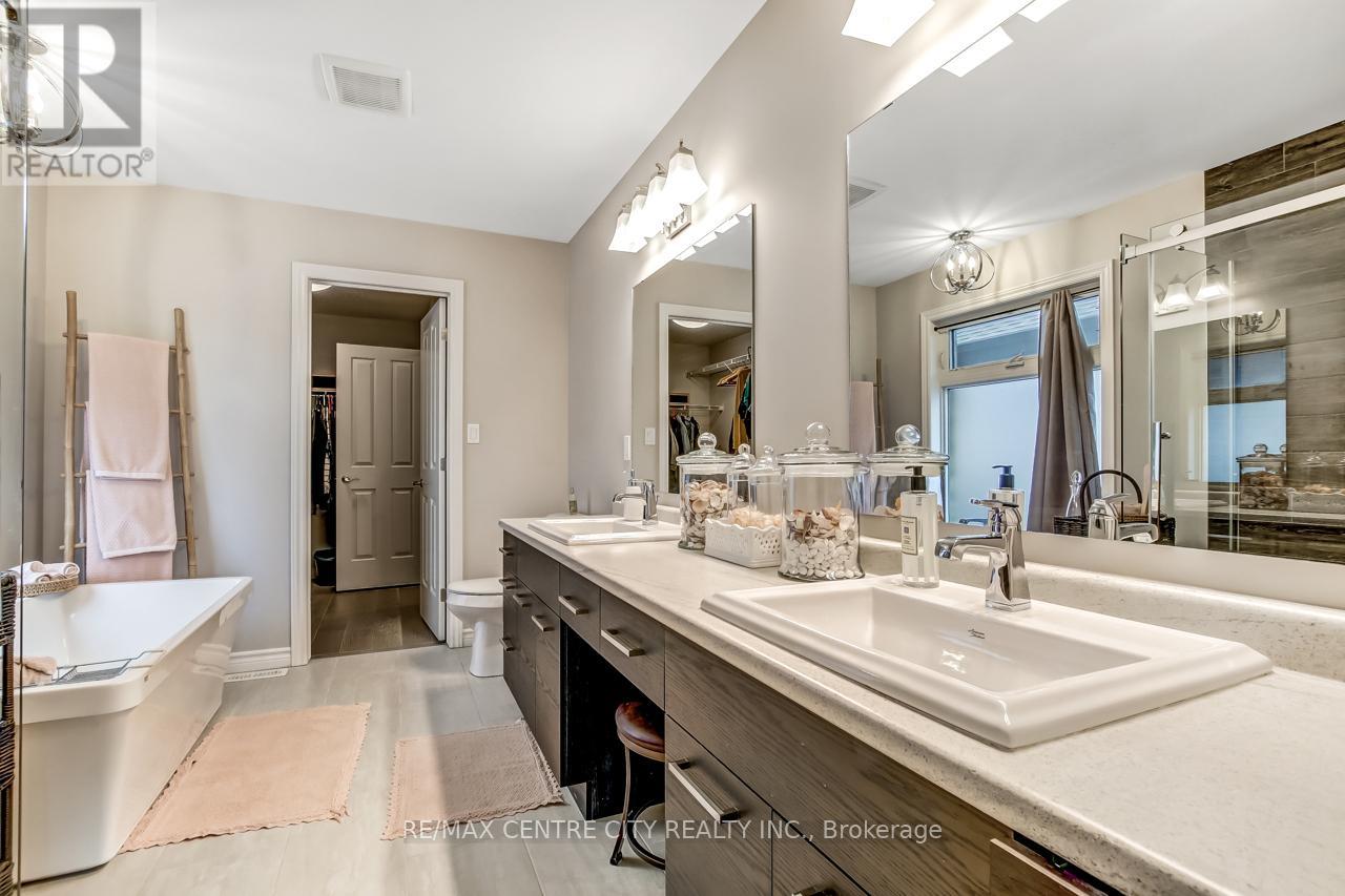 Welcome to 417 Beamish Street in Port Stanley-a stunning 2+2 bedroom, 3 bathroom bungalow set on a desirable corner lot in a quiet neighbourhood. With charming curb appeal, a welcoming front porch, and a double attached garage, this move-in ready home offers the perfect blend of comfort and style. Step inside to a bright, open foyer featuring a versatile office or bedroom space, a convenient 2-piece powder room, and main floor laundry with direct access to the garage and a pass-through to the primary walk-in closet. The heart of the home showcases an open-concept living and dining area with 10 ft ceilings, filled with natural light and anchored by a cozy gas fireplace. The beautiful kitchen offers a breakfast bar, gas stove, and flows seamlessly into an eat-in area with sliding doors leading to the back deck-perfect for indoor-outdoor living. Privately tucked to the side of the home, the primary suite features a spacious walk-in closet and a luxurious 5-piece ensuite with double sinks, a soaker tub, and separate shower. The fully fenced backyard includes a patio area, shed, and gas BBQ hookup-ideal for entertaining. Downstairs, the finished lower level adds incredible versatility with a large rec room and second gas fireplace, workout space, two generous bedrooms, a 4-piece bath, and multiple storage rooms. With kitchen rough-ins already in place, there is excellent potential for an in-law suite. A fantastic opportunity to enjoy spacious, flexible living in a beautifully maintained home just minutes from everything Port Stanley has to offer. (id:64974)