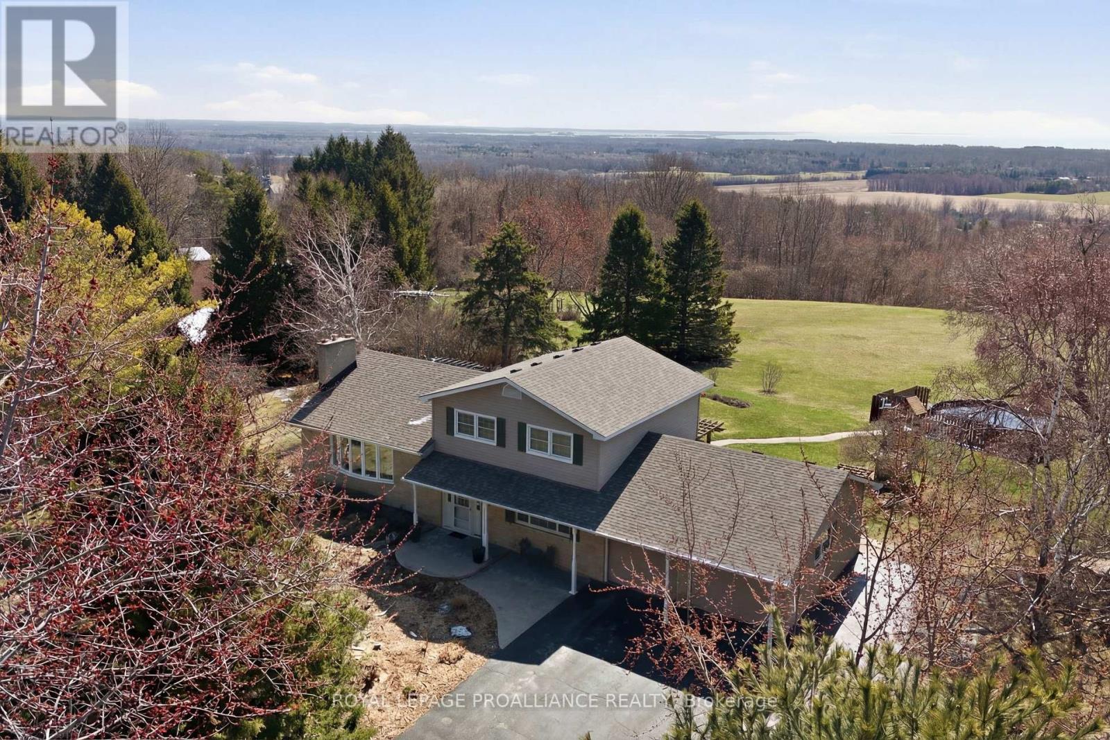 Lovingly cared for & beautifully updated, with stunning panoramic views of Lake Ontario & Presqu'ile Bay, this 3 bed 2.5 bath family home is the ideal destination for anyone looking for turn-key country living, only moments to the shops & schools of the charming town of Brighton. Paved, treelined driveway leads to the beautifully private 2.8 acre lot featuring a large vegetable garden, salt water above ground pool & detached, fully insulated shop with wood stove & attached driveshed. Perfect for hobbyists & storing outdoor equipment. Split level layout is ideal for busy family life & entertaining. Step up into the sun-filled kitchen showcasing hardwood cabinetry & task island with lake views. A spacious dining area with patio door to the elevated deck with pergola offers plenty of space for big family dinners indoors & out. Peaceful living room with gas fireplace & picture window overlooking mature trees completes this level.3 bedrooms on the upper level include a primary suite with walk-in closet, renovated 3-piece ensuite, & private balconette with stunning lake views. 2 additional bedrooms share a large, recently updated, family bath with built in storage & clever water closet division. Perfect for sharing on busy mornings. Tiled back door entrance with handy 2pc bath ideal for keeping busy days organized & to seamlessly enjoy the outdoors. Generous ground floor family room offers cozy family lounging & bonus area for a home office or play area. Lower level rec room with gas stove- great space for older kids- & laundry area with walk-up to the backyard- ideally configured for shaking off outdoor fun. Peace of mind & convenience with a whole home GenerLink system, natural gas service & Bell Fibe internet available. Stunning views, a lovingly updated family home & a highly sought-after location, this idyllic, turn-key property is where your country-living dreams come into focus. Feel at Home on Smith St. (id:64974)