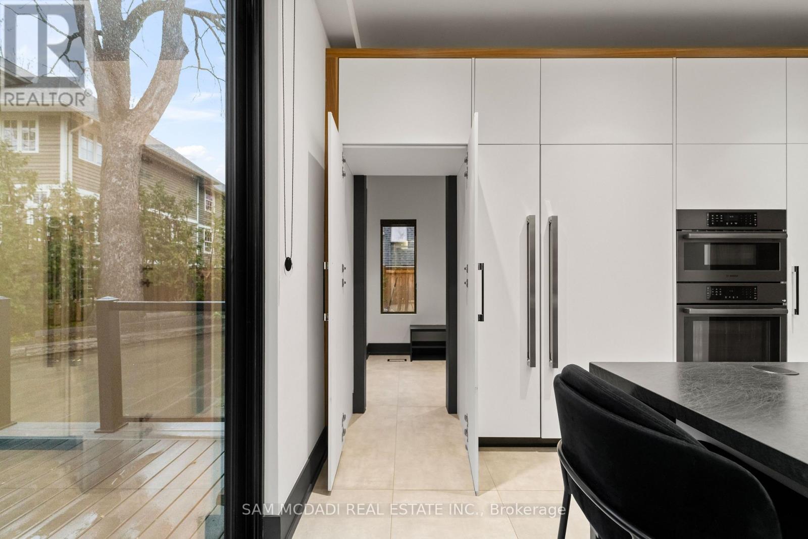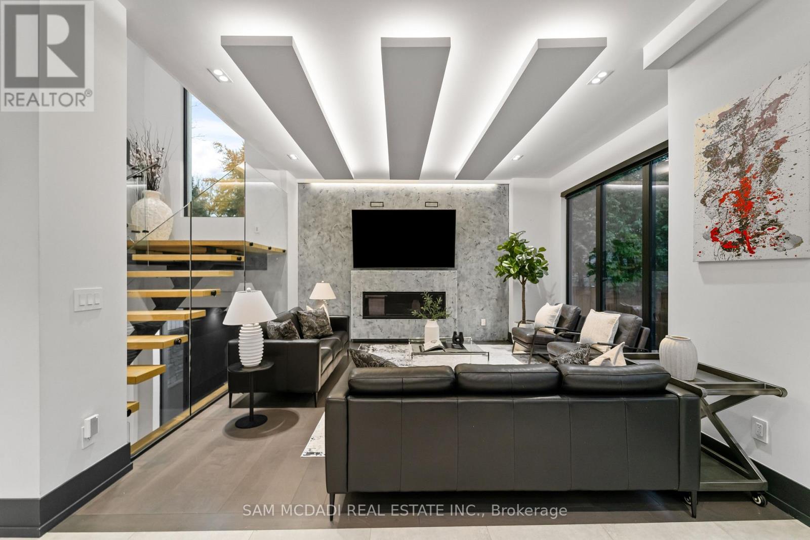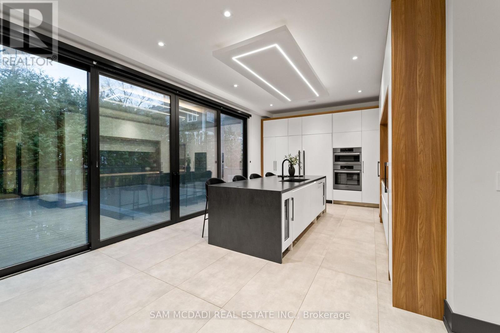Welcome to 417 Union Street, an exceptional modern home nestled in the heart of prestigious Old Oakville. Completed in 2023, this one-of-a-kind residence blends modern farmhouse inspiration with refined contemporary and traditional design elements, creating a home that is both striking and timeless. The modern farmhouse exterior showcases clean lines, black-framed windows, and a harmonious mix of materials, complemented by a covered porch, professionally landscaped front and back yards, and a stone six-car driveway. The backyard offers a private retreat with a deck, stone patio, and custom garden shed. Inside, the home is filled with natural light and defined by a modern, sleek interior. Wide-plank engineered hardwood flooring, custom ceilings with integrated LED lighting, and large-format matte tiles elevate the main living areas. The chef-inspired kitchen features quartz countertops and backsplash, an oversized centre island, built-in Bosch appliances, and a convenient adjoining servery. A tiered maple staircase with glass railings leads to the upper level, where skylights continue the home's bright and airy feel. The expansive primary suite spans over 700 square feet and offers two walk-in closets and a luxurious five-piece ensuite with double vanity, freestanding tub, and glass-enclosed rainfall shower. Three additional bedrooms each include their own custom three-piece ensuite with modern walk-in showers. The fully finished lower level adds outstanding versatility with a second kitchen, large recreation room, two additional bedrooms with ensuites, and a powder room. Additional highlights include an elevator servicing all three levels, 10-ft ceilings on the main and lower levels, pot lights, blackout blinds, built-in speakers, and a security system. Ideally located minutes from Lake Ontario, parks, trails, Oakville GO, the QEW, and top-ranked schools including Appleby College, this home delivers modern luxury, thoughtful design, and an exceptional lifestyle. (id:64974)