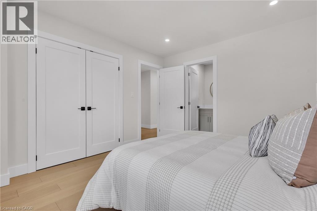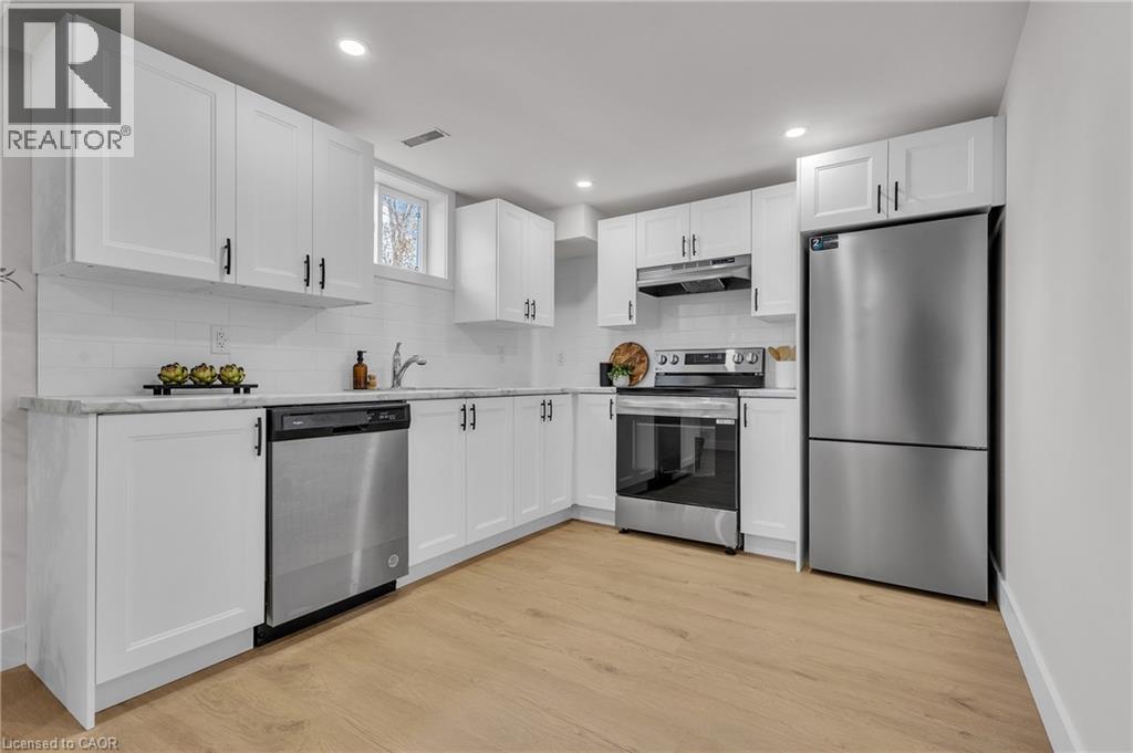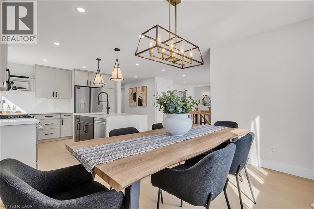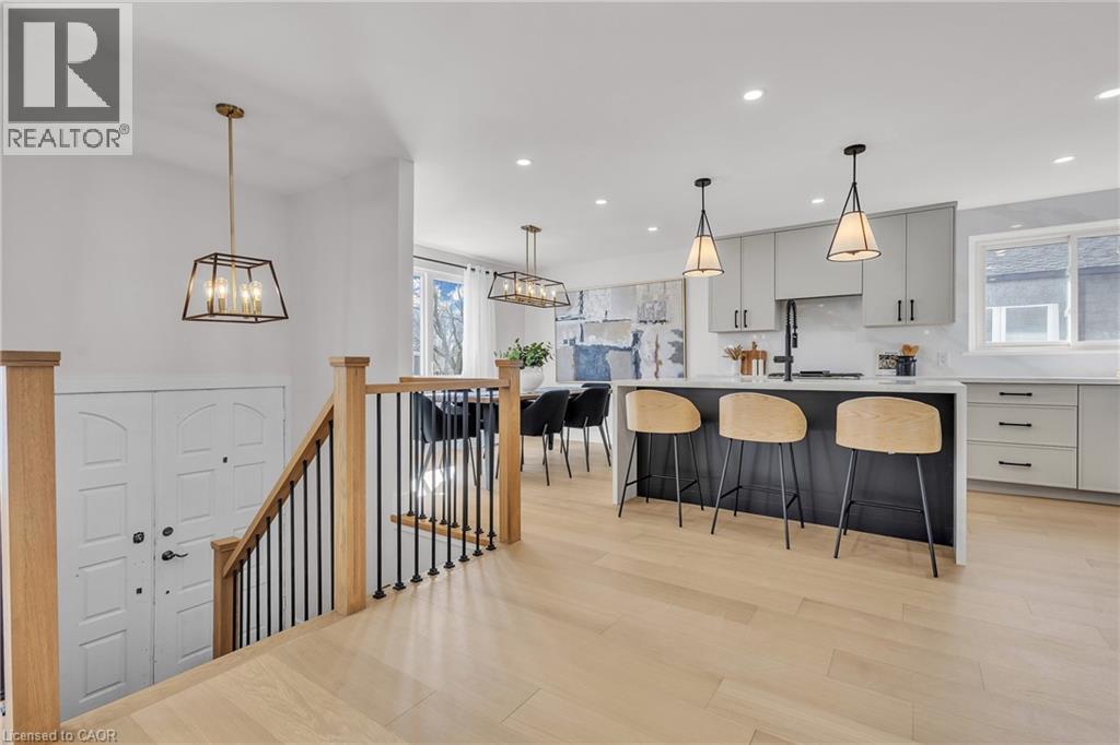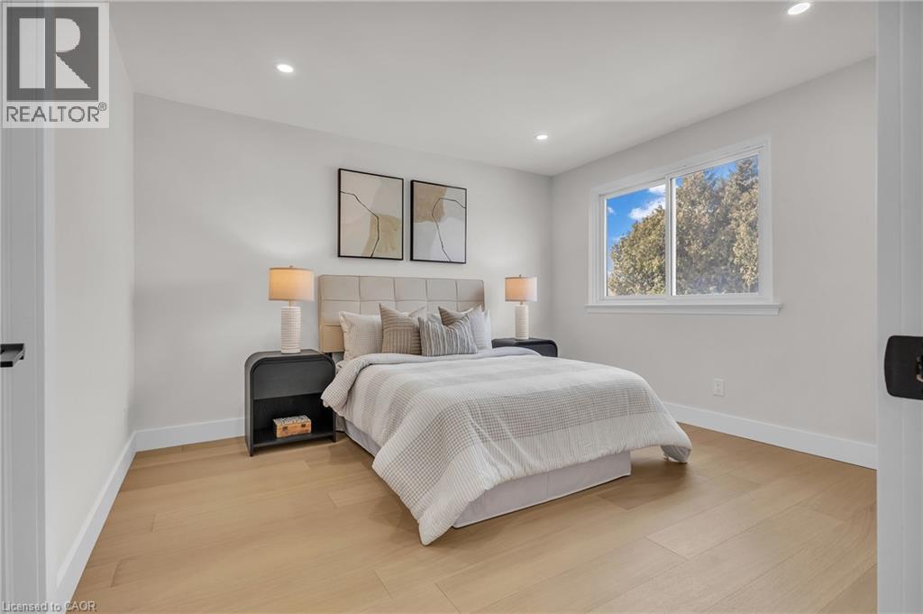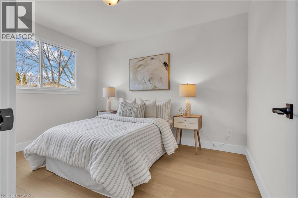 Welcome to 4185 Sutherland Crescent — a fully renovated raised bungalow in the heart of Burlington’s desirable Longmoor neighbourhood. Thoughtfully redesigned from top to bottom, this 3+1 bedroom, 3-bath home offers the ideal blend of refined finishes and versatile living space. The open-concept main level is designed for connection and entertaining, anchored by a two-tone contemporary chef’s kitchen featuring an oversized island, stainless steel appliances, and seamless flow into the dining area. Engineered hardwood flooring, pot lights, and curated designer finishes create a bright, cohesive aesthetic throughout. The spacious family room with a sleek electric fireplace provides a warm and inviting gathering space, while the primary suite offers a private retreat complete with a spa-inspired 3-piece ensuite and custom glass shower. A beautifully appointed 4-piece main bath showcases elevated finishes and thoughtful design. The fully finished lower level expands the home’s functionality with a sunlit recreation room highlighted by a gas fireplace, an additional bedroom, full bathroom, and a secondary kitchen with walk-up access to the rear patio. Ideal for multi-generational living, guests, teenagers, this level adds exceptional flexibility rarely found in homes of this caliber. Outside, the landscaped backyard with interlock patio creates the perfect setting for summer entertaining, family gatherings, or quiet evenings outdoors. Situated on a quiet, tree-lined crescent near top-rated Nelson High School, parks, shopping, GO Transit, and convenient QEW access, this turnkey property delivers luxury, utility, and location — perfectly suited for families who value both style and substance. (id:64974)