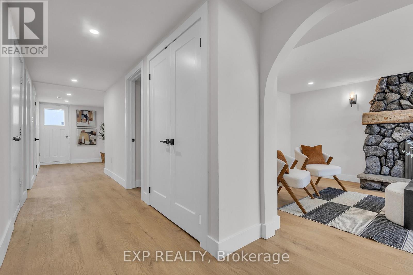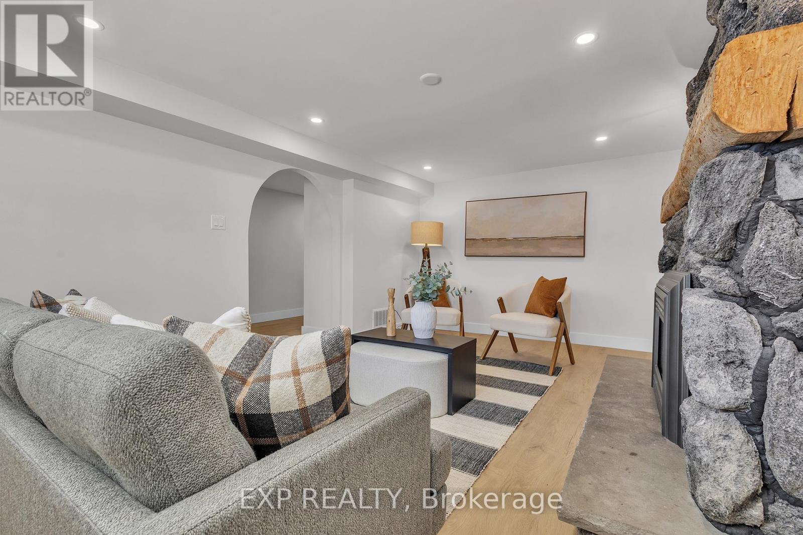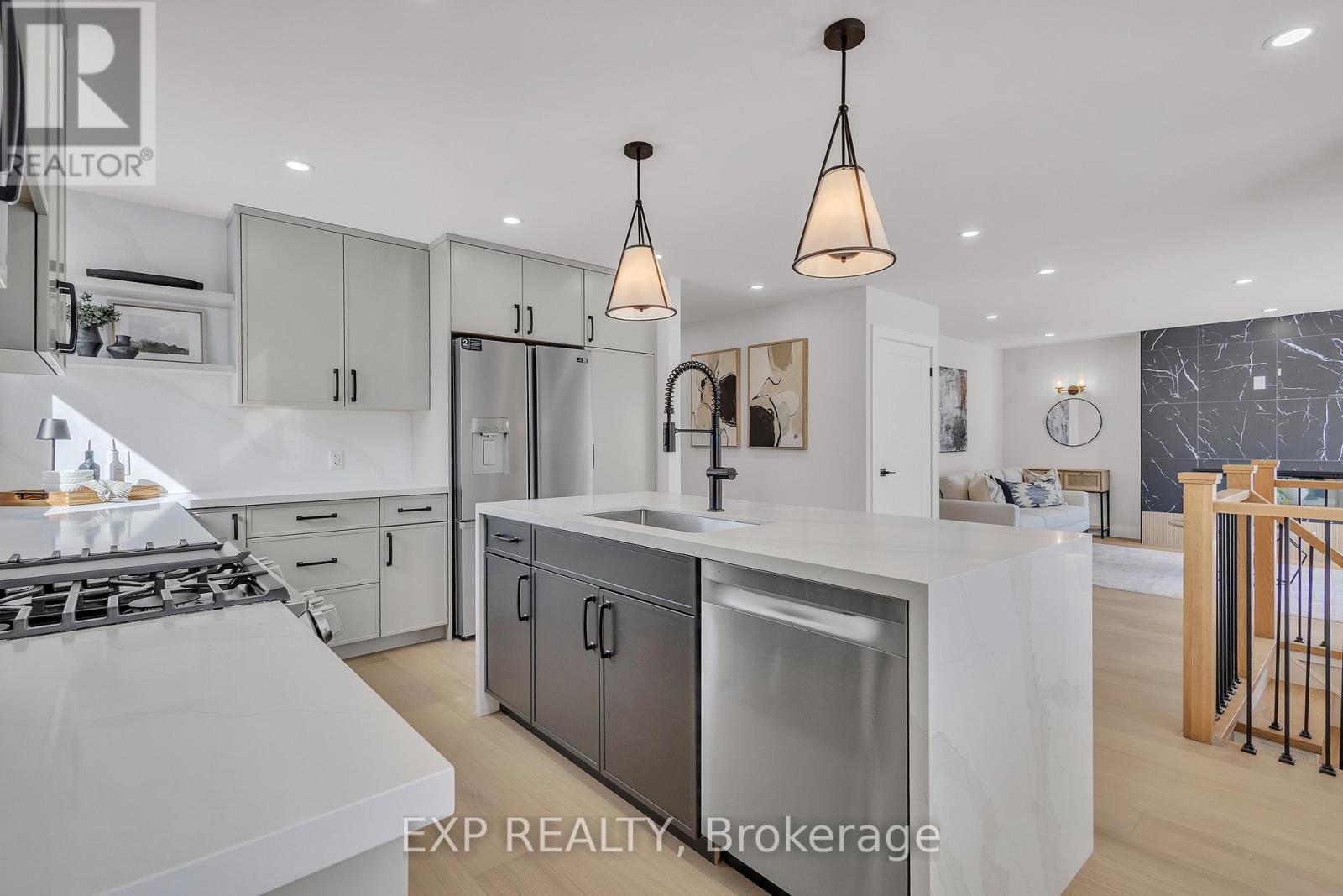 Welcome to 4185 Sutherland Crescent - a fully renovated raised bungalow in the heart of Burlington's desirable Longmoor neighbourhood. Thoughtfully redesigned from top to bottom, this 3+1 bedroom, 3-bath home offers the ideal blend of refined finishes and versatile living space. The open-concept main level is designed for connection and entertaining, anchored by a two-tone contemporary chef's kitchen featuring an oversized island, stainless steel appliances, and seamless flow into the dining area. Engineered hardwood flooring, pot lights, and curated designer finishes create a bright, cohesive aesthetic throughout. The spacious living room with a sleek electric fireplace provides a warm and inviting gathering space, while the primary suite offers a private retreat complete with a spa-inspired 3-piece ensuite and custom glass shower. A beautifully appointed 4-piece main bath showcases elevated finishes and thoughtful design. The fully finished lower level expands the home's functionality with a sunlit family room highlighted by a gas fireplace, an additional bedroom, full bathroom, and a secondary kitchen with walk-up access to the rear patio. Ideal for multi-generational living, guests, teenagers, this level adds exceptional flexibility rarely found in homes of this caliber. Outside, the landscaped backyard with interlock patio creates the perfect setting for summer entertaining, family gatherings, or quiet evenings outdoors. Situated on a quiet, tree-lined crescent near top-rated Nelson High School, parks, shopping, GO Transit, and convenient QEW access, this turnkey property delivers luxury, utility, and location - perfectly suited for families who value both style and substance. (id:64974)