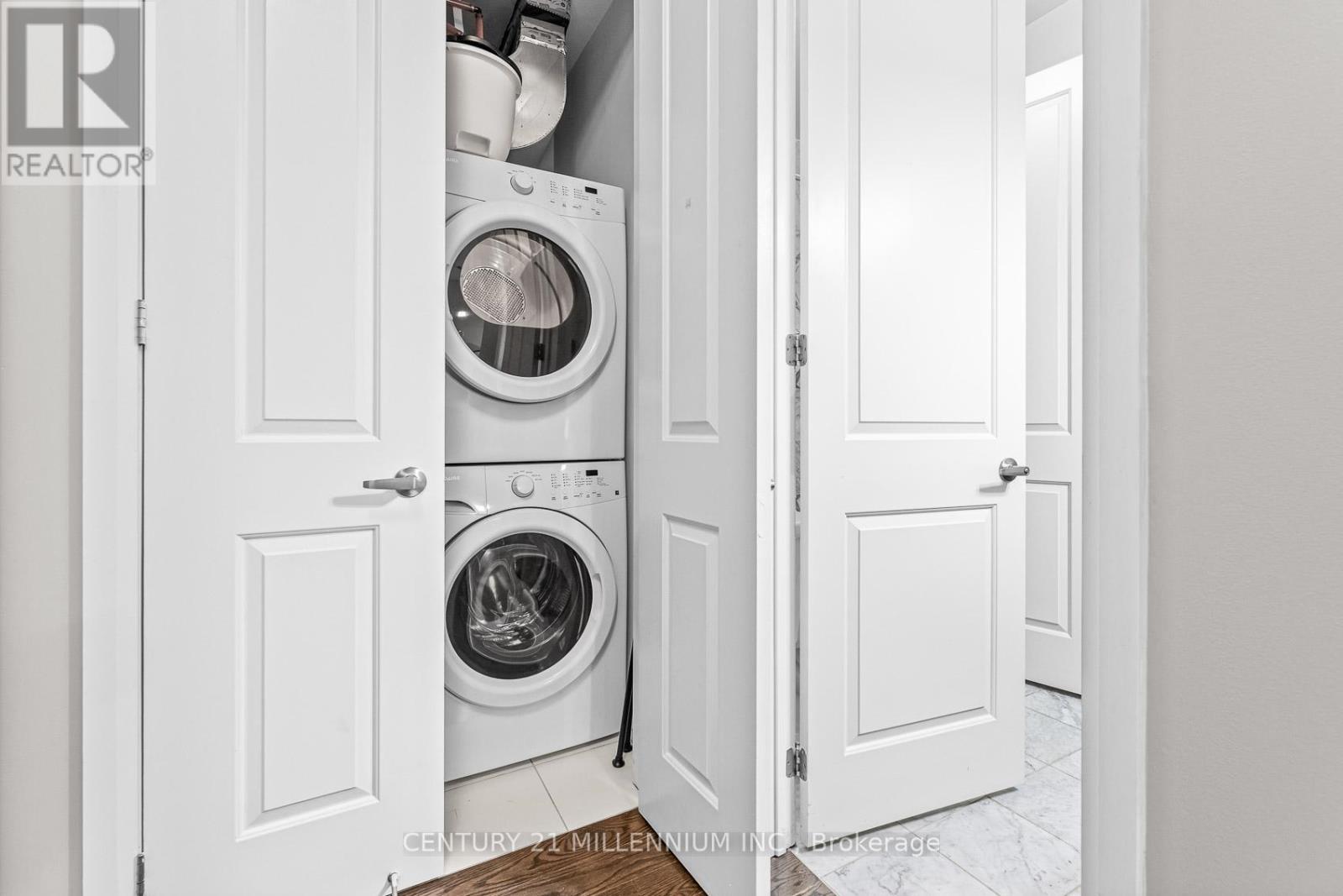 Welcome to unit 419-15277 Yonge St, Aurora! A beautiful and spacious one-bedroom condo available in the heart of Aurora. This welcoming unit is flooded with natural light and features 10-foot high ceilings, hardwood floors, ensuite laundry, and a private balcony. The kitchen is equipped with granite countertops, a breakfast bar, stainless steel appliances, and a tile backsplash. The bedroom includes a walk-in closet and a semi-ensuite bathroom. The condo has been freshly painted throughout and is move-in ready. It includes one exclusive-use underground parking spot, no need to worry about clearing the snow off your car. Residents enjoy fantastic building amenities, including a concierge, party room, gym, dog wash station, bicycle storage, and ample visitor parking. (id:64974)