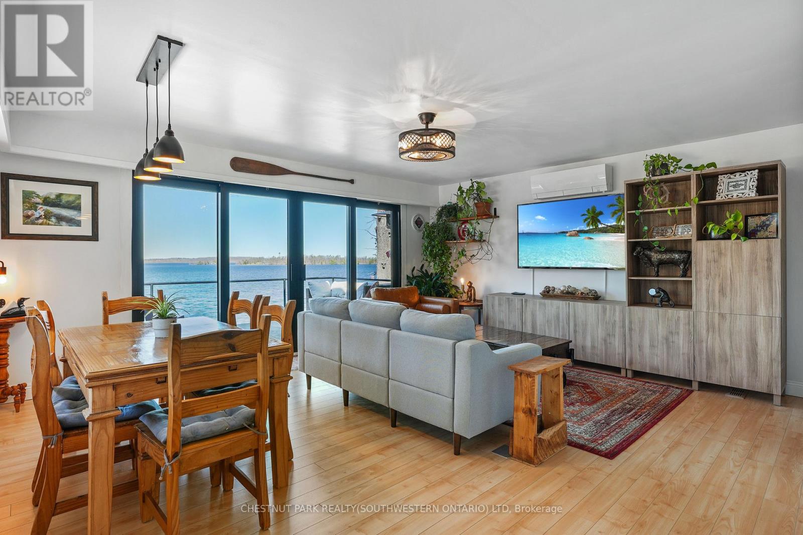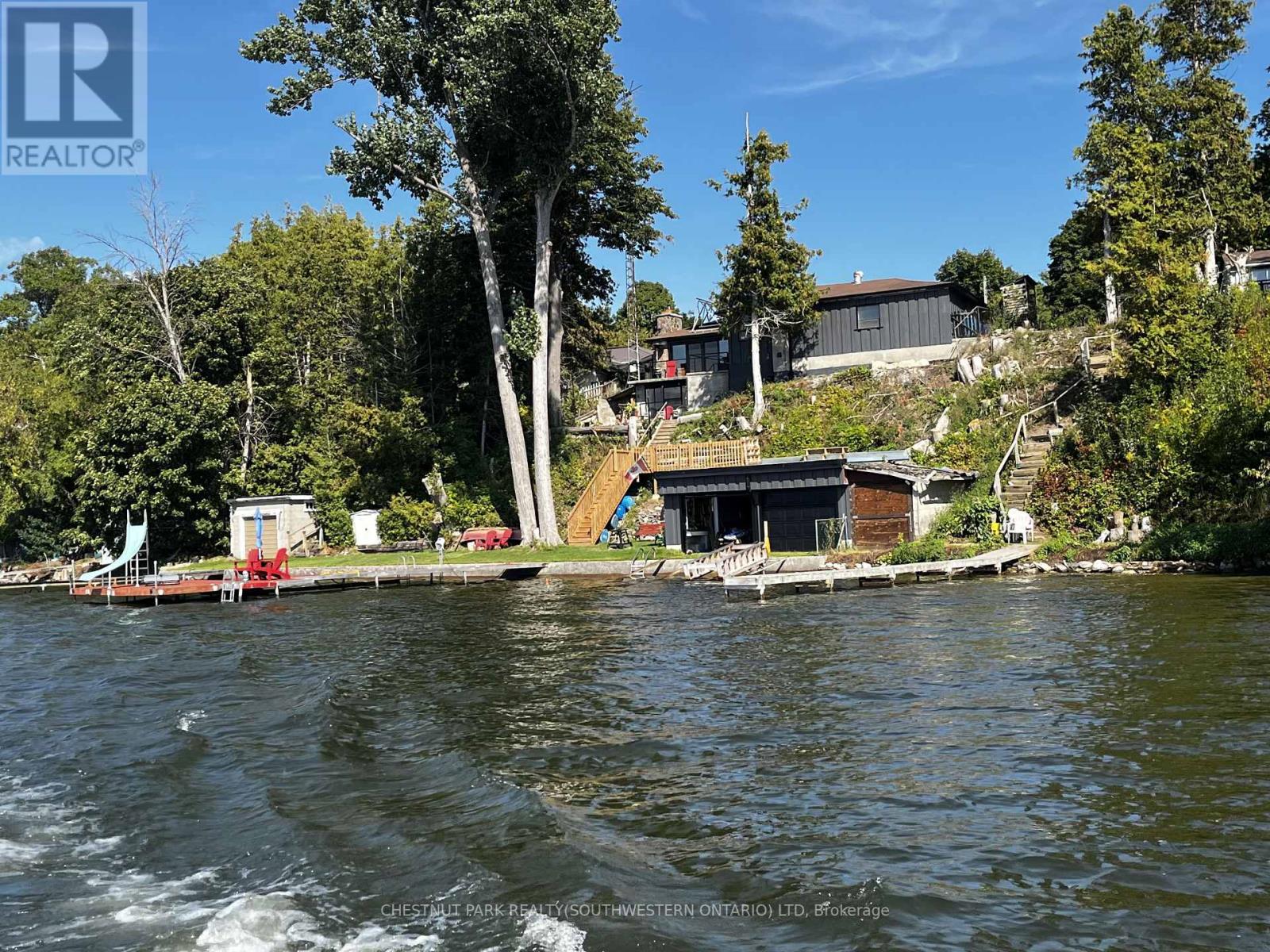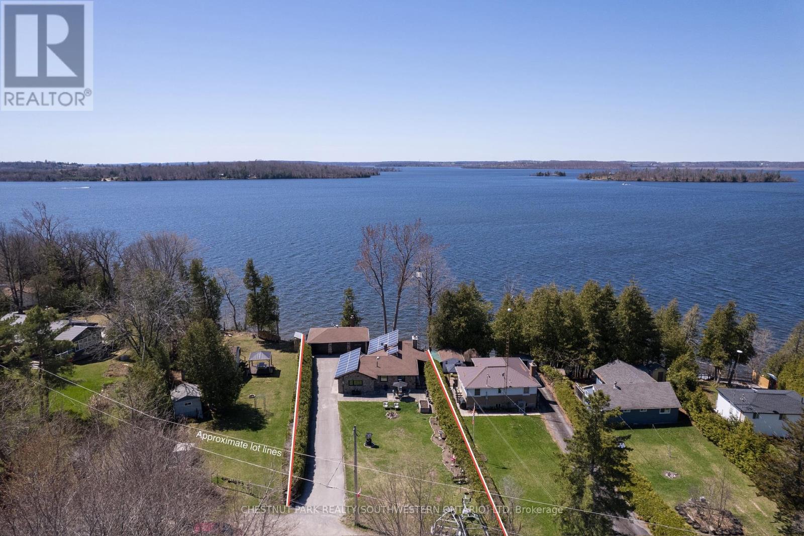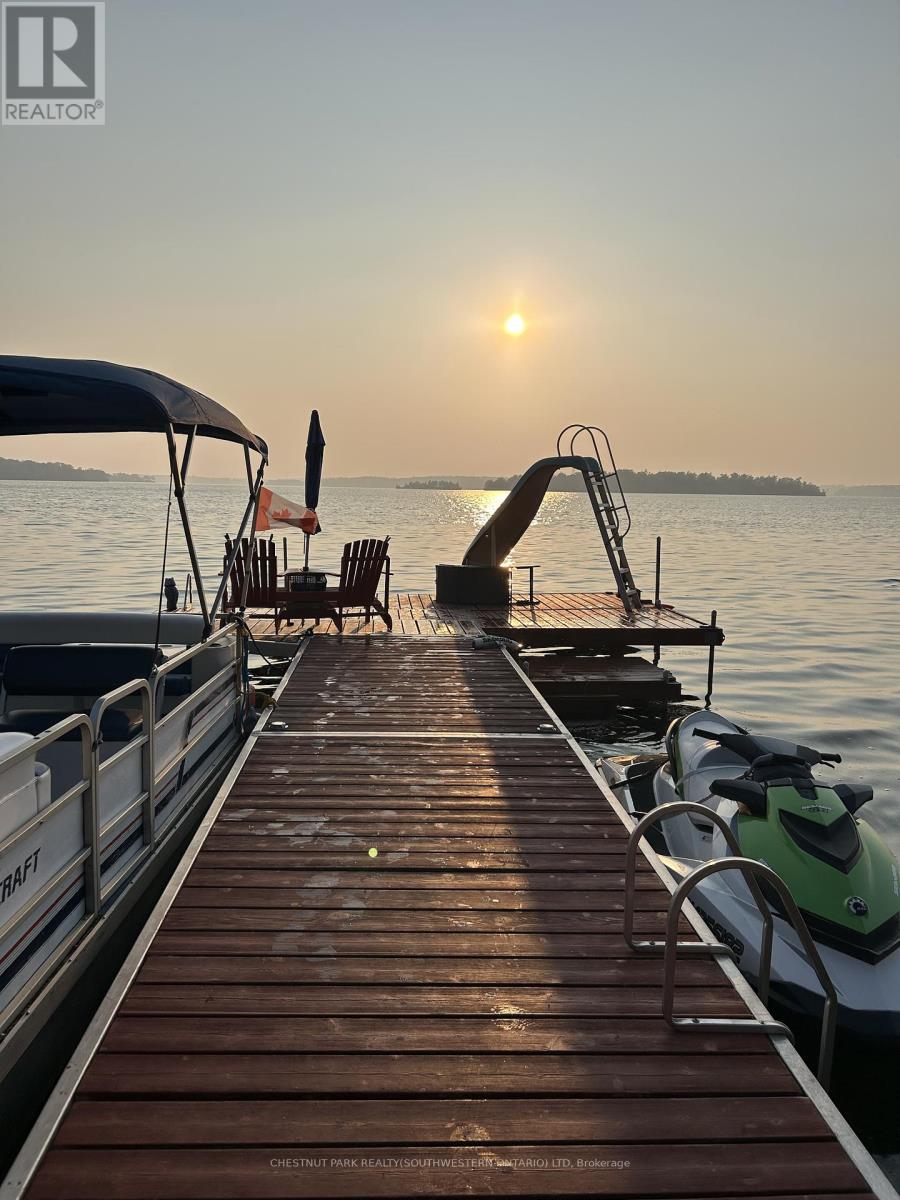 Your Waterfront Escape Awaits! Nestled on the serene south shores of Rice Lake, this property offers 75 feet of sparkling, west-facing waterfront - the perfect backdrop for unforgettable sunsets and year-round relaxation. Whether you're searching for a permanent residence or a four-season cottage getaway, this beautifully updated stone bungalow has it all. Inside, you'll find 3+1 bedrooms and 2 full bathrooms, including a finished walkout basement complete with a wood burning fireplace, sunroom and spacious rec room ideal for hosting family and friends. Enjoy the convenience of main-floor laundry, a brand-new kitchen with appliances (2024), and extensive updates including new windows, doors, soffit, fascia, and eavestroughs (2023). Efficient and comfortable living is ensured with three heat pumps and UV water filtration (2023). Step outside and explore the meticulously maintained grounds. A detached 3-car garage with a wood-burning fireplace offers extra storage or a great workshop space, while two fire pits set the scene for cozy summer nights under the stars. Water enthusiasts will appreciate the dry double-slip boathouse equipped with rails, electric winches, and cables, plus a 50' aluminum Ritley dock system featuring a swim ladder and sandy/rocky shallow entry into the clear waters. A concrete seawall provides long-term shoreline protection. Eco-conscious buyers will love the owned 10 KW solar panel system, supplying power directly to the home and R60 attic insulation. Located at the quiet end of a dead-end road, this once in a lifetime opportunity promises peace, privacy, and the ultimate waterfront lifestyle. (id:64974)