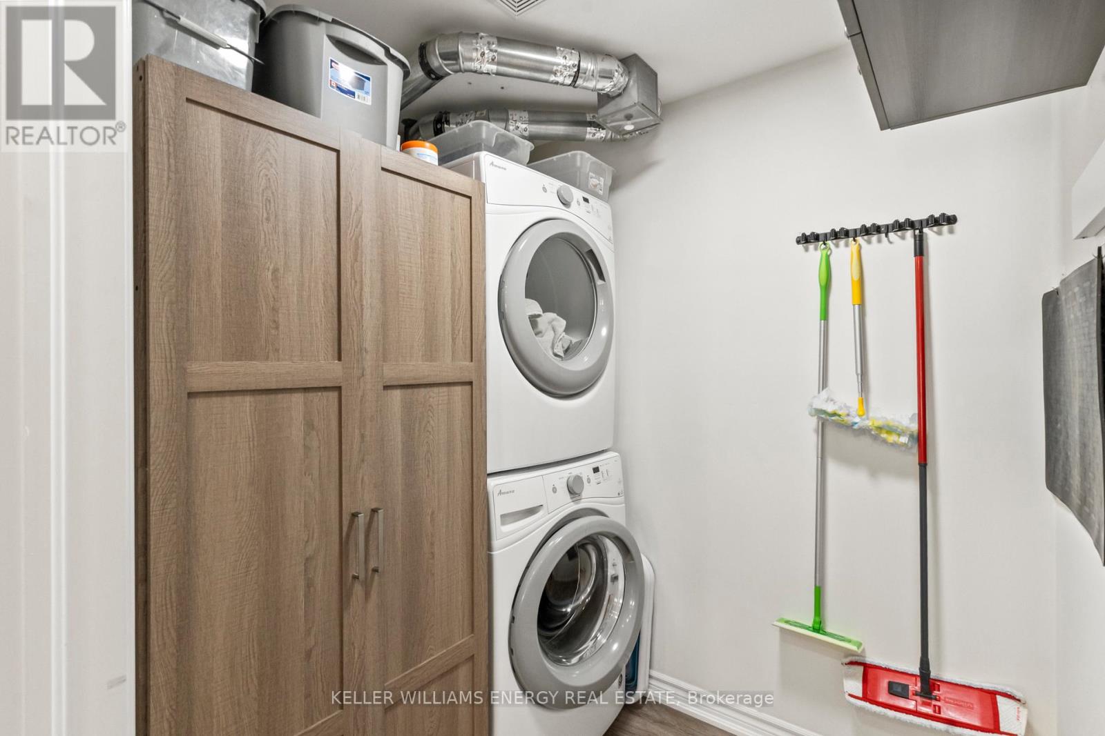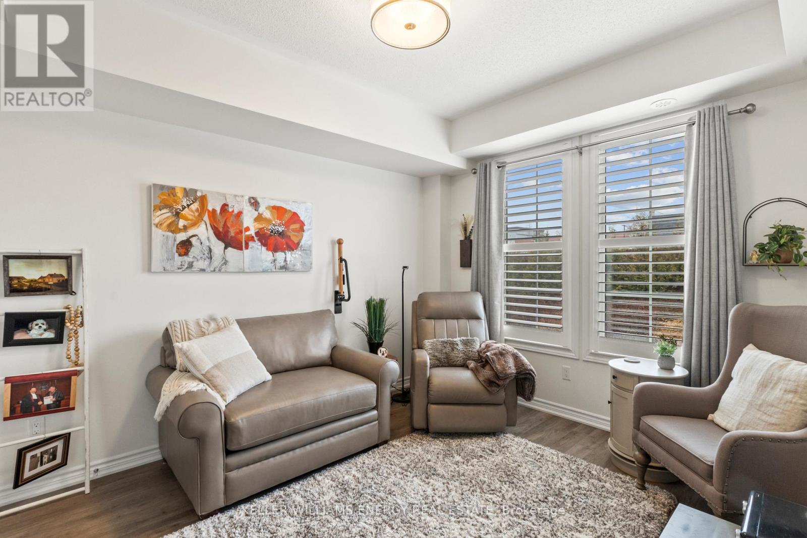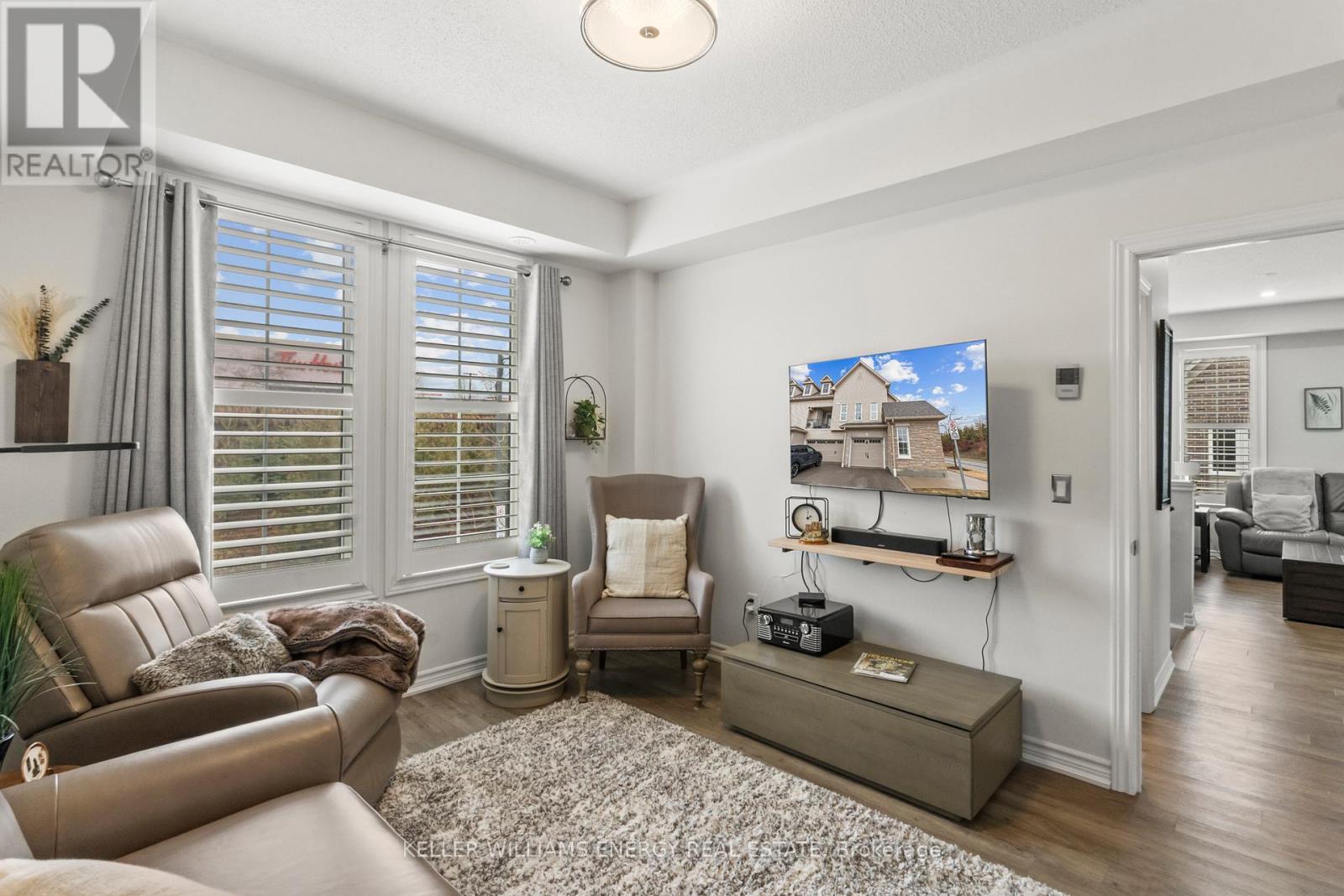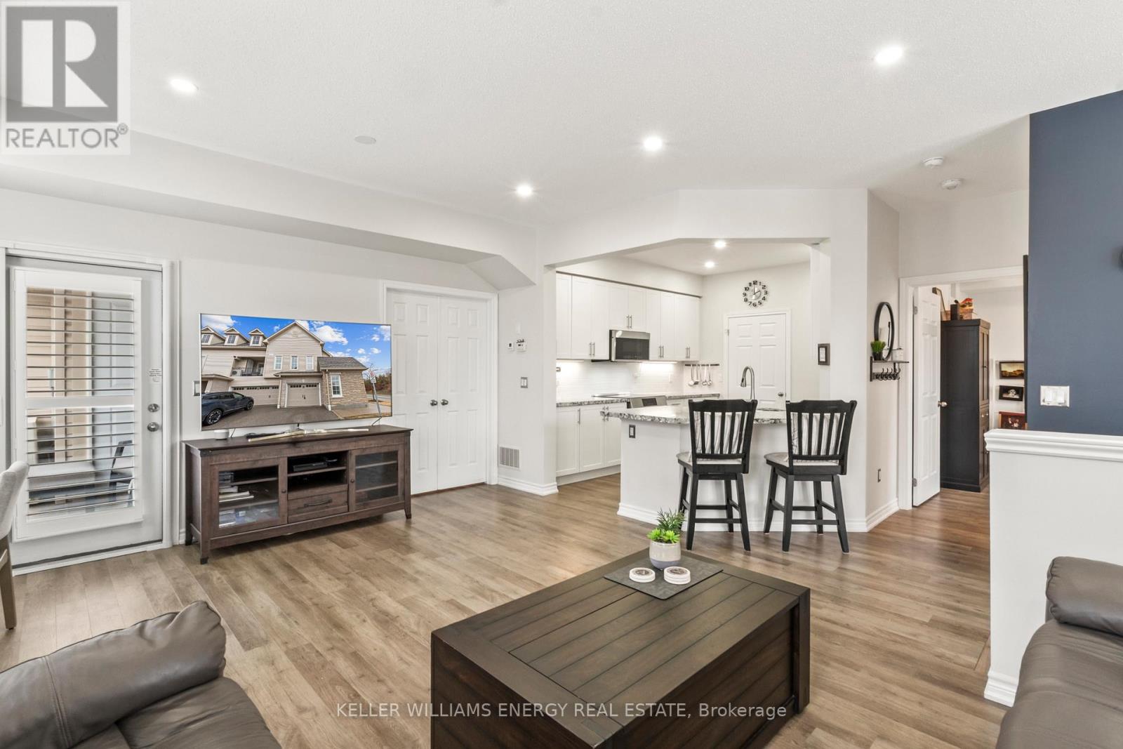Welcome to 42-1430 Gord Vinson Ave in Courtice, located in the highly sought-after Villas of McLaughlin Heights by Halminen Homes. This beautifully maintained 2-bedroom condo townhome is a rare corner unit that offers extra light, added privacy, and a layout that shows exceptionally well. Step inside to an open concept design featuring 9 ft ceilings, a bright and spacious living and dining area, and large windows that fill the space with natural light. The kitchen is designed for both everyday living and entertaining, complete with stone countertops, stainless steel appliances, a breakfast bar, and ample storage. The primary bedroom offers a walk-in closet and a private ensuite, while the second bedroom is generously sized and perfect for guests, family, or a home office. Additional features include a balcony, a garage with interior access, California shutters, quality flooring throughout, and thoughtful upgrades that make this home truly move-in ready. Situated close to schools, shopping, transit, the 401, and all everyday amenities, this is an ideal opportunity for buyers looking for comfort, convenience, and low-maintenance living in a well-managed community. Shows 10+. (id:64974)