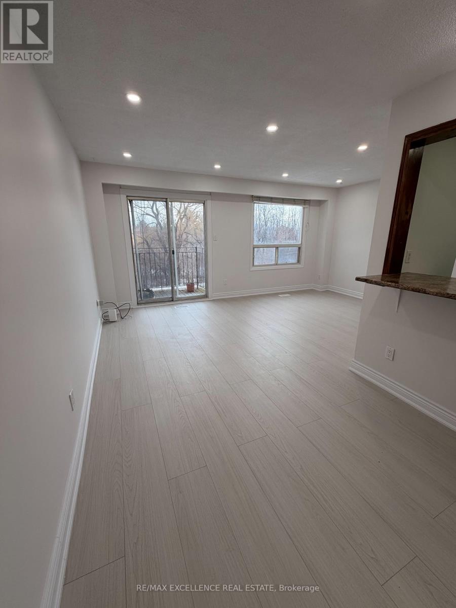 Welcome to this bright and well-kept 3-bedroom, 2.5-bathroom townhome backing onto a beautiful ravine lot. The main floor features a modern kitchen with a breakfast bar and an open living and dining area filled with natural light. Step out onto the balcony and enjoy peaceful views of Etobicoke Creek. All bathrooms have been recently renovated, and the entire home has been freshly painted, giving it a clean and updated feel. The lower level offers a finished recreation room, laundry area, and a 3-piece bathroom, with a walk-out to a private fenced backyard. A great home for anyone looking to enjoy nature while still being close to everyday amenities, schools and tranist. (id:64974)