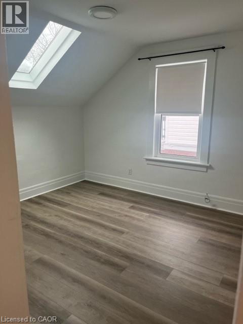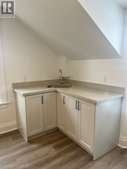 Beautifully renovated 2 bedroom upper unit in this legal non-conforming duplex, conveniently located in Downtown Kitchener! Completely updated with bright tasteful kitchen featuring granite counters and newer appliances, in suite laundry, new luxury vinyl plank flooring throughout (carpet free!), 2 bedrooms and living room with skylight. Updated 4 piece bathroom! Large covered front porch (exclusive use). 2 parking spots! Unfinished attic is great for additional storage space. Tenant pays hydro. Very conveniently located within walking distance to LRT and shopping. March 15 possession date available. Great for single young professional! Safe neighbourhood. (id:64974)