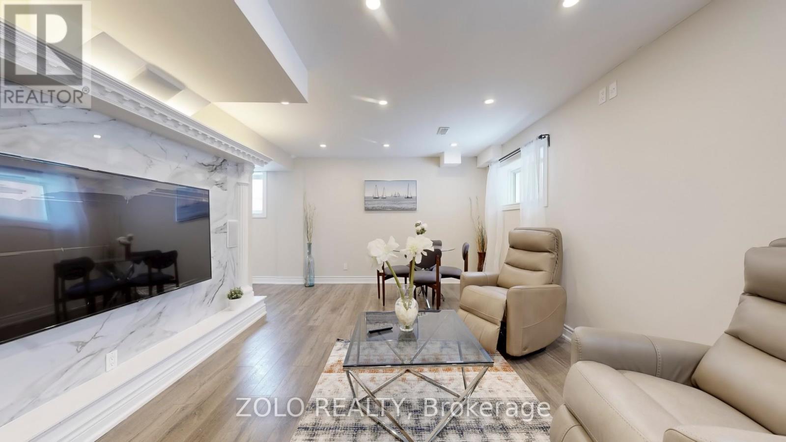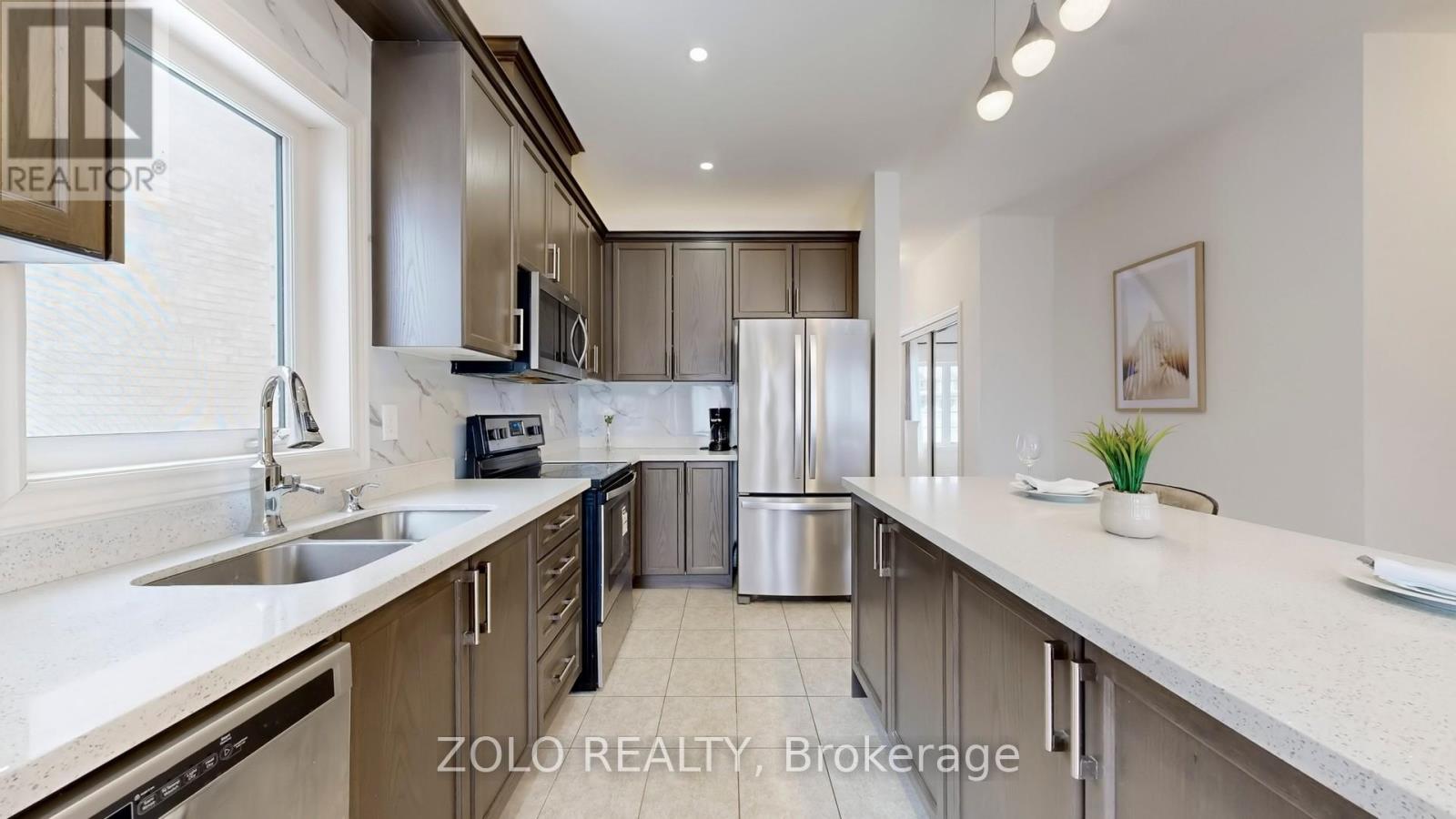 ***NEWLY RENOVATED***Situated on a premium pie-shaped lot, this stunning home offers nearly 3,000 sq. ft. of elegant living space. The sophisticated main floor features 9-ft ceilings, a bright open-concept layout, and a designer eat-in kitchen with quartz countertops, backsplash, a large center island, breakfast bar, and stylish lighting. The dining area walks out to a private deck and spacious backyard, perfect for entertaining, while the family room showcases a cozy gas fireplace surrounded by a state-of-the-art TV wall .Upstairs offers four generously sized bedrooms and convenient second-floor laundry. The custom-designed lookout basement with a separate entrance includes a full kitchen, fifth bedroom, 4-piece bath, second laundry, and a built-in sound system-ideal for extended family or income potential. Close to top-rated public and Catholic schools, parks, and everyday amenities. (id:64974)
