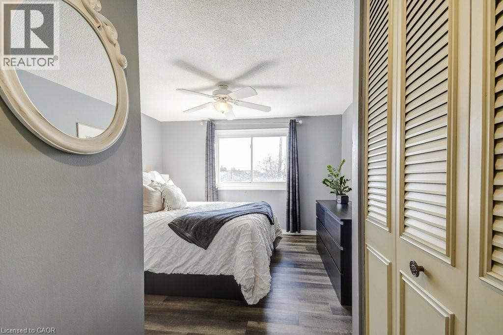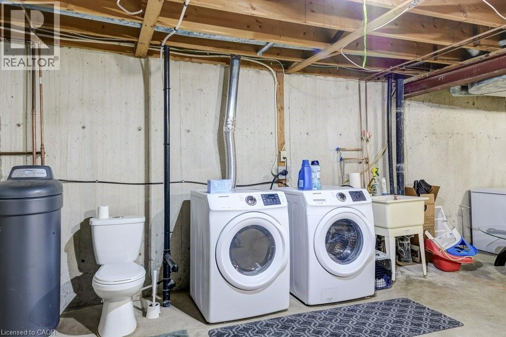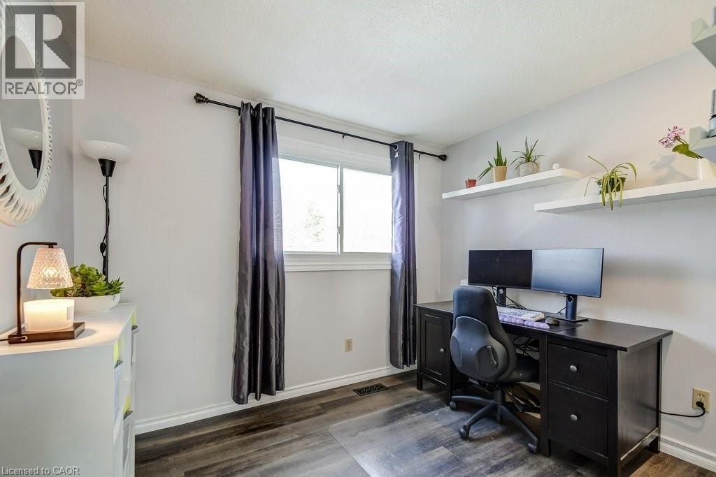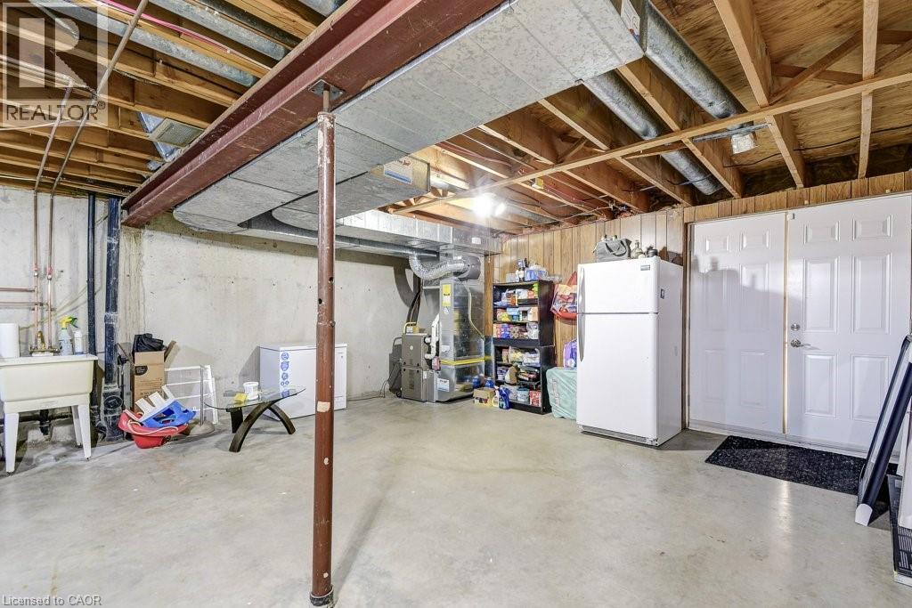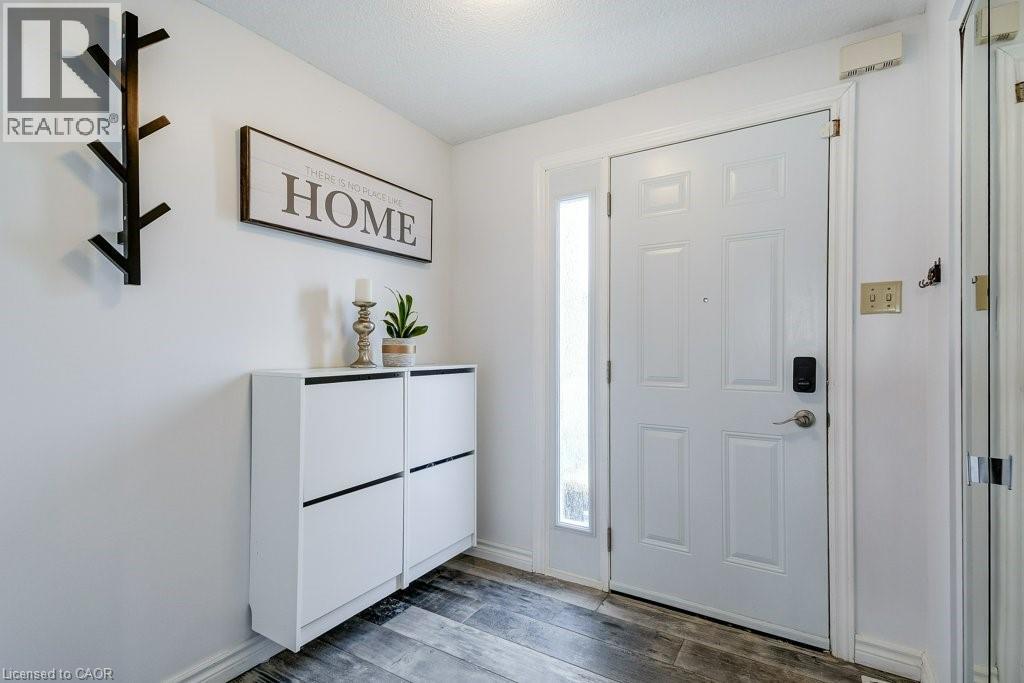Opportunity is knocking with no condo fees! This bright and inviting freehold townhome offers a spacious layout and vibrant interior - perfect for entertaining family and friends. You'll love the easy flow of the main level which comes complete with a generous living room as well as a dining area with a vaulted ceiling. The fully remodeled kitchen with crisp white cabinetry, additional pantry and stainless steel appliances make it both stylish and functional. Upstairs, you’ll find three good-sized bedrooms and an updated 4-piece bathroom. This home has been freshly painted throughout and features brand new vinyl flooring. A large unfinished walk-out basement offers an ideal blank canvas for future living space and includes a rough-in for a second bathroom. Step outside to a large partially fenced backyard perfect for kids to play or simply just relaxing in the sun. Two new sheds provide outside storage space. A beautifully stamped concrete front patio and a freshly paved driveway (2022) with carport accommodates up to three vehicles. Enjoy peace of mind with several recent upgrades, including a newer furnace, humidifier, and smart thermostat (2021), all with transferable warranties. Additionally, the home comes equipped with a Ring security system which will be staying with the house. Ideally located in a family friendly neighbourhood close to parks, shopping, schools, and is just minutes from Highway 401. This property is a fantastic opportunity you won’t want to miss. Book your showing today! (id:64974)