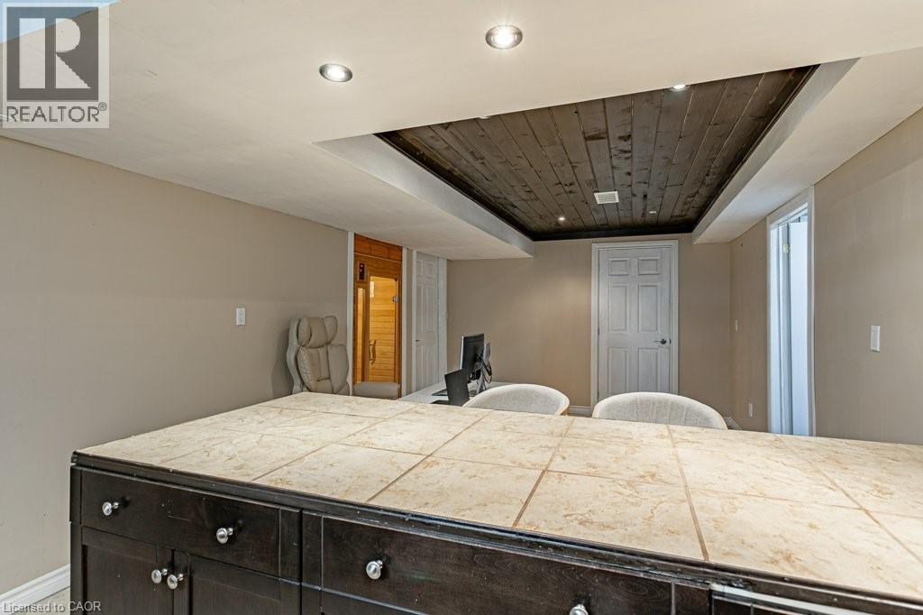Welcome to 42 Kerr Crescent, a meticulously maintained home built in 2007 in one of Ingersoll’s great neighborhoods. This residence features a thoughtfully designed main floor and a cozy family room, highlighted by a spacious kitchen complete with granite countertops, ceramic tile, dual pantries, and a bright dining area. The main level also hosts a primary retreat with a private ensuite, an additional well-appointed bedroom and bath, and the convenience of main-floor laundry. Designed for versatility, the fully finished lower level is ideal for an extended family, offering a large secondary family room, a bedroom , a 3-piece bath, a bar with potential to convert to full unit. Basement also has built-in sauna. Completing this home is an oversized 1.5-car garage featuring extensive wall-mounted cabinetry for superior organization. (id:64974)