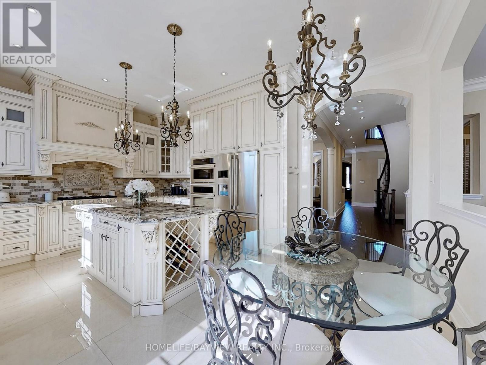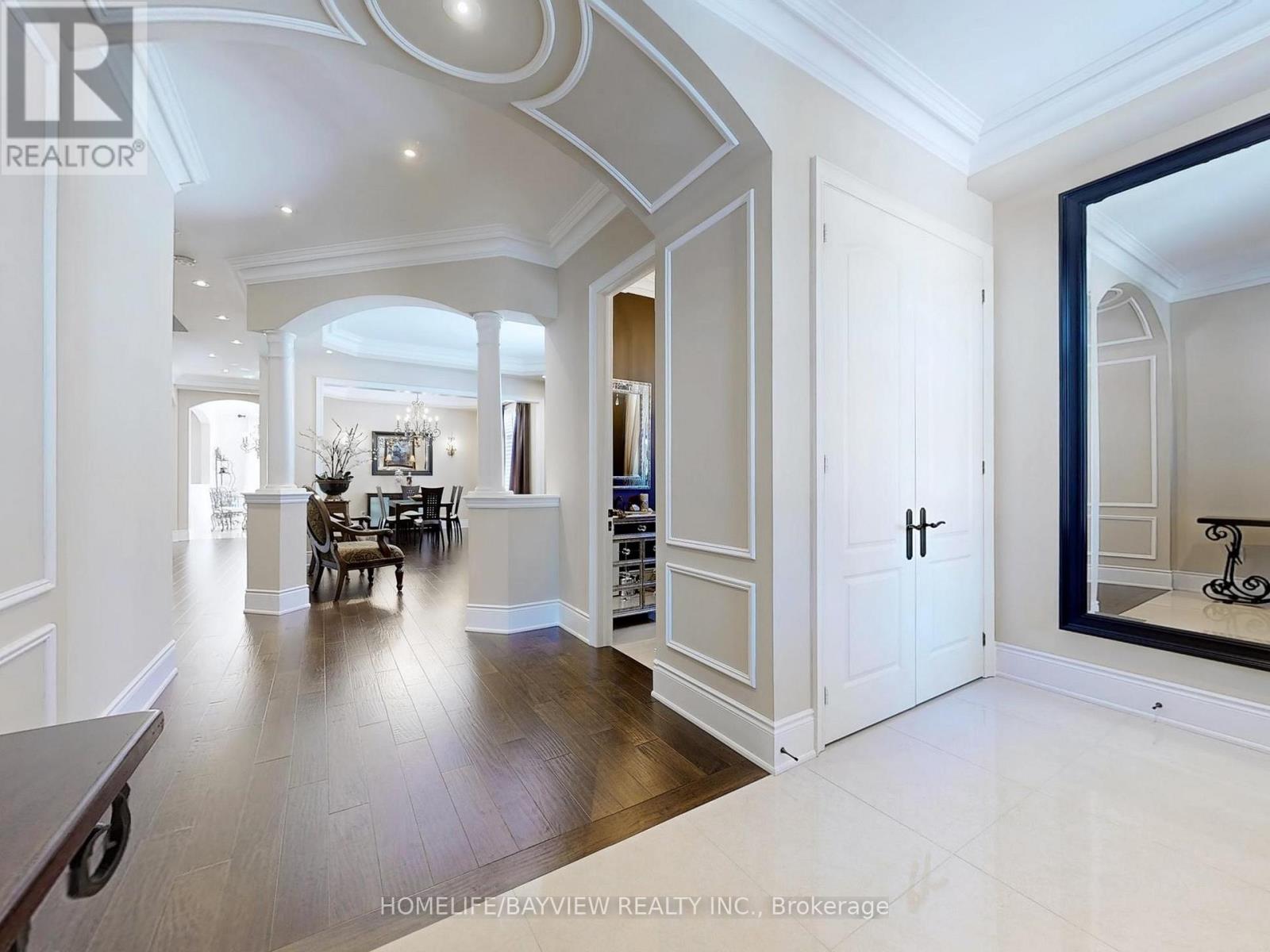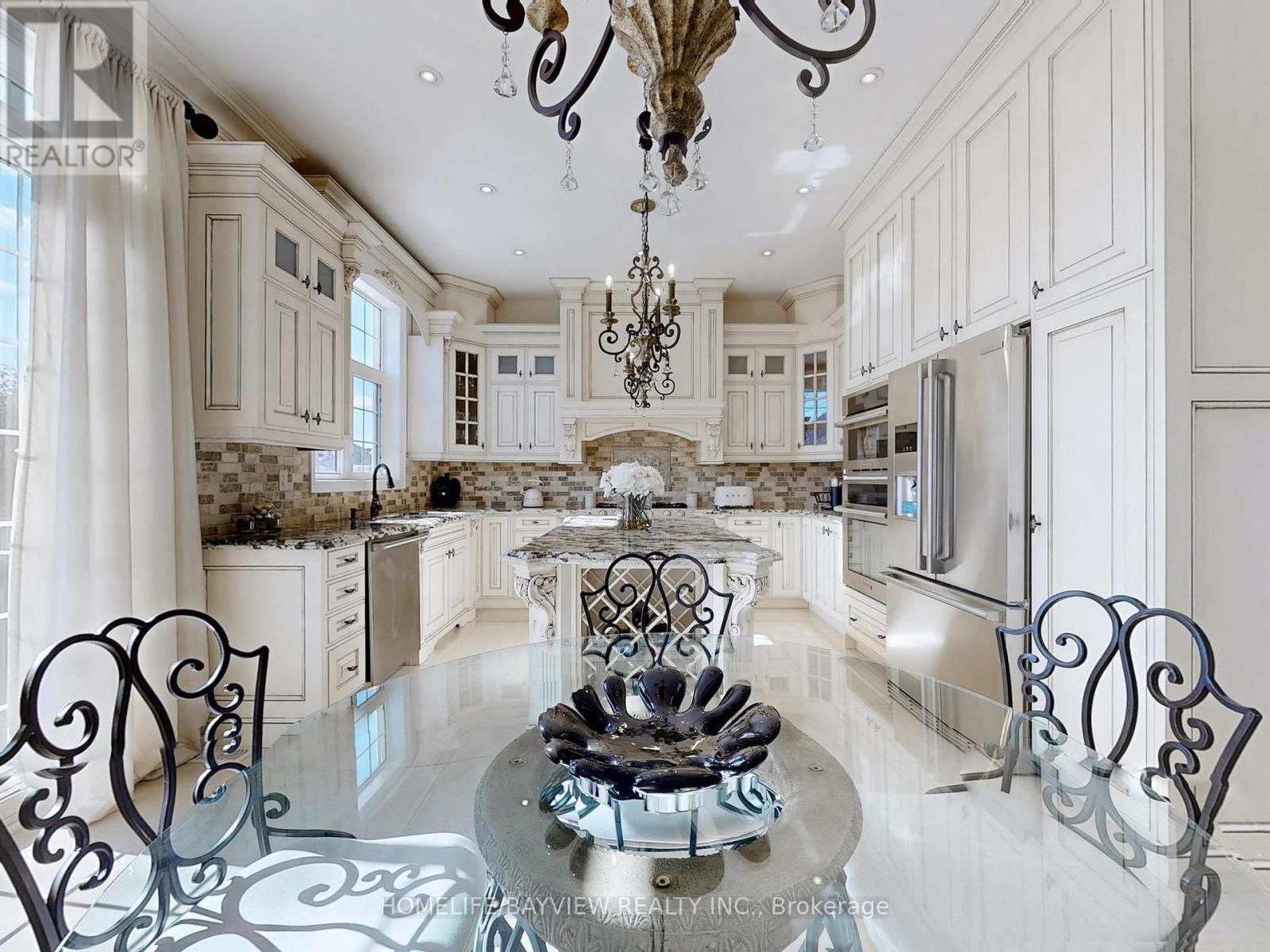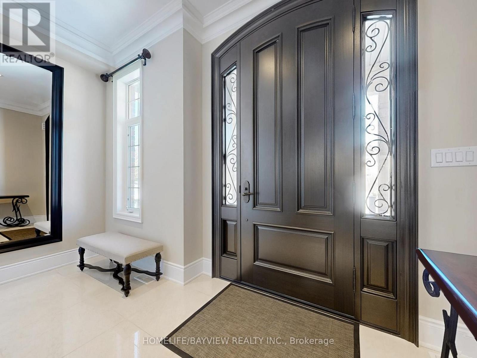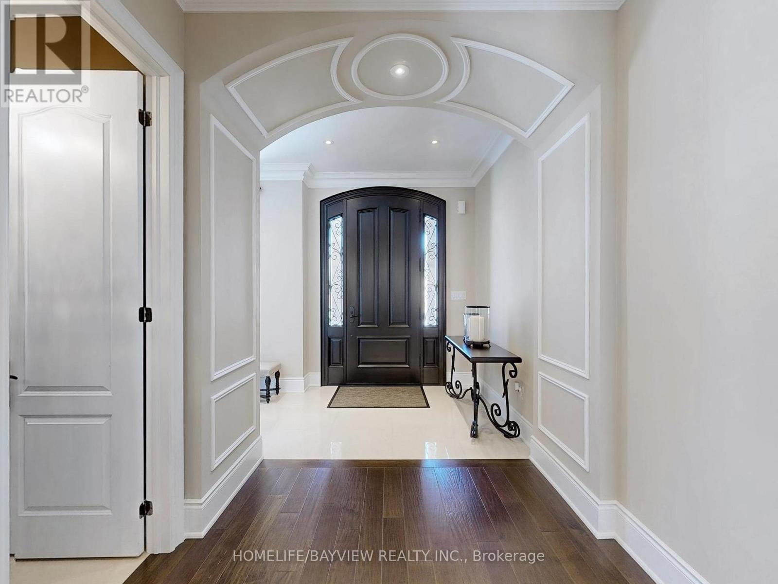 Welcome to this stunning luxury residence by Fernbrook Homes, beautifully nestled in the heart of the prestigious Upper Thornhill Estate on a premium lot surrounded by scenic parks and nature trails. The west side of the home faces a tranquil park and ravine with no neighbouring properties, offering rare privacy and peaceful natural views. This magnificent 5-bedroom home offers an exceptional blend of elegance, comfort, and thoughtful design.From the moment you enter, the home impresses with its grand proportions and elevated finishes. Soaring ceiling heights enhance the sense of space throughout, with 10-foot ceilings on the main floor and 9-foot ceilings on both the second level and basement. Exquisitely upgraded, the home features a custom solid wood front door, elegant tile flooring, engineered hand-scraped hardwood floors, crown mouldings throughout, and extensive pot lighting that adds warmth and sophistication to every room.The gourmet custom kitchen is the heart of the home, showcasing granite countertops, a designer backsplash, a large centre island, and quality finishes ideal for both everyday living and entertaining. Overlooking the main living area, the space is anchored by a striking gas fireplace with an upgraded mantel, creating a welcoming and stylish focal point for gatherings.A private main floor office with classic French doors offers the perfect work-from-home setting, blending functionality with timeless design. Upstairs, the generously sized bedrooms provide comfort and privacy, while the luxurious bathrooms feature custom cabinetry with granite and quartz countertops, delivering a spa-inspired atmosphere.The lower level offers exceptional future potential with a separate entrance, ideal for extended family living or customization. Situated in a coveted estate community close to nature, parks, and everyday amenities, this remarkable home delivers sophistication, space, and versatility. (id:64974)