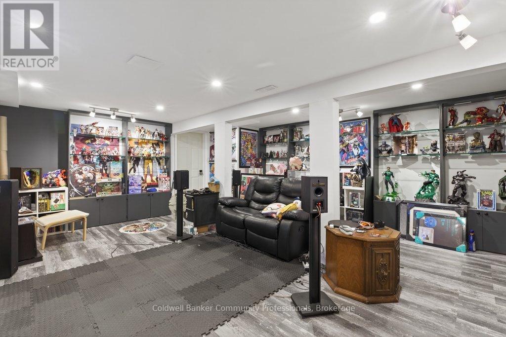 Quiet court setting. Spacious 3 level back split in desirable family friendly West Mountain location. Large living room and dining room, each with French doors. This family home features large eat in kitchen and has granite counters plus stainless steel appliances. Kitchen opens to large family room with walkout to generous yard. Family room level also features additional bedroom/office which was previously used as a kitchen. Plumbing has been retained behind the walls. 3 piece bathroom and further door to outside completes this level. Fireplace in family room has never been used by current owners and is "as is". The foyer with neutral ceramic tile leads to the oak staircase and features a skylight. The upper level is completed by a 5 piece bathroom and 3 bedrooms including master with oversized closet. Enter the lower level with a large tiled rec room, an oversized cold cellar plus a newer private "mancave". Updated furnace and air (2021), sliding patio door (2022). rear patio waterproofing (2023). Inside hall entry to 1 1/2 car garage. Driveway could easily accommodate 4+ cars. Perfect home location for you and your family to enjoy. (id:64974)