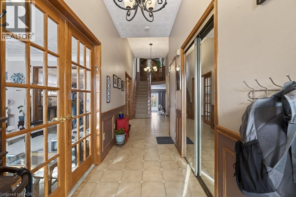 Quiet court setting. Spacious 3 level back split in desirable family friendly West Mountain location. Large living room and dining room, each with French doors. This family home features large eat in kitchen and has granite counters plus stainless steel appliances. Kitchen opens to large family room with walkout to generous yard. Family room level also features additional bedroom/office which was previously used as a kitchen. Plumbing has been retained behind the walls. 3 piece bathroom and further door to outside completes this level. Fireplace in family room has never been used by current owners and is “as is”. The foyer with neutral ceramic tile leads to the oak staircase and features a skylight. The upper level is completed by a 5 piece bathroom and 3 bedrooms including master with oversized closet. Enter the lower level with a large tiled rec room, an oversized cold cellar plus a newer private “mancave”. Updated furnace and air (2021), sliding patio door (2022). rear patio waterproofing (2023). Inside hall entry to 1½ car garage. Driveway could easily accommodate 4+ cars. Perfect home location for you and your family to enjoy. (id:64974)