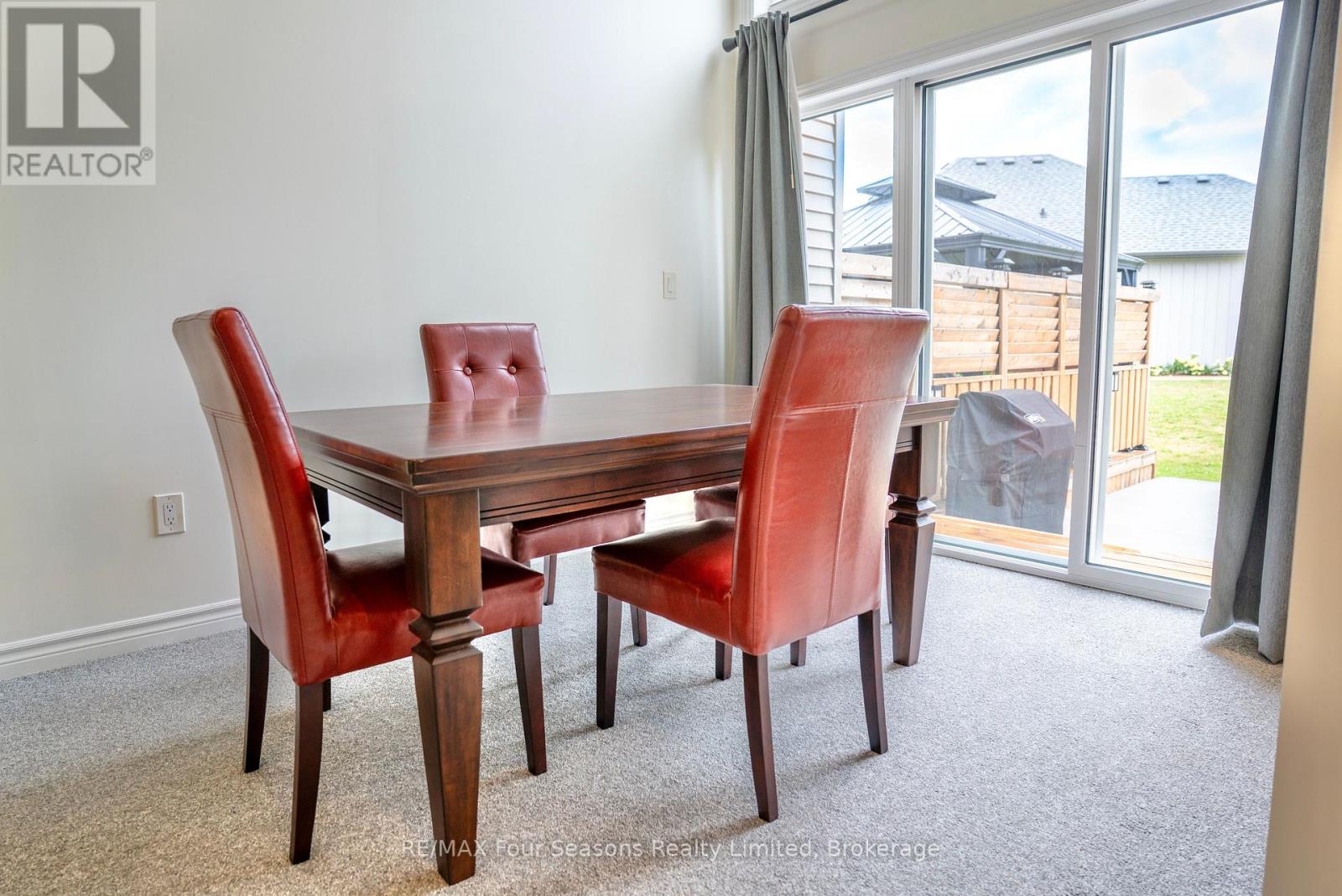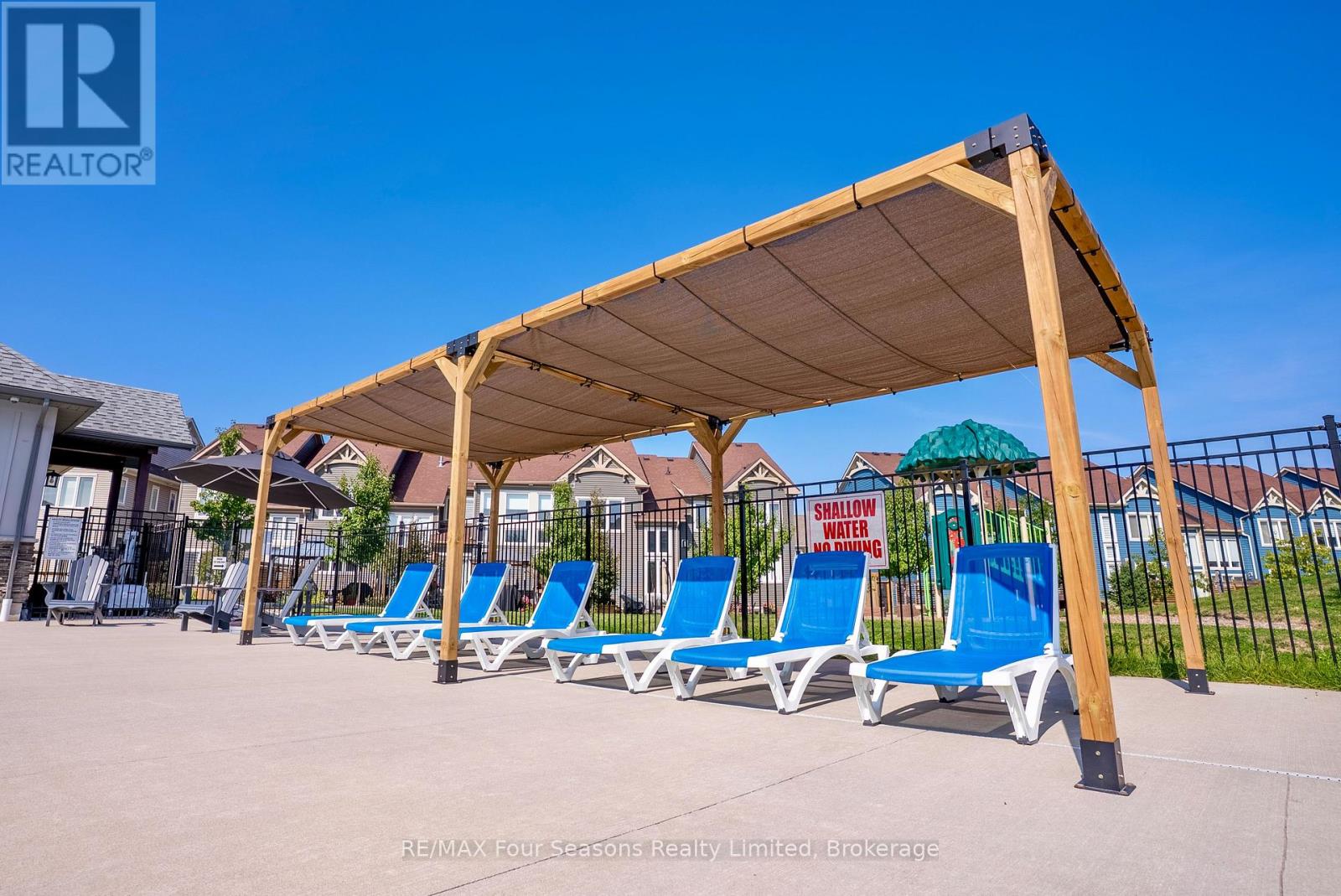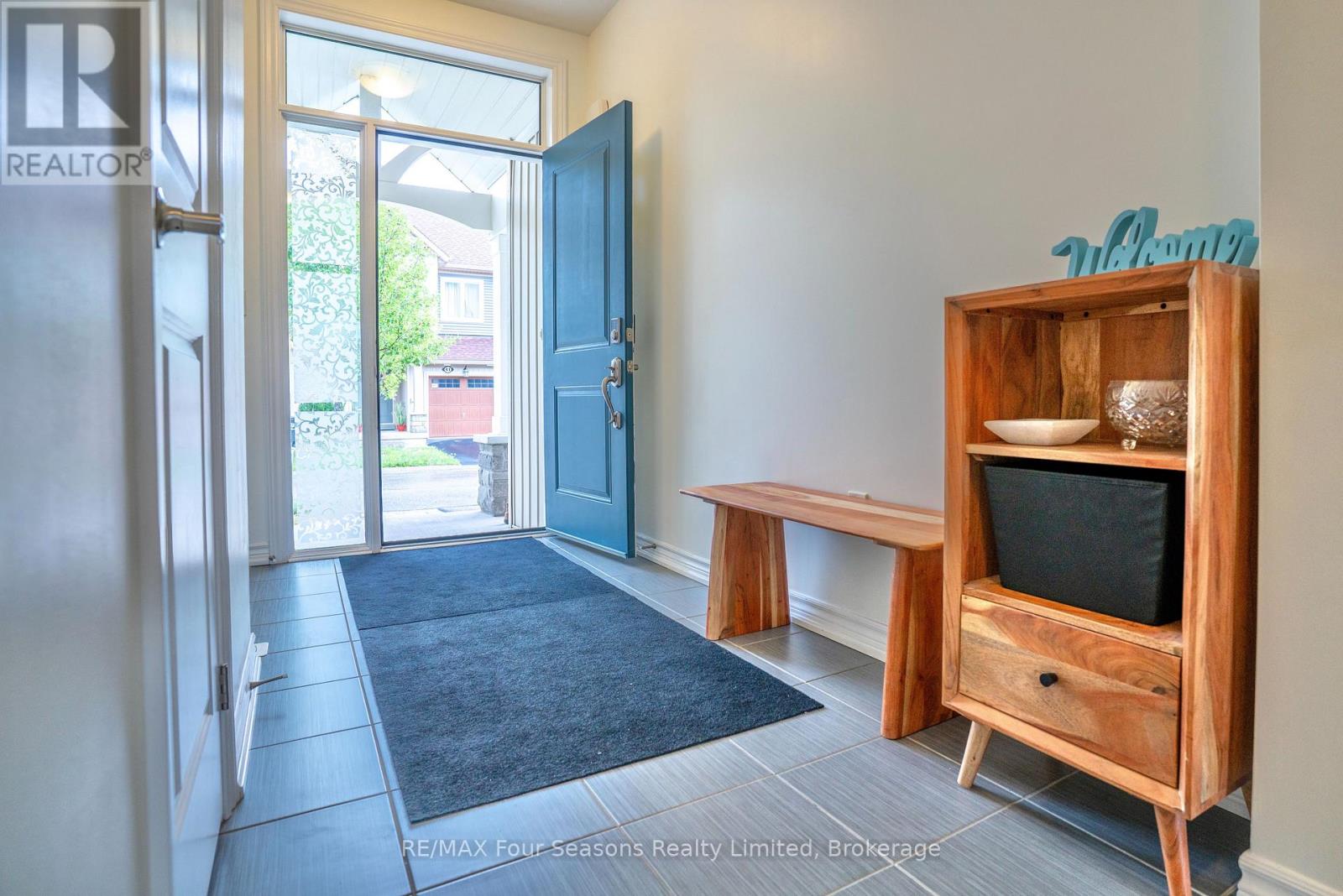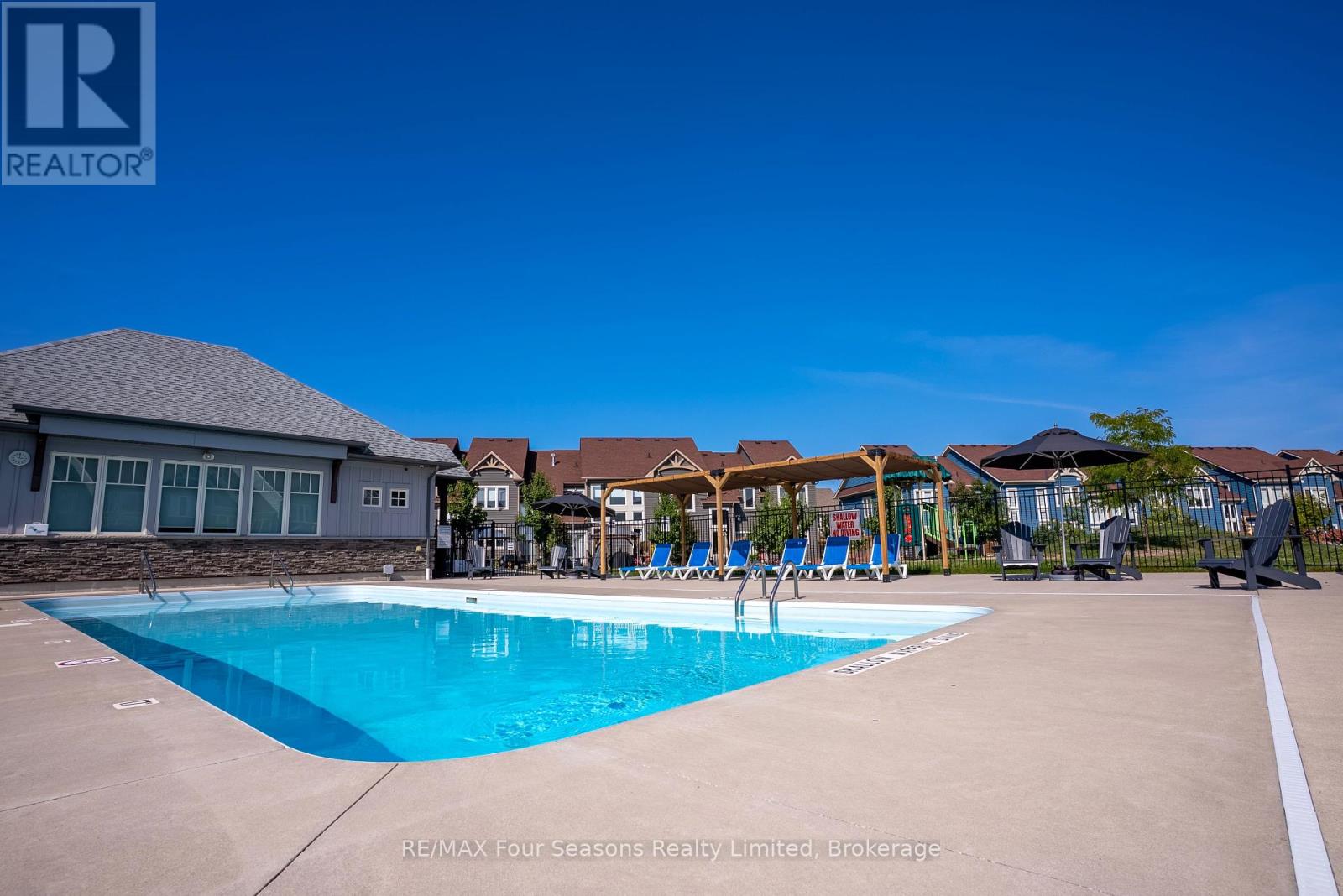 Price Drop! A fantastic opportunity to own a freehold townhouse in the Blue Fairway community conveniently located minutes away from downtown Collingwood and Blue Mountain. With 2 bedrooms and 2.5 bathrooms, this modern two-storey townhouse is perfect for a weekend vacation property or an older couple looking for a quiet and safe neighbourhood. The main entrance welcomes you with a covered porch that leads into a spacious foyer with lots of closet space, access to the attached garage and a powder room. Continuing on is the open concept kitchen and bright living room with vaulted ceilings and sliding doors to the backyard space. On the second level you will find the sizeable primary bedroom with a walk-in closet and a 4-piece ensuite offering lots of natural light. The additional bedroom is great for guests or office space with the second 4-piece bathroom ideally located next to it. You will also find the stackable washer and dryer neatly tucked away in a closet on the landing. The full size, unfinished, new framed basement presents lots of opportunity for additional storage or future living space with roughed-in plumbing already in place. Enjoy worry-free living by reaping the benefits of a townhouse that is only 7 years old with high-efficiency natural gas forced air, central air and remaining transferable Tarion warranty. This lot was originally sold as a premium lot due to its ideal location, situated just mere steps from the exclusive Blue Fairway gym, games room and the incredible heated outdoor pool. This prime location is also near the Cranberry trail and boardwalk, Cranberry golf course, White's Bay and so much more. If you are looking to live in a community that offers a sense of peace and tranquility, then this is the home for you. Update: Owners have installed beautiful new engineered white oak hardwood flooring to the entire main floor, pictures have been added to reflect this upgrade. (id:64974)