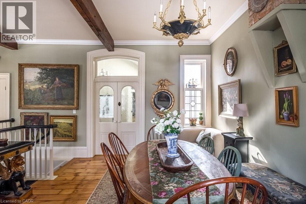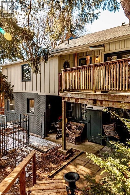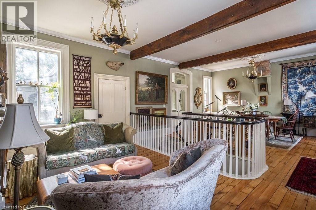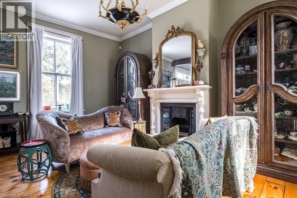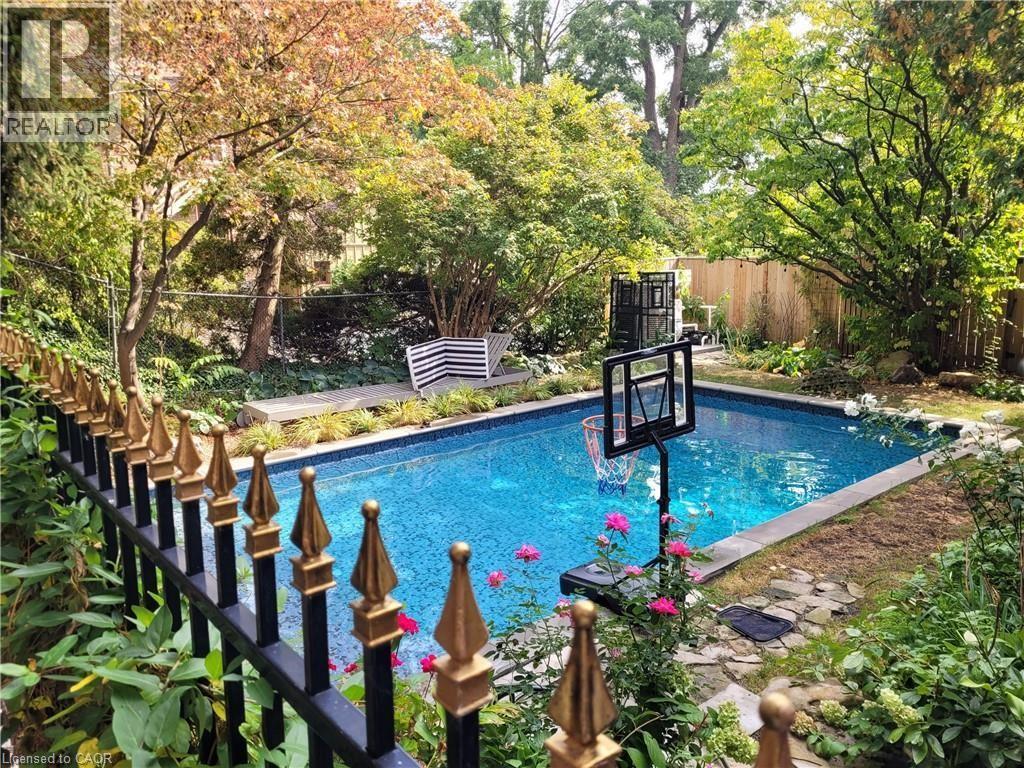 Dundas Dream! This circa 1880 character cottage known as, but not really a cottage, offers an impressive near 2500 sq ft of outstanding living space starting with the storybook curb appeal with gorgeous perennial landscaping, unassuming from street level, but wait 'til you see what it's like in the backyard with a full 2 stories in the rear! A choice locale where you're right in the heart of the Cross-Melville heritage district of downtown Dundas! Walkable to everything this bungalow has a private ‘forest’ on a 72’ double wide lot, featuring a sunken garden and inground heated saltwater pool surrounded by lush ferns, hostas, peonies, rose bushes, hydrangeas and Japanese grasses. This tardis of a home is much larger than it appears and its flexible layout is perfect for empty nesters and includes private space for another family member. Professionally transformed to a re-imagined layout and living space, stripped to the studs in 2023. New HVAC, wiring, footings, support beams and everything, plus the joy of staying inside to do your laundry!! Unique reverse bungalow layout with main level living and lower garden level bedrooms, all at or above grade. 4 beds and 4 baths (2 half). The primary has jack and jill 5-piece bath access & a large WIC. Another with custom built-ins w/ closet and desk. The remaining two bedrooms share a WIC in their own ‘wing’. Additional storage via a large custom hallway w/ built-ins featuring double closets and a bench with hooks. There’s even secret storage under the newly constructed, heritage style, staircase. This home is not to be missed. Loads of charm and character from rustic pine plank floors, salvaged brick floors from the old Grafton building, antique mantel with ornate cast iron insert, beamed ceilings, matching regency chandeliers imported from Chicago, and so much more. (id:64974)