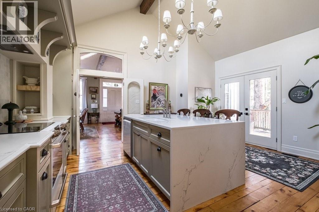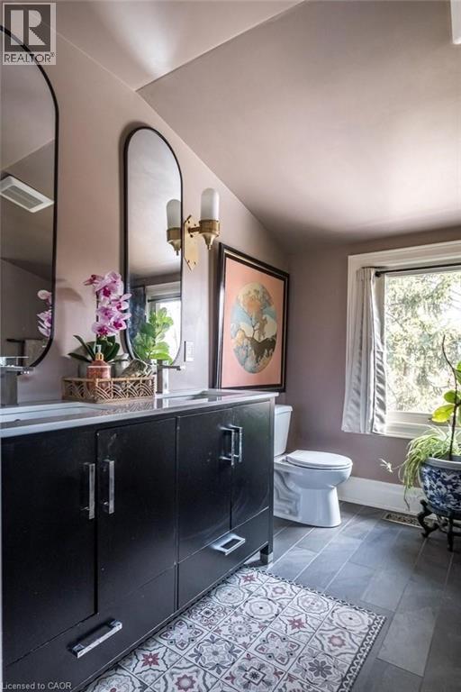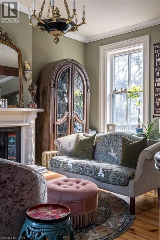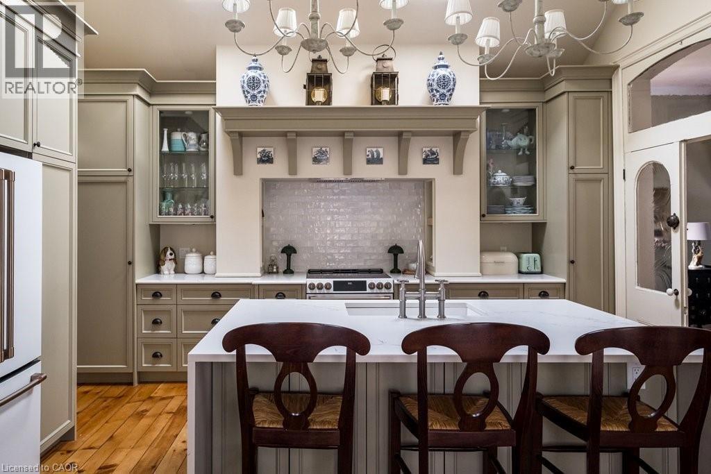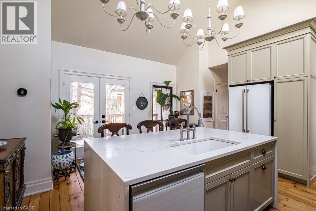 Dundas Dream! This circa 1880 character cottage known as, but not really a cottage, offers an impressive near 2500 sq ft of outstanding living space starting with the storybook curb appeal with gorgeous perennial landscaping, unassuming from street level, but wait 'til you see what it's like in the backyard with a full 2 stories in the rear! A choice locale where you're right in the heart of the Cross-Melville heritage district of downtown Dundas! Walkable to everything this bungalow has a private ‘forest’ on a 72’ double wide lot, featuring a sunken garden and inground heated saltwater pool surrounded by lush ferns, hostas, peonies, rose bushes, hydrangeas and Japanese grasses. This tardis of a home is much larger than it appears and its flexible layout is perfect for empty nesters and includes private space for another family member. Professionally transformed to a re-imagined layout and living space, stripped to the studs in 2023. New HVAC, wiring, footings, support beams and everything, plus the joy of staying inside to do your laundry!! Unique reverse bungalow layout with main level living and lower garden level bedrooms, all at or above grade. 4 beds and 4 baths (2 half). The primary has jack and jill 5-piece bath access & a large WIC. Another with custom built-ins w/ closet and desk. The remaining two bedrooms share a WIC in their own ‘wing’. Additional storage via a large custom hallway w/ built-ins featuring double closets and a bench with hooks. There’s even secret storage under the newly constructed, heritage style, staircase. This home is not to be missed. Loads of charm and character from rustic pine plank floors, salvaged brick floors from the old Grafton building, antique mantel with ornate cast iron insert, beamed ceilings, matching regency chandeliers imported from Chicago, and so much more. (id:64974)