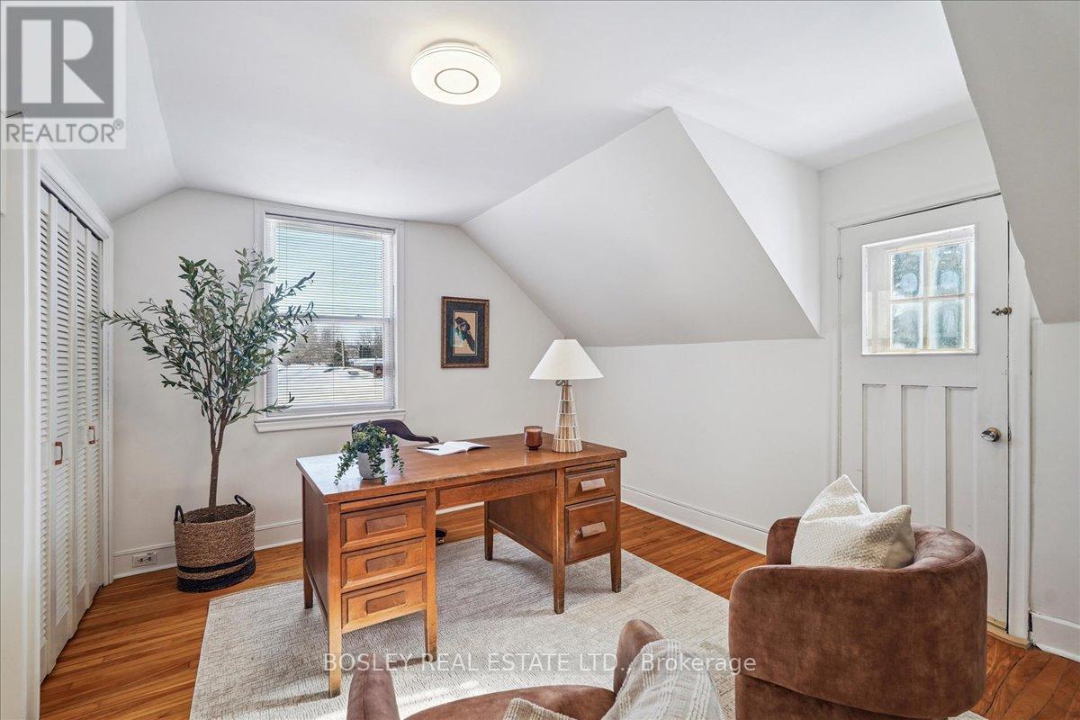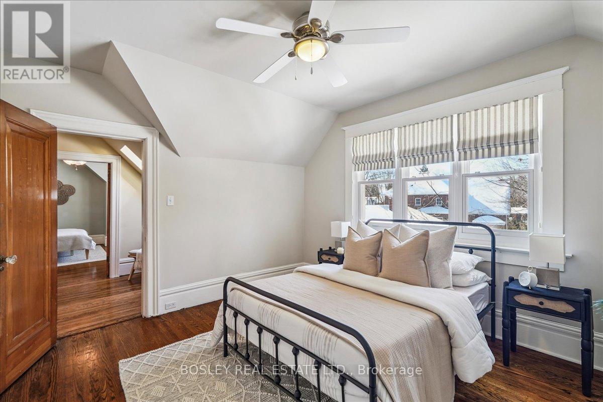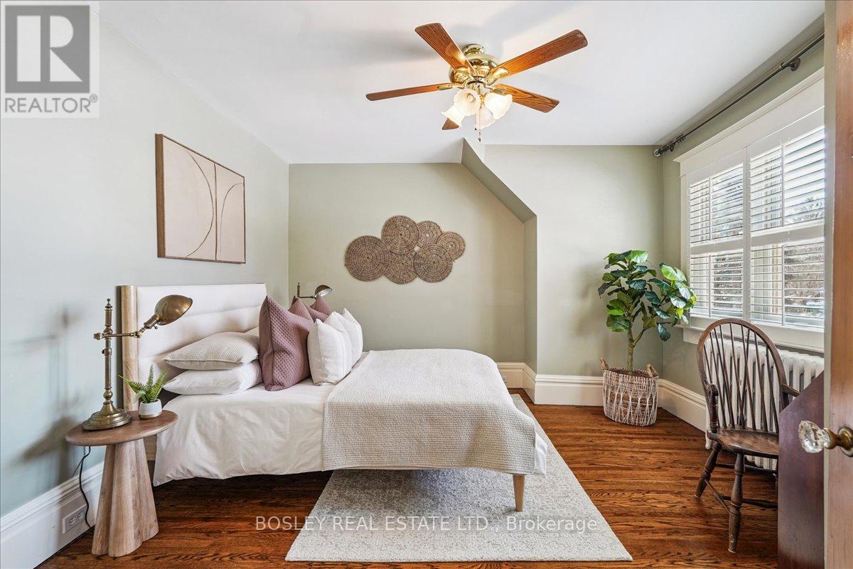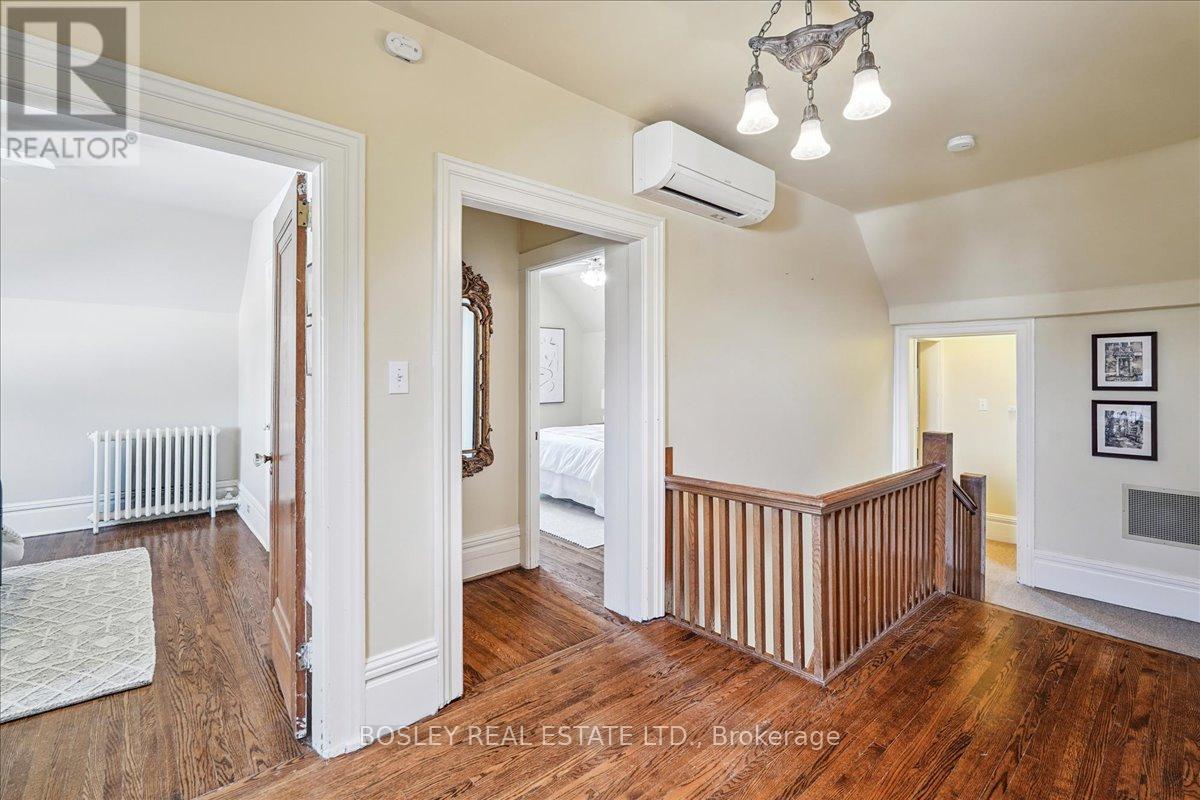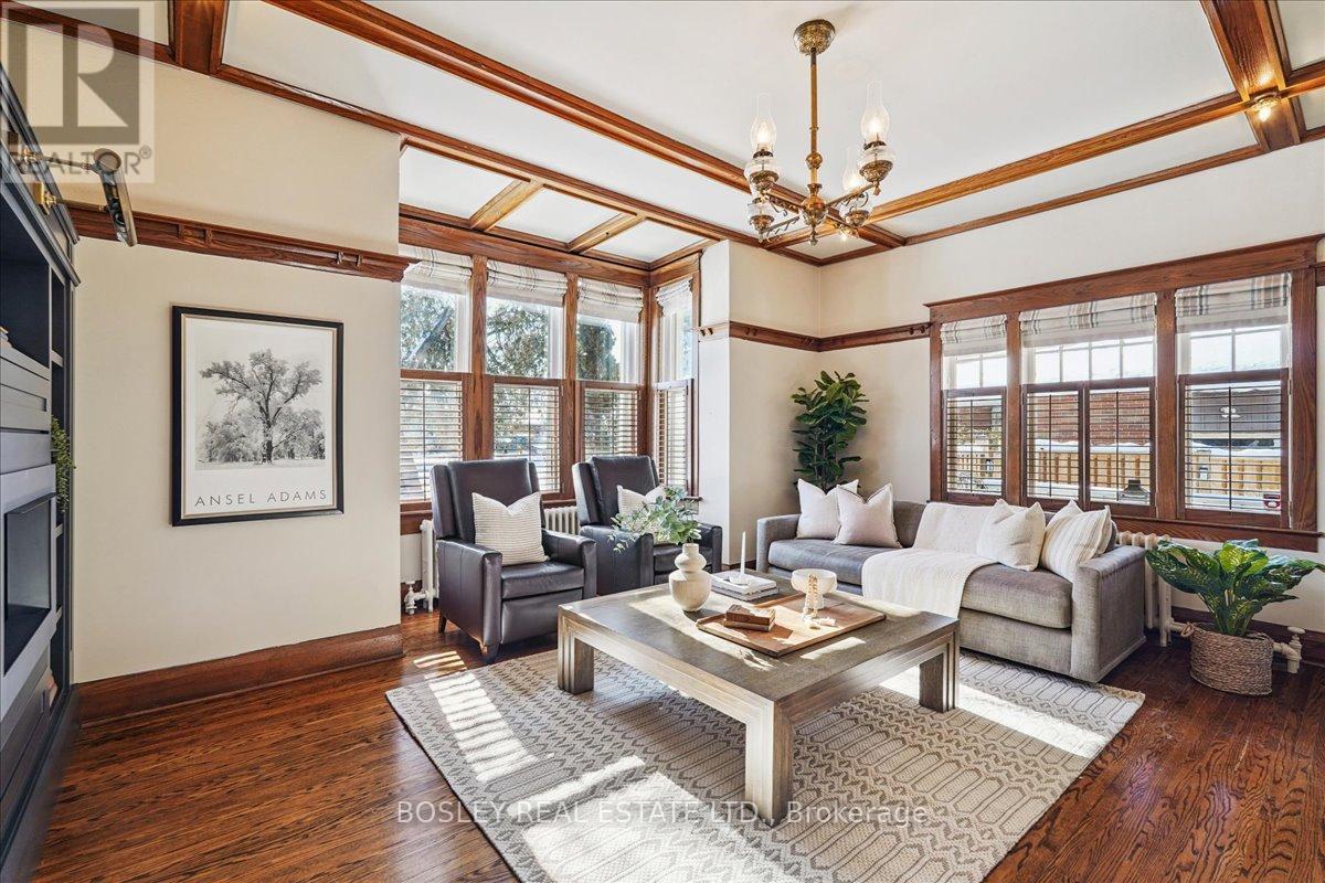 Provenance meets modern versatility! Historically known as the original "Cousins Farm House," this residence is situated on a rare, double wide 100 ft lot, offering presence and privacy. Spanning approximately 3,000 square feet, this 4 bdrm 3 bath home preserves its architectural integrity with original pine flooring in the farm style kitchen, high ceilings, intricate wood mouldings, expansive living and dining areas and a family room with coffered ceilings. The first of 3 bathrooms is centrally located, serving the main floor rooms with ease. The main floor boasts grand principal rooms, the second level features 4 bedrooms. The principal suite includes a renovated ensuite, while two generous secondary bedrooms are served by a central hall. A standout feature is the use of the second floor over the kitchen and garage; separated by a large hallway ideal for a home office or library this wing includes a 4th bedroom, full 4 piece bath, and laundry. This configuration offers exceptional privacy, making it perfect for a secluded primary retreat, nanny suite, or multi generational living. The exterior has meticulously manicured landscaping maintained by a local favourite garden centre. The backyard features an in-ground pool framed by mature trees and hedging, a side yard for pets or play, and a sauna accessed via the back path. Mature trees canopy the yard for a perfect balance of sun and shade, so those days in the pool with family and friends are idyllic. Practical needs are met with a double car garage, additional carport, and ample parking. The location offers a perfect balance of quiet residential life and urban convenience. Easy access to the GO Train makes for a seamless commute. Only steps away are premier parks, local boutique shops and terrific dining. Extensive green space & community amendments are just a short stroll from your front door. An opportunity to own a piece of local history in a prime, walkable location. PLS SEE VT FOR SUMMER PHOTOS OF BACKYA (id:64974)