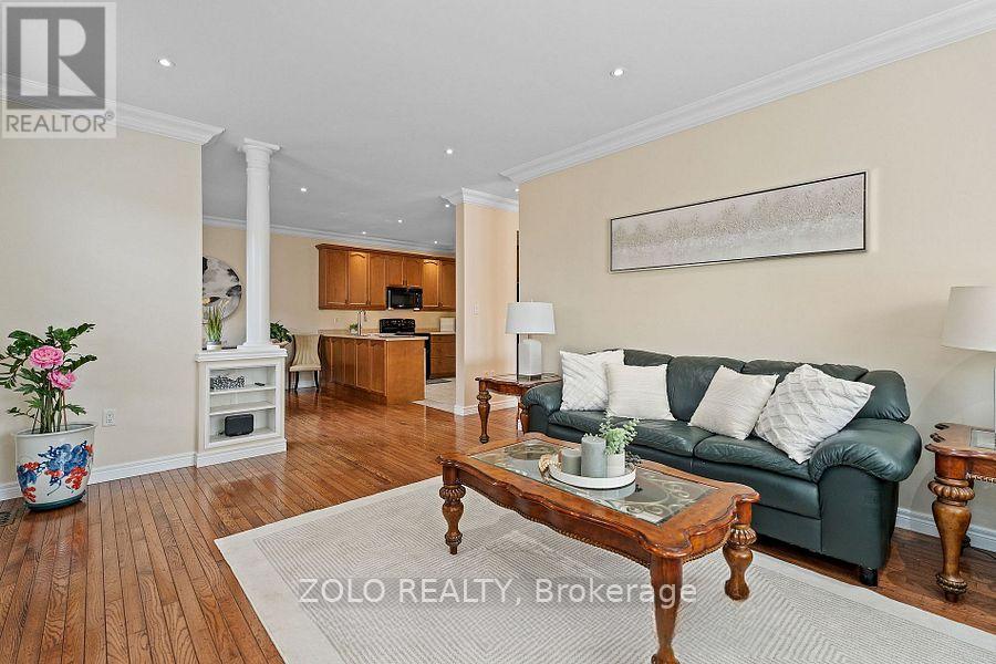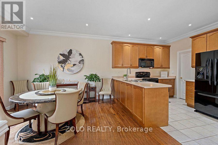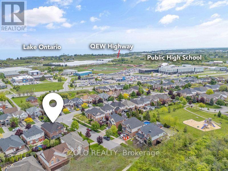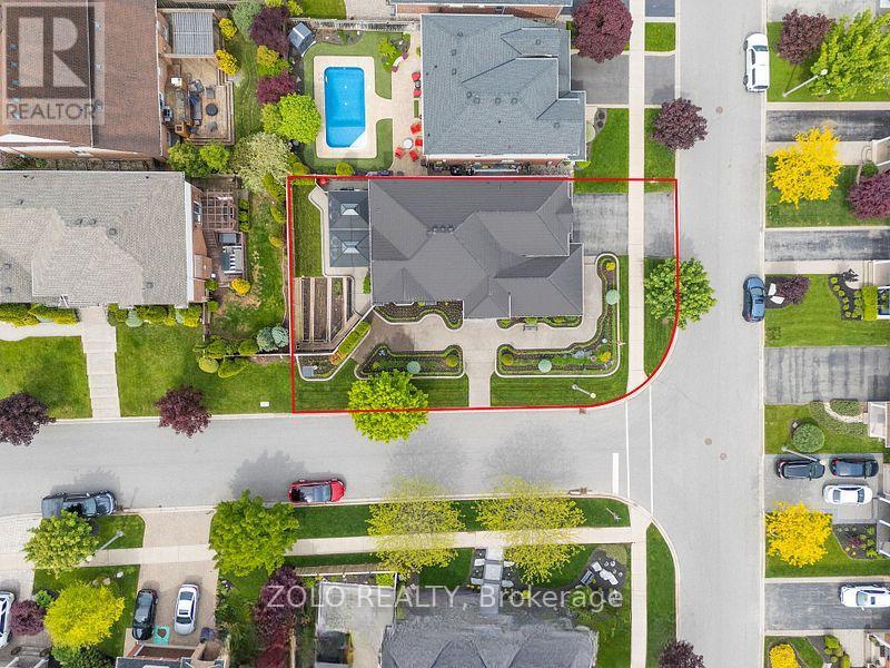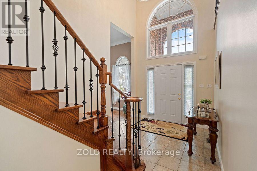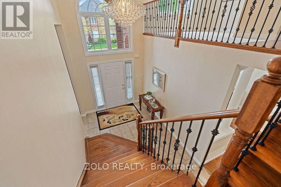 Located in the highly desirable Vineyard Valley neighborhood, this stunning 2-story built by the award-winning Marz Homes in 2004, offers over 4000 sqft of impressive living space. Greeted by a grand stone and brick facade, showcasing exceptional curb appeal with a charming wrap-around porch and beautifully landscaped stone flower beds. Step inside to discover an inviting foyer with soaring 18-ft ceilings and a striking crystal chandelier that sets a tone of sophistication. The great room features a 12-ft ceiling and oversized windows that flood the space with natural light. The rest of the main level boasts 9 ft ceilings, creating an airy and inviting atmosphere. Enjoy cozy evenings by the gas fireplace in the family room or host memorable dinners in the large formal dining room. The kitchen is equipped with a corner pantry. An adjoining breakfast area that flows into the living and onto the patio.Venture upstairs to find 3 generous bedrooms, each with a walk-in closet, and a bright loft that overlooks the foyer, which could easily be converted into a 4th bedroom. The primary bedroom features a vaulted ceiling, while the ensuite boasts double sinks, a corner tub, and a separate shower. A 2nd bath and a conveniently located laundry room complete the upper floor.The basement offers in-law potential with a separate entrance from the garage. It features a spacious rec room with a fireplace, a spare bedroom, and roughed-in bath and wet bar. Step outside to your private, fully fenced yard, which includes a double gazebo covered concrete patio, and a garden area perfect for relaxation.Freshly painted, central vac and 2018 steel roof from Metstar. This prime location provides easy access to farmers markets, Lake Ontario, and a wealth of parks and walking trails. Explore nearby restaurants and charming towns along the Niagara Escarpment. Families will appreciate the proximity to the YMCA, schools and hospitals, with a quick drive to downtown and just a minute to the QEW. (id:64974)