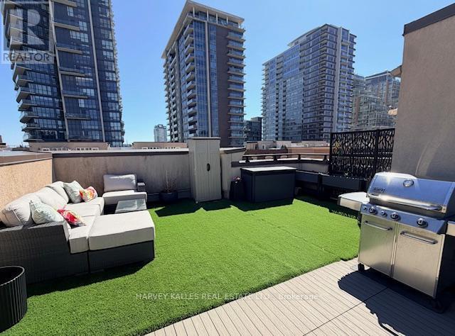 Absolutely stunning 3-Bedroom Plus Den, 3-Bathroom corner townhouse suite in Liberty Village! Rarely offered, sun-filled and the largest in the complex-boasting 1,524 sq. ft. of luxury living plus a 452 sq. ft. private terrace with breathtaking southeast city views. This exceptional suite features an open-concept kitchen with quartz countertops, stainless steel appliances, and a sleek glass backsplash. The living/dining area is bright and inviting, with large picture windows that fill the space with natural light. A den/office with French door entry offers a flexible space for work or study. Beautiful engineered hardwood floors and California shutters throughout create a warm and elegant atmosphere. All bedrooms are generously sized with custom closet organizers and picture windows. The expansive rooftop terrace is extremely private-perfect for entertaining or relaxing while enjoying sweeping city views. Ideally located near Exhibition Station and the Ontario Line, BMO Field, Budweiser Stage, parks, nature trails, shopping, and a variety of restaurants. Don't miss this opportunity to live in one of Toronto's most vibrant neighbourhoods! (id:64974)