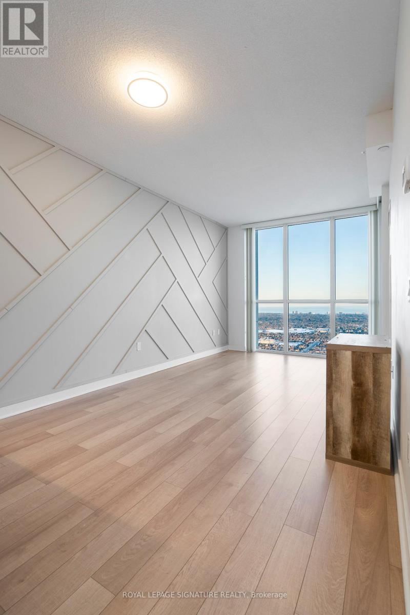 Experience the epitome of luxury living at one of Mississauga's most sought-after condominium towers. This stunning south-facing unit on a high floor boasts a clear, uninterrupted view of Lake Ontario and downtown Toronto, offering breathtaking sunrises and magical rainbows. With 668 square feet of living space plus a private 47sq balcony, this is the largest 1-bed + den layout in the building, designed to impress with its spacious open-concept floor plan, soaring 9-foot ceilings &floor-to-ceiling windows flooded by natural light. The unit features a spacious primary bedroom complete with his & hers closets, a modern kitchen adorned with granite countertops, under-mount lighting, and a private balcony with no adjacent neighbours perfect for enjoying serene sunsets in peace. The versatile den provides additional space that can easily be converted to suit your needs. Residents of this prestigious building enjoy access to world-class amenities, a luxurious salt water pool and EV stations. (id:64974)