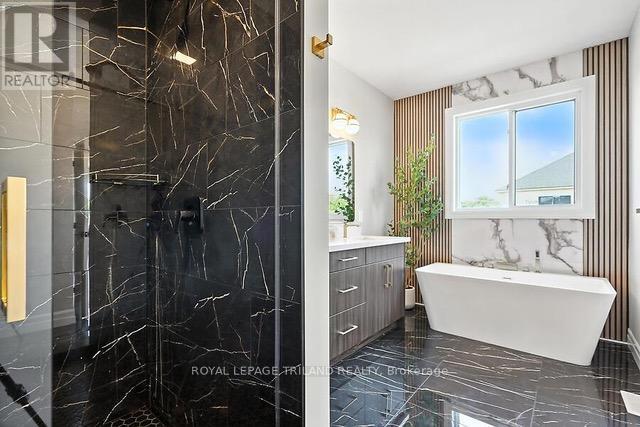 "SPECIAL MORTGAGE PROMOTION" - Rates as LOW as 2.89% for a 3 Year Term!! (for qualified buyers) FABULOUS MODEL HOME FOR SALE Located in London's Newer "LIBERTY CROSSING" situated in the COVETED SOUTH! This Unique Model known as the " EVERGREEN 11" features Over 4,000 Sq Ft of Quality Finishes on all 3 Levels! 9 FT Ceilings on ALL Levels - Attractive engineered hardwood throughout- Beautiful Oak Staircase-Spacious Kitchen with large walk-in pantry ready to be set up as a "Messy Kitchen" if desired. - 4 + 2 Bedrooms - 5 FULL Bathrooms - Main Floor Den (or bedroom) - Lower Level features Fully Finished Suite with 2 bedrooms, Kitchenette, Living room, 4 Pc bathroom, Laundry room+++Convenient Separate Side Entrance. The Evergreen II stands out with its contemporary design and neutral colour palette, delivering timeless curb appeal. The striking exterior, featuring a blend of stone, stucco, and wood accents, sets the tone for the sophisticated finishes inside. Large windows flood the spacious interiors with abundant natural light. Located on a premium corner lot, this home offers both privacy and convenience, with easy access to Highway 401, making commuting and city exploration a breeze. Situated in the vibrant Liberty Crossing community, this two-storey residence is thoughtfully designed for today's discerning homeowner, blending style, comfort, and functionality. Close to Several Popular Amenities. Must be seen to be appreciated. Experience the Difference and Quality Built By: WILLOW BRIDGE HOMES (id:64974)