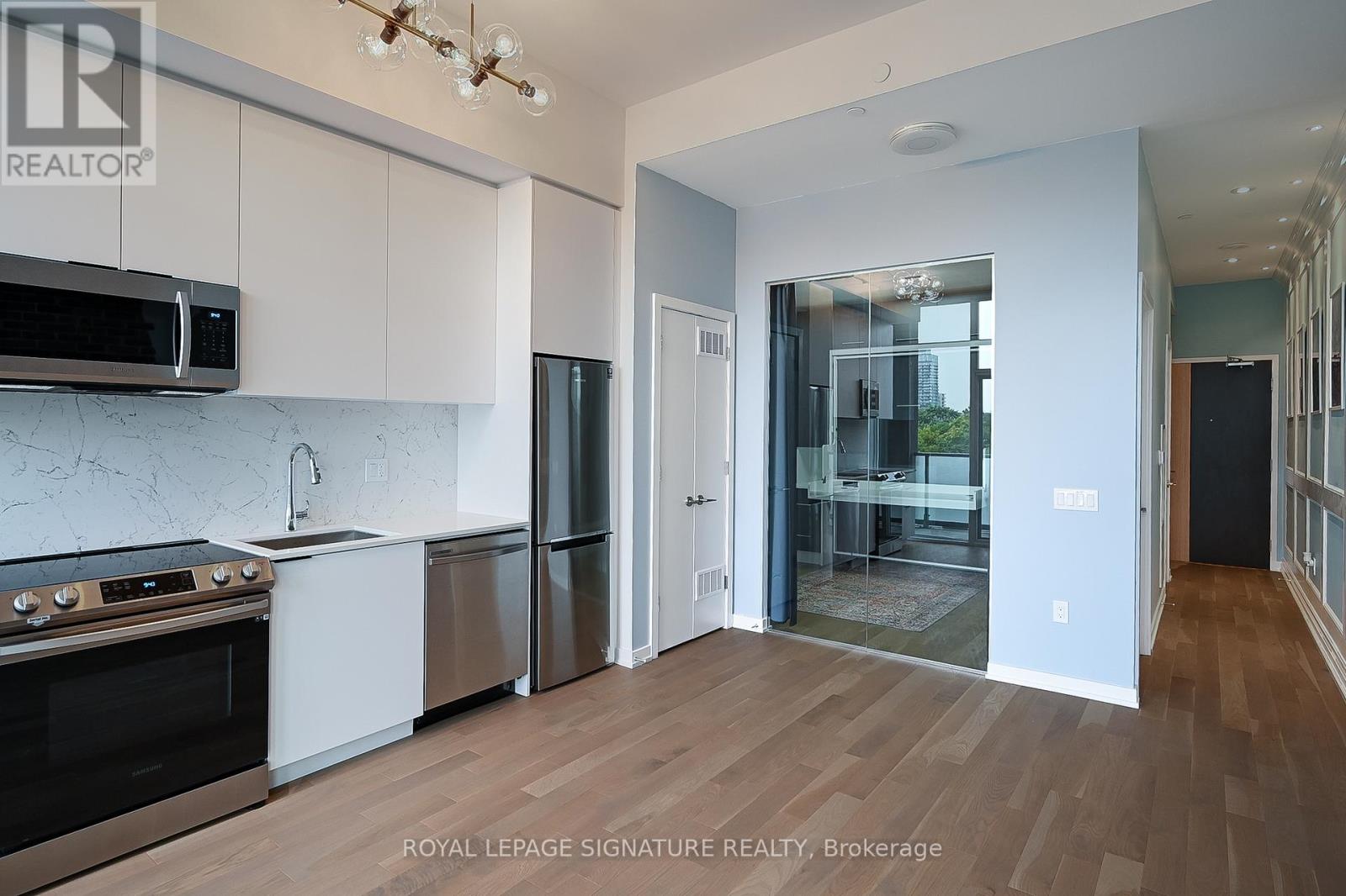 Stylish 1-Bedroom Loft style condo for Lease in Toronto's Vibrant East End Minutes from the Historical Distillery District!Looking for a unique and modern space to call home? This beautifully updated1-bedroom suite is packed with character and charm perfect for urban professionals, creatives, or anyone craving a cool city vibe.Soaring 10'+ ceilings, an exposed brick feature wall, an open-concept layout gives this suite serious loft-style appeal. The sleek kitchen includes tall custom cabinets,quartz countertops, and a matching backsplash ideal for cooking or entertaining.The primary bedroom features a custom-built Murphy bed with a fold-down work desk, offering smart use of space and flexibility.Step outside to your own private balcony for morning coffee or a quiet evening to unwind. Just steps to the Distillery District, TTC transit, dog park, cafes, and shops.Quick access to the Gardiner Expressway and DVP, and only minutes to Leslieville And the iconic St. Lawrence Market. Don't miss this rare opportunity to lease a one-of-a-kind suite in one of Toronto's most dynamic Neighborhoods! (id:64974)