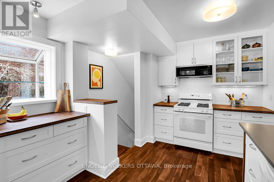 Behind the solid wood door, you will find a three-storey residence offering an expansive layout-ideal for growing families, professionals, or investors seeking a prime location near the city's core. Welcome to 421 Chapel St, an impressively spacious semi-detached home nestled in the heart of Sandy Hill, one of Ottawa's most vibrant neighbourhoods. A gracious entryway is the perfect place to greet guests, flowing into a large living room accompanied by an alluring leaded glass bay window that leads you into a formal dining room; ready for entertaining. A significant 2013 addition introduced a sun-filled family room with a focal gas fireplace, custom work station overlooking the rear yard, and functional powder room (also providing additional storage via basement foundation). Updated kitchen with quartz counters, breakfast bar, and smart storage. The second floor hosts three well-sized bedrooms and a lovely four-piece bath, while the third floor serves as a private penthouse retreat with a spacious bedroom, ensuite and the most gorgeous light. Steps from Strathcona Park and Annie Pootoogook Park, and minutes from the boutique shops and dining of the ByWard Market. Just a 10-minute walk to the Starbucks patio or Anytime Fitness. Excellent access to the uOttawa O-Train station and major bus routes. Re-insulated knee-walls, attic, and exterior west wall (2013). (id:64974)