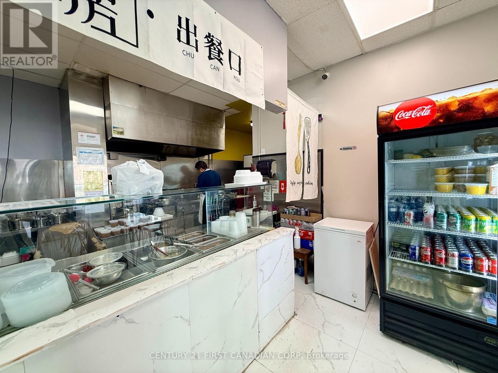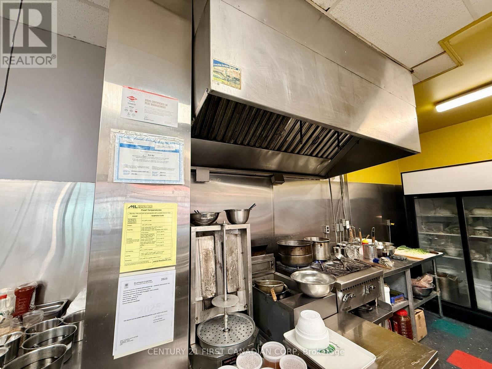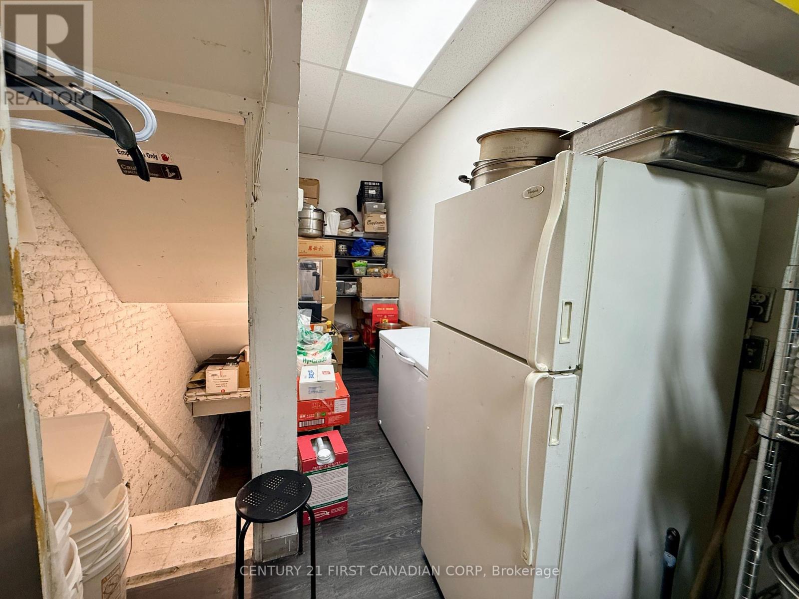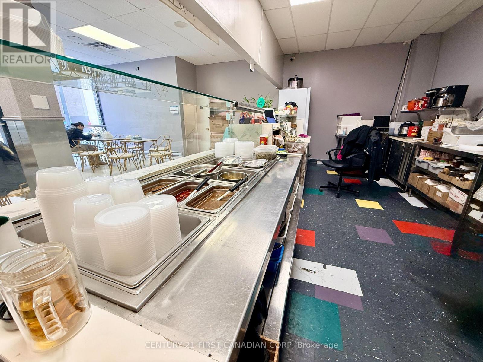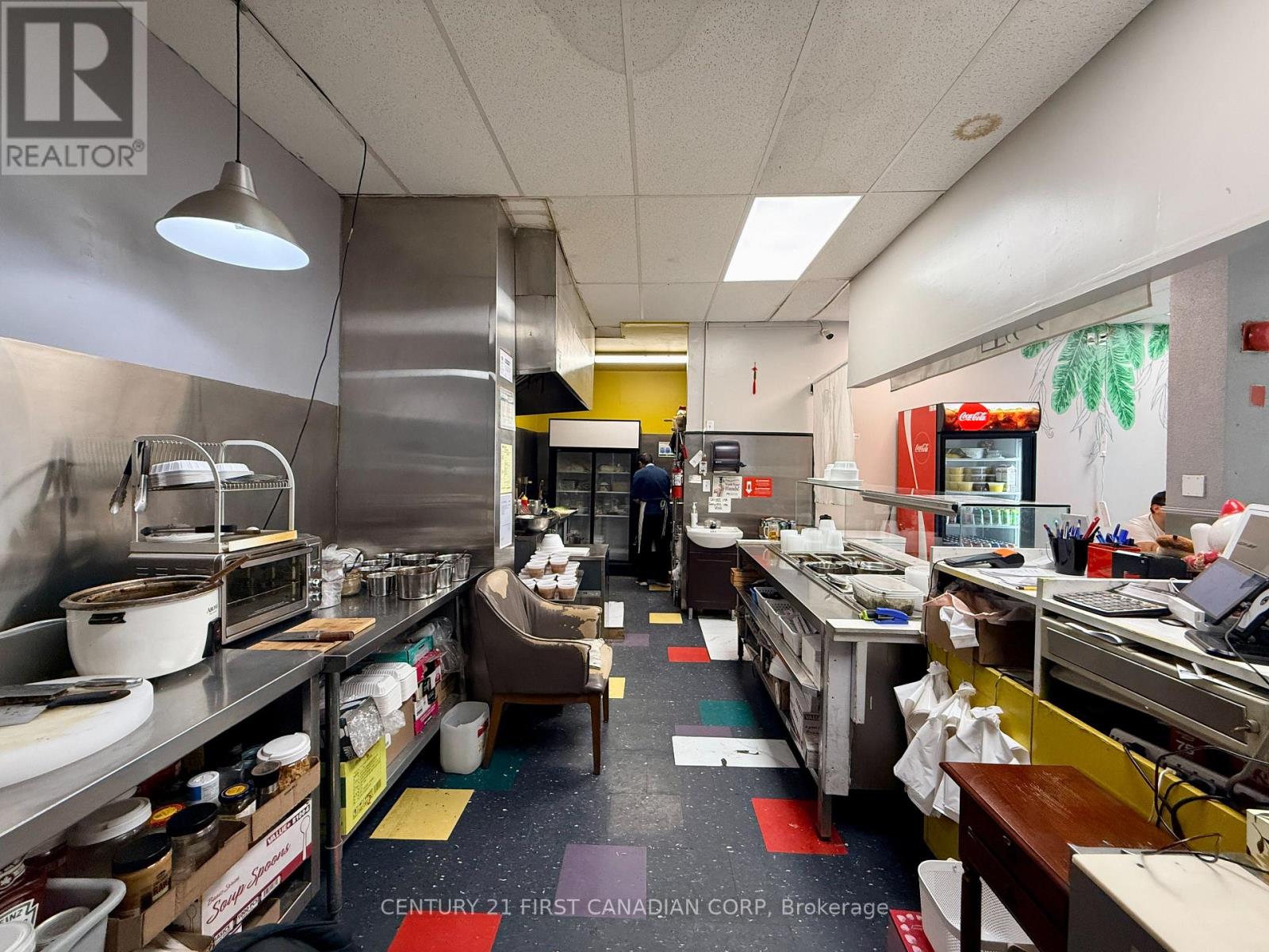 Very rare opportunity on Richmond Row! This turnkey restaurant located in a prime area with high pedestrian traffic, the property benefits from a bus stop right at the front door and close proximity to Fanshawe College, bringing consistent activity and visibility.The owner has spared no expense in designing and building out this premier location, making it completely move-in ready and eliminating the usual setup headaches. Features include a newer hood system (2019), updated appliances, newer electrical system and newer furniture throughout.With low gross rent of $2,500 and convenient 2-hour free street parking on weekends, this space is ideally positioned across from Scotiabank and close to Citi Plaza and London Music Hall, attracting steady daily traffic. 25 seats. Above ground size of 851 sqft. Partially finished basement for more storage space and 2 bathrooms. Don't miss this rare opportunity to own a fully equipped restaurant in one of the city's busiest corridors (id:64974)
