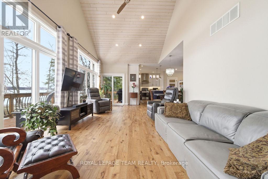 Welcome to the kind of waterfront property that rarely comes to market-where a custom-built home meets one of the most coveted shorelines on Kamaniskeg Lake. Set on a southwest-facing lot just south of Barry's Bay, this 2021 custom build by Quality Homes captures all-day sun, breathtaking sunsets, and a true resort-style setting that feels like a private escape from the moment you arrive. What truly sets this property apart is the exceptional sugar sand beach with a gradual, family-friendly entry-a rare and highly sought-after feature on Kamaniskeg Lake! Whether you're swimming, launching a kayak, or watching the sun dip below the water, this shoreline delivers the kind of lifestyle buyers are searching for but seldom find. The home itself offers a refined, thoughtfully designed one level interior with 3 bedrooms and 2 bathrooms, including a main floor primary suite complete with walk-in closet and private ensuite. A dream custom kitchen with lake views while you cook on the gas stove, gleaming countertops and refined cabinets are chef's kiss. Clean lines, natural light, and a warm, tasteful aesthetic create a space that is both modern and inviting-perfect for year-round living or a luxurious waterfront retreat. Outdoors, the property continues to impress with a lake side 52 foot deck with access to living room and primary bedroom, a detached garage and attached carport offering covered parking for two vehicles, along with ample additional space for guests and recreational equipment. Located on one of the most desirable lakes in the Ottawa Valley, this property offers easy access to Barry's Bay, 90+ km of boating, and a lifestyle defined by water, privacy, and natural beauty. Imagine leaving your home, and spending the day exploring, dining at a boat up beach bar, discovering hidden coves, and fishing in waters known for exceptional sportfish. If you've been waiting for the perfect combination of custom construction, premium waterfront, and a true beach-this is it. (id:64974)