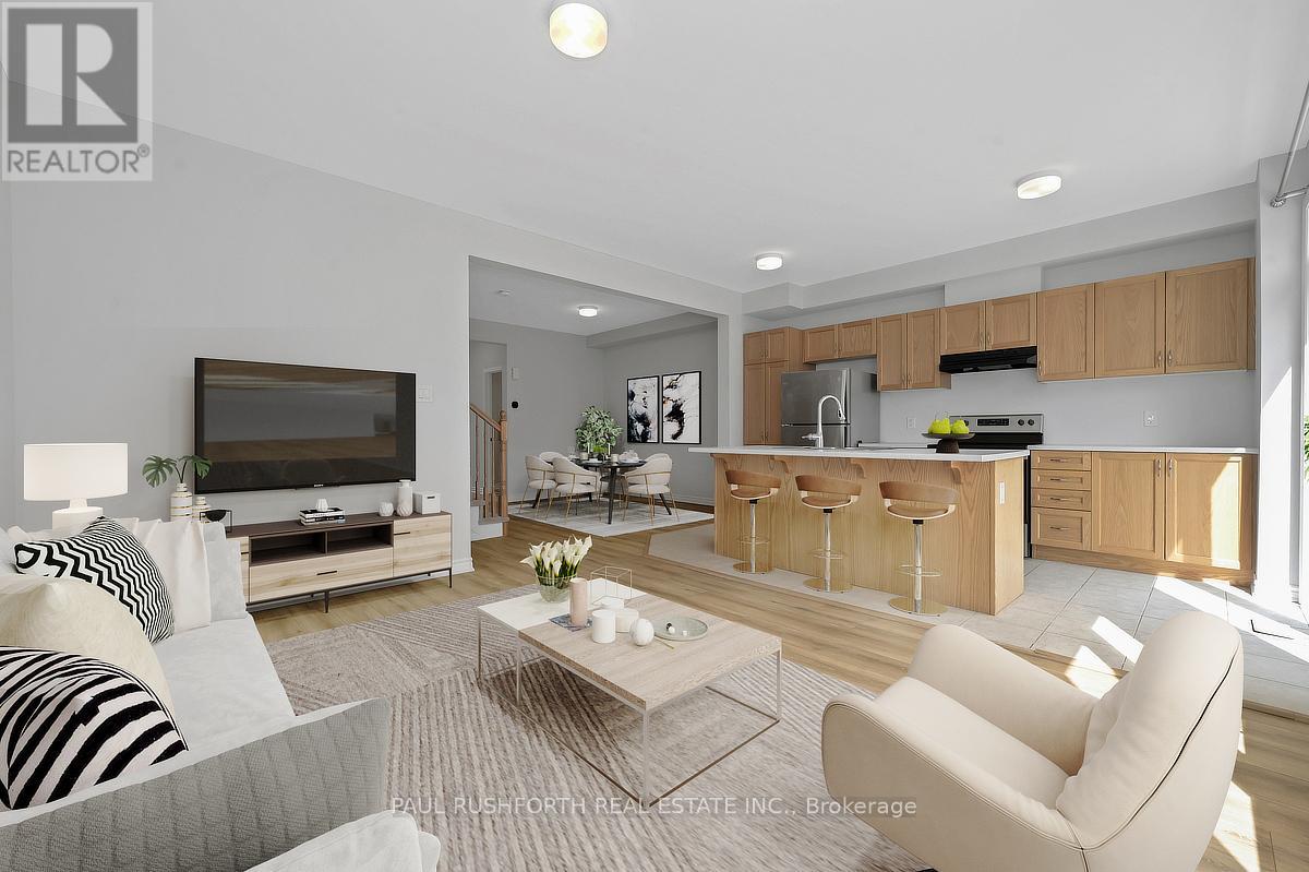 VACANT and MOVE IN READY. A STUNNING HOME. Built in 2021. 3 bedroom, 2.5 bathroom TOWNHOUSE in the desirable Blackstone South subdivision of booming STITTSVILLE. This Mattamy Fir model has a FAMILY FRIENDLY floor-plan, boasting an OPEN CONCEPT LAYOUT, this beauty has it all: stylish exterior, 9FT CEILINGS, hard surface flooring, BRIGHT KITCHEN with access to MASSIVE REAR YARD - lot is 104ft deep and backs onto large single family homes. FRESHLY PAINTED. Oversized windows FILL THE HOME W/ NATURAL LIGHT. Lovely principal retreat: huge WIC + PRIVATE ENSUITE. Large family bathroom for bedrooms 2/3. Unfinished basement with 3 piece rough in. EAVESTROUGHING front+back. 5 APPLIANCES INCLUDED. Conveniently located close to schools, public transit, restaurants, shopping, parks, and more - this home offers both comfort and convenience! Some photos have been virtually staged. Book your showing today! (id:64974)