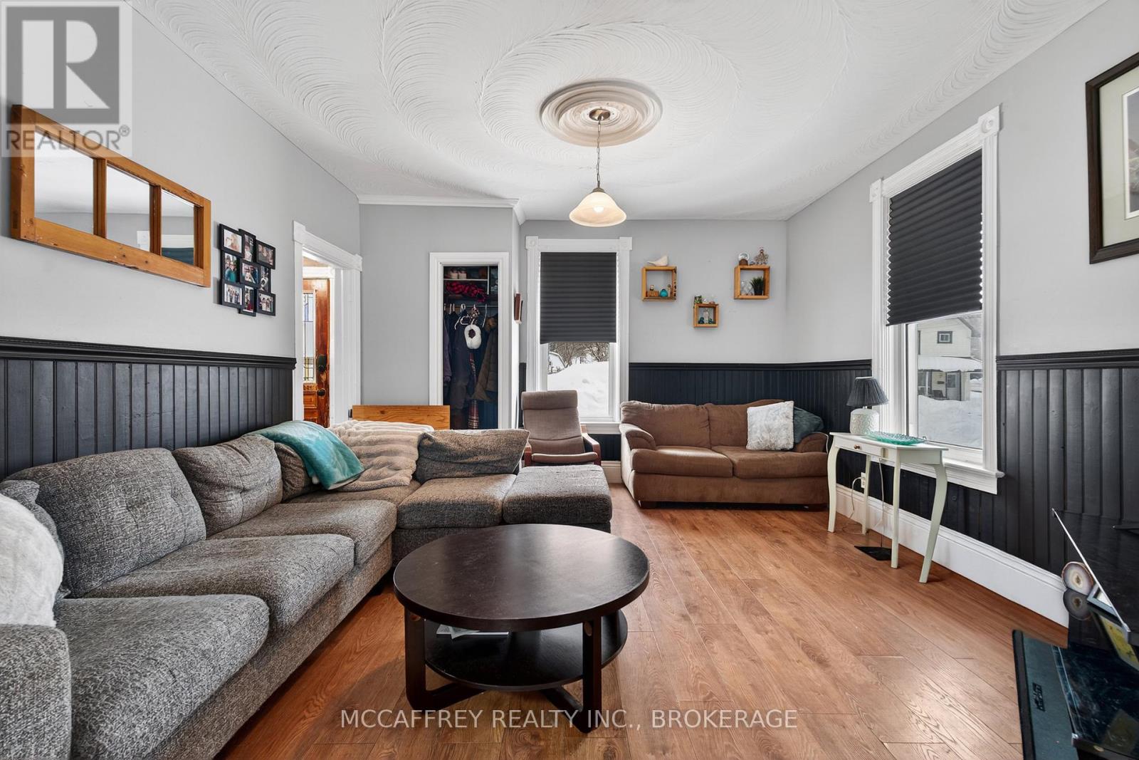 Welcome to 422 Thomas Street, a charming two-storey home nestled in a friendly Deseronto neighborhood. This well-loved property offers warmth, character, and a fantastic layout perfectly suited for first-time buyers, families, or those seeking an affordable, move-in ready home. Step through the front door and into a bright and cozy living room, where natural light pours in through large windows, creating an inviting atmosphere for relaxation or entertaining. Adjacent to the living room, you'll find a dedicated dining room-a wonderful space for family meals, hosting friends, or enjoying everyday moments together. This home's efficient kitchen offers a functional workspace, ideal for preparing your favorite meals. the kitchen keeps everything within easy reach and connects conveniently to the dining room, making serving and socializing simple. Upstairs, you'll find three comfortable bedrooms. The primary bedroom features a closet for storage, while all bedrooms offer plenty of natural light and flexibility for use as sleeping quarters, guest space, or a home office. A four-piece bathroom on the upper floor serves the family with ease. The main floor laundry area brings everyday convenience and saves you trips up and down the stairs. The full unfinished basement provides excellent storage potential or the opportunity to customize the space to suit your hobbies and needs. Step outside to enjoy a spacious, fenced backyard-perfect for kids, gardening, or summertime barbecues. Mature trees create a sense of privacy and tranquility, with ample space to further personalize your outdoor retreat. A private driveway offers ample off-street parking for multiple vehicles. Just a short walk from Deseronto's shops, parks, and waterfront amenities, this welcoming home places you in the heart of a vibrant community. Don't miss your chance to make 422 Thomas Street your own-book your private tour today and imagine the possibilities for comfortable small-town living. (id:64974)